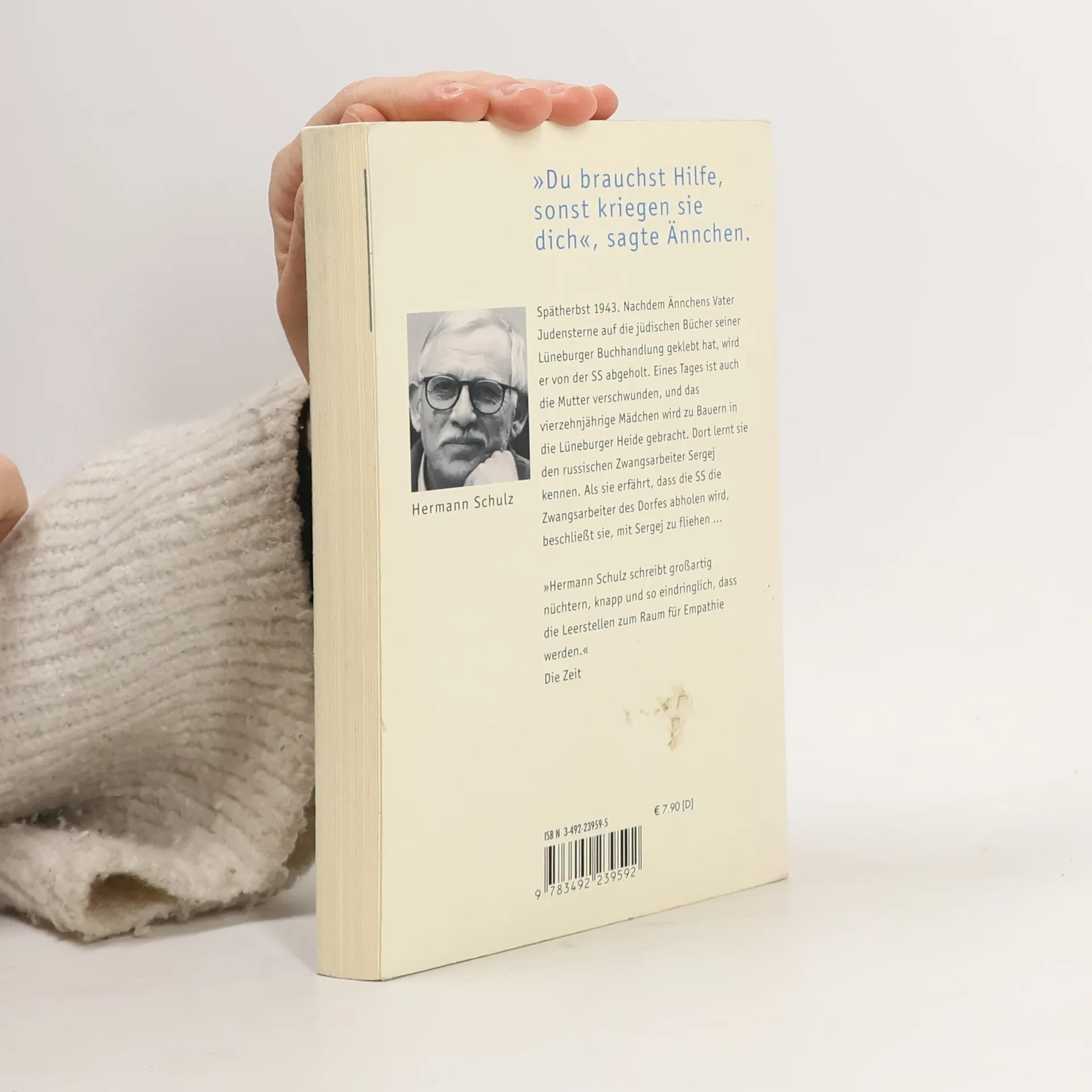 Spätherbst 1943. Nachdem Ännchens Vater Judensterne auf die jüdischen Bücher seiner Lüneburger Buchhandlung geklebt hat, wird er von der SS abgeholt. Eines Tages ist auch die Mutter verschwunden, und das vierzehnjährige Mädchen wird zu Bauern in die Lüneburger Heide gebracht. Dort lernt sie den russischen Zwangsarbeiter Sergej kennen. Als sie erfährt, dass die SS die Zwangsarbeiter des Dorfes abholen wird, beschließt sie, mit Sergej zu fliehen. 'Hermann Schulz schreibt großartig nüchtern, knapp und so eindringlich, dass die Leerstellen zum Raum für Empathie werden.' Die Zeit