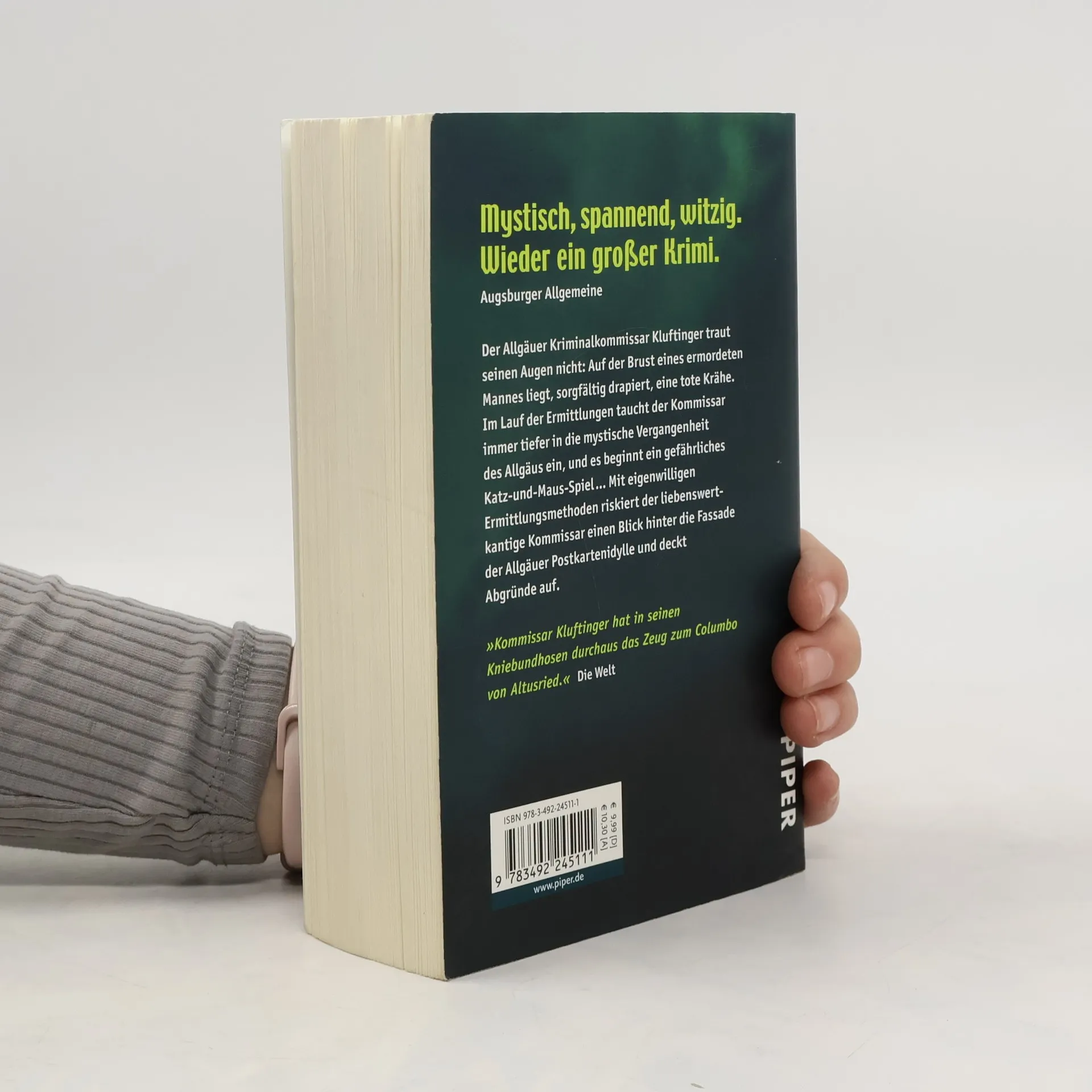 Der Allgäuer Kriminalkommissar Kluftinger traut seinen Augen nicht: Auf der Brust eines toten Mannes in einem Wald bei Kempten liegt, sorgfältig drapiert, eine tote Krähe. Im Lauf der Ermittlungen taucht der Kommissar immer tiefer in die mystische Vergangenheit des Allgäus ein, und es beginnt ein Katz-und-Maus-Spiel mit dem Mörder, bei dem die Zeit gegen ihn arbeitet. Denn alle Zeichen sprechen dafür, dass das Morden weitergeht … Mit eigenwilligen Ermittlungsmethoden riskiert der liebenswert-kantige Kommissar einen Blick hinter die Fassade der Allgäuer Postkartenidylle und deckt Abgründe auf.