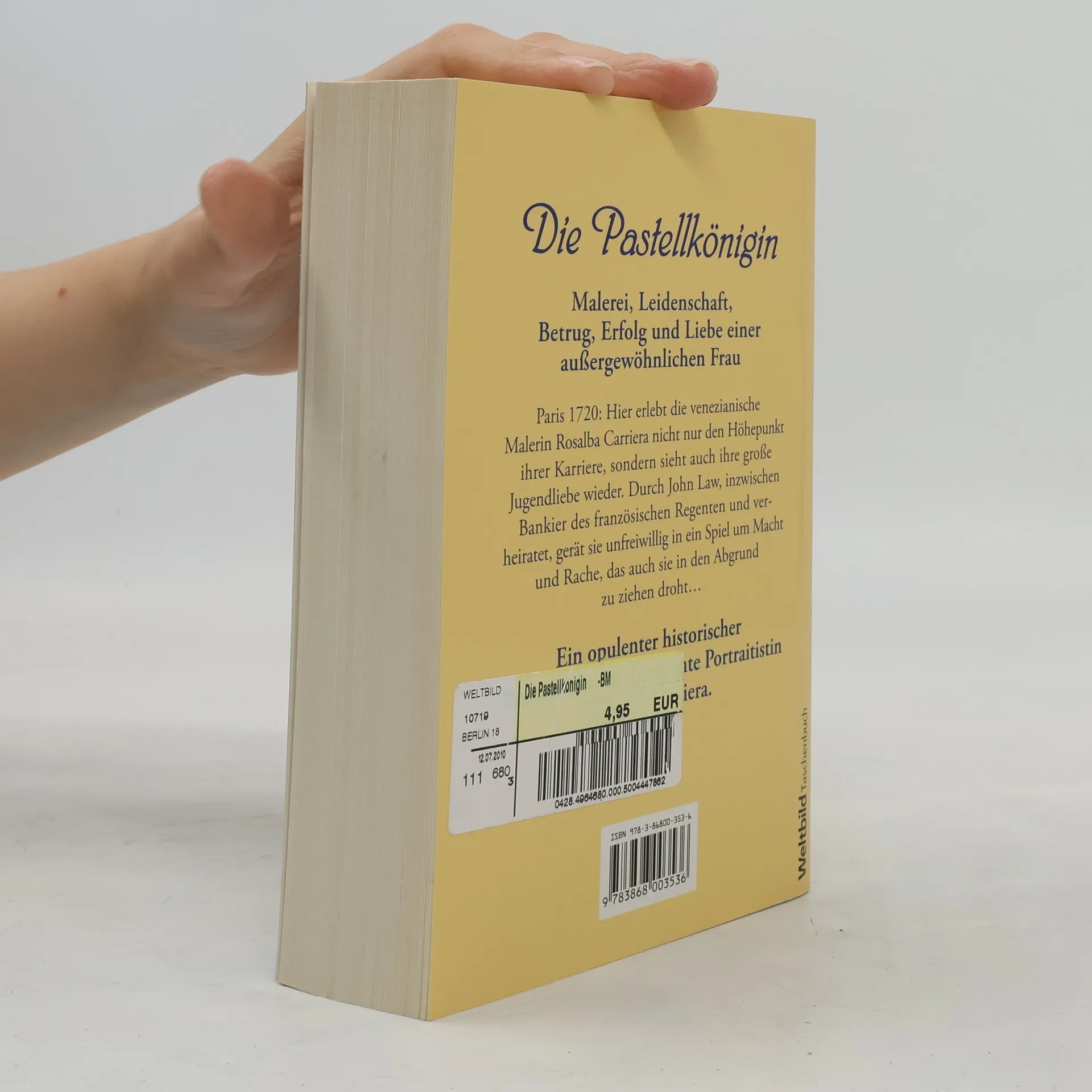 Paris 1720: Auf Einladung eines Mäzens reist die venezianische Malerin Rosalba Carriera in die französische Hauptstadt. Bisher sind ihre Miniaturen nur der Geheimtipp für vornehme Sammler, doch dank mächtiger Gönner macht sie atemberaubend schnell Karriere. Die Mitglieder der Pariser Gesellschaft reißen sich um ihre Pastellportraits. Sogar Ludwig XV. sitzt ihr Modell. Bald ist Rosalba Carriera nicht nur die beliebteste Künstlerin der Hautevolee, sondern auch der strahlende Stern unter den Malern ihrer Zeit und wird selbst von ihrem berühmten Kollegen Antoine Watteau tief verehrt. Der überwältigende Erfolg verliert aber für Rosalba an Glanz, als sie John Law trifft, den Bankier des Regenten. In ihm erkennt sie die große Liebe ihres Lebens wieder, jenen Mann, dem sie vor vielen Jahren beim Karneval in Venedig nur einmal begegnet ist, den sie aber nie vergessen konnte. Inzwischen ist er verheiratet, und ausgerechnet seine Frau sucht Rosalbas Freundschaft. Hin- und hergerissen zwischen Loyalität und Leidenschaft wird Rosalba ungewollt die Hauptfigur in einem Spiel um Macht und Rache. Sie muß sich entscheiden – zwischen ihrer Liebe und ihrer Karriere. Da bricht John Laws Finanzsystem zusammen, und empörte Aktionäre fordern seinen Kopf... In ihrem Roman Die Pastellkönigin zeichnet Micaela Jary ein lebendiges Portrait der berühmtesten Malerin des Rokoko.