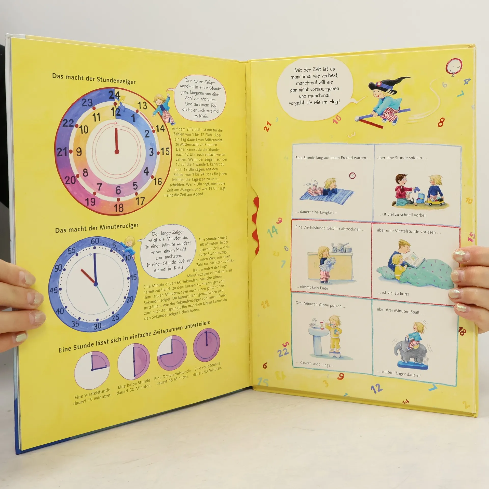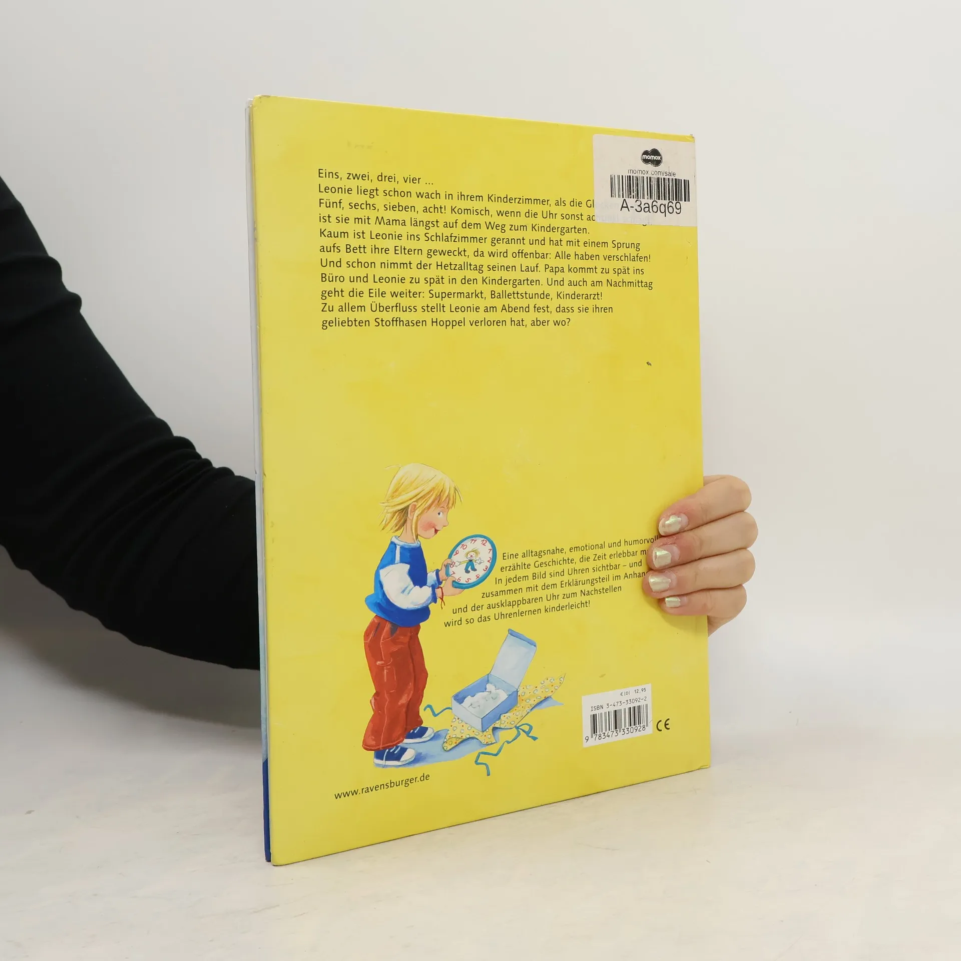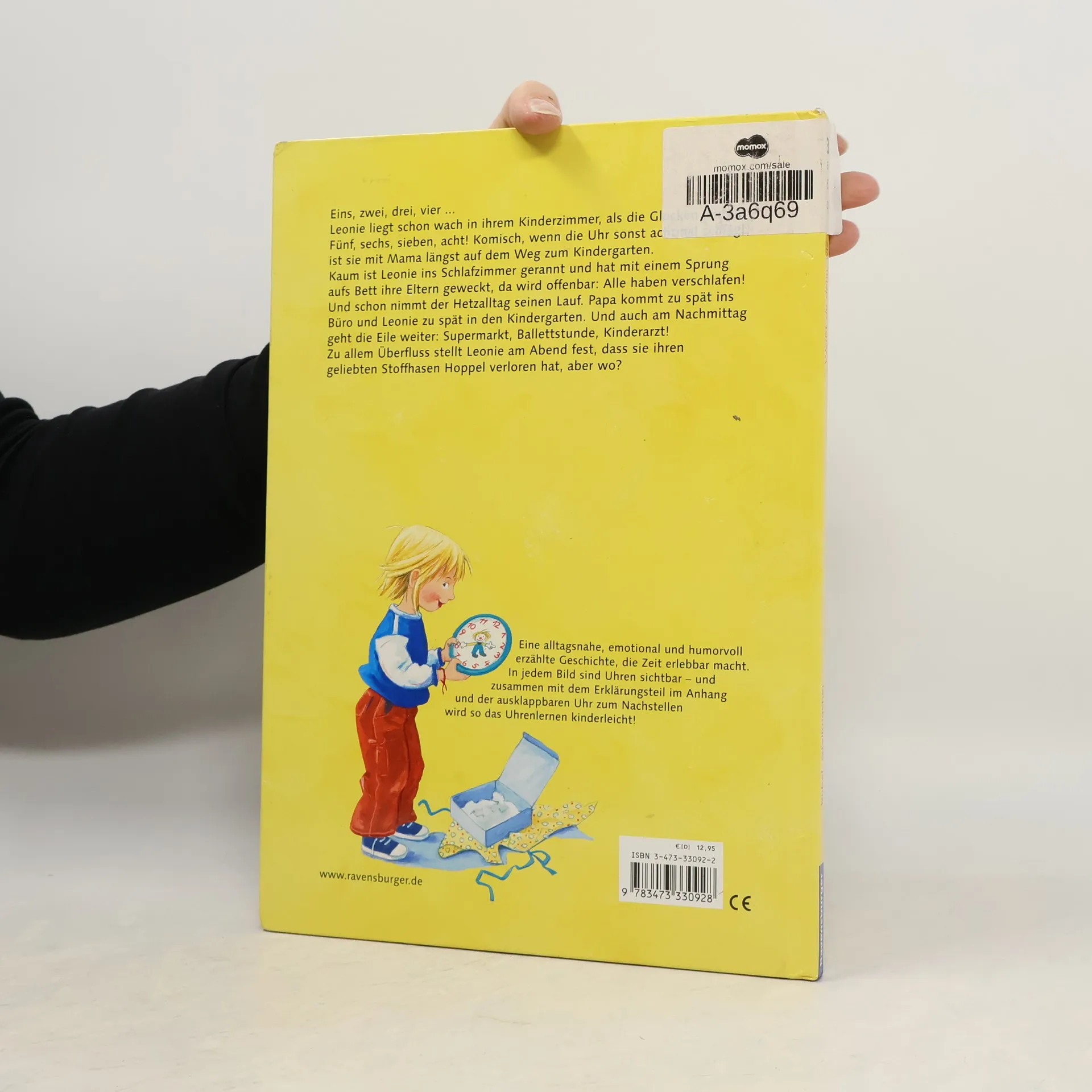 Oh Schreck - alle haben verschlafen! Das Frühstück noch in der Hand, bringt Mama Leonie viel zu spät in den Kindergarten. Dort spielen sie heute Uhr: Jedes Kind spielt eine Zahl, und zwei den großen und kleinen Zeiger - eine geniale Idee, um die unterschiedliche Dauer von Minuten und Stunden zu vermitteln. Auch Leonies Nachmittag ist verplant, aber wirklich aus dem Konzept kommen alle erst, als sie ihren Stoffhasen vermisst. Sicher ist der noch in der Kinderarztpraxis; und da noch mal hin vor Feierabend, das gibt wirklich ein Gehetze! Eine Geschichte, die Zeit erlebbar und mittels Uhr zum Nachstellen sichtbar macht.