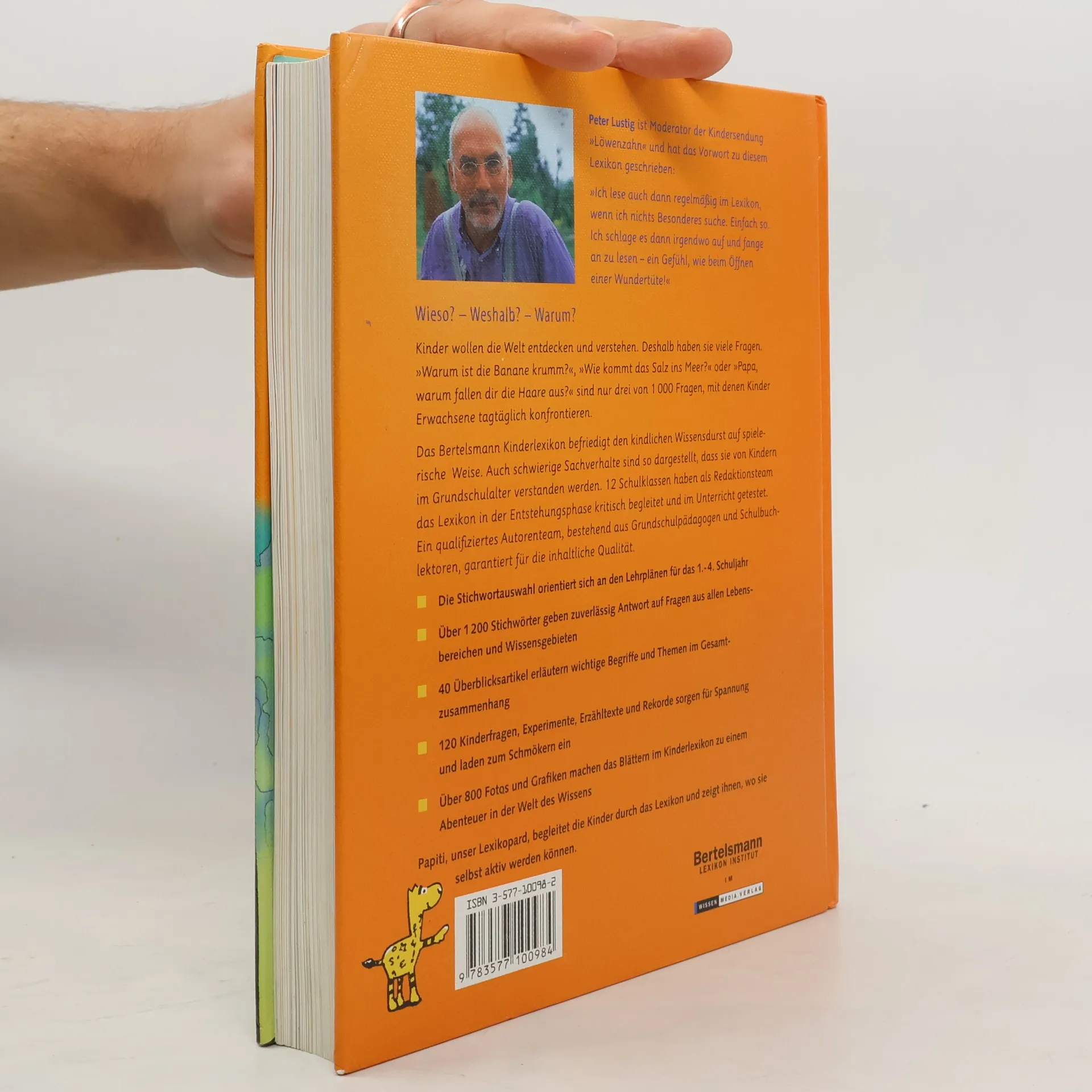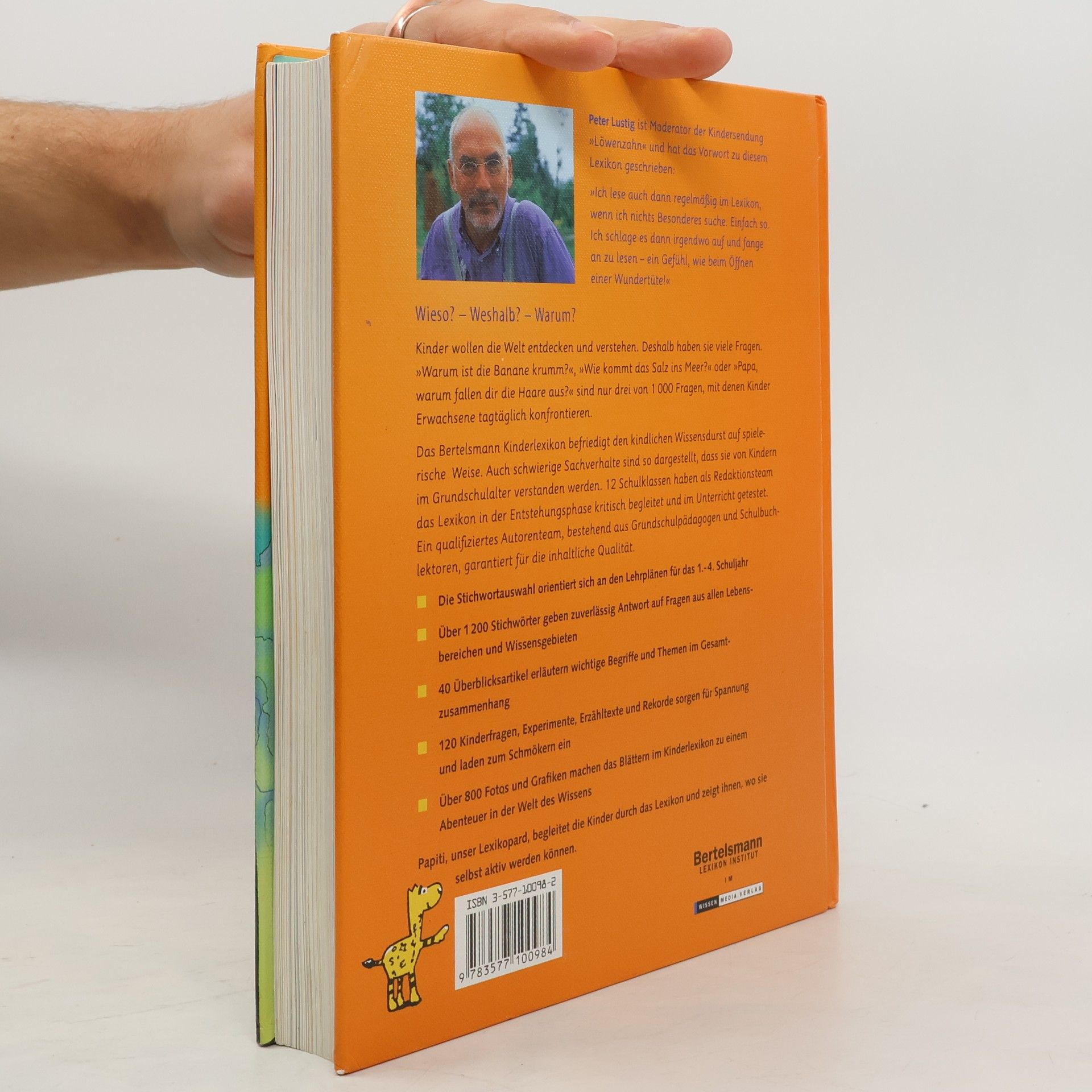 Das Bertelsmann Kinderlexikon bringt Kindern Wissen spielerisch näher und ist zugleich für Eltern eine sinnvolle pädagogische Hilfe. Gleich zu Anfang grüßt ein alter Bekannter: Peter Lustig hat das Vorwort geschrieben. Die Didaktik ist den Bedürfnissen der Kinder angepasst: Neben 1.200 Stichwörtern, 40 übergeordneten Artikeln und vielen Bildern machen 120 übersichtliche Infoboxen aus dem Inhalt ein für Kinder leicht verständliches, unterhaltsames Nachschlagewerk.