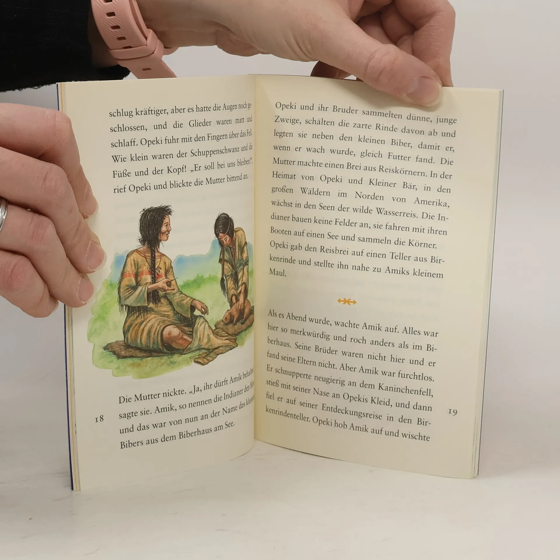 Ein kleiner Biber wird während eines Hochwers mit seinem Biberbau fortgerissen und von seinen Eltern getrennt. Nur kapp dem Tod durch ertrinken und einem Luchs entkommen, wird er vom Indianermädchen Opeki und ihrem Bruder Kleiner Bär gerettet und mit zu sich nach Hause genommen. Er wächst heran und gemeinsam erleben die Kinder mit dem kleinen Biber, den sie Amik nennen, unzählige Abenteuer aber auch Gefahren im Wald.