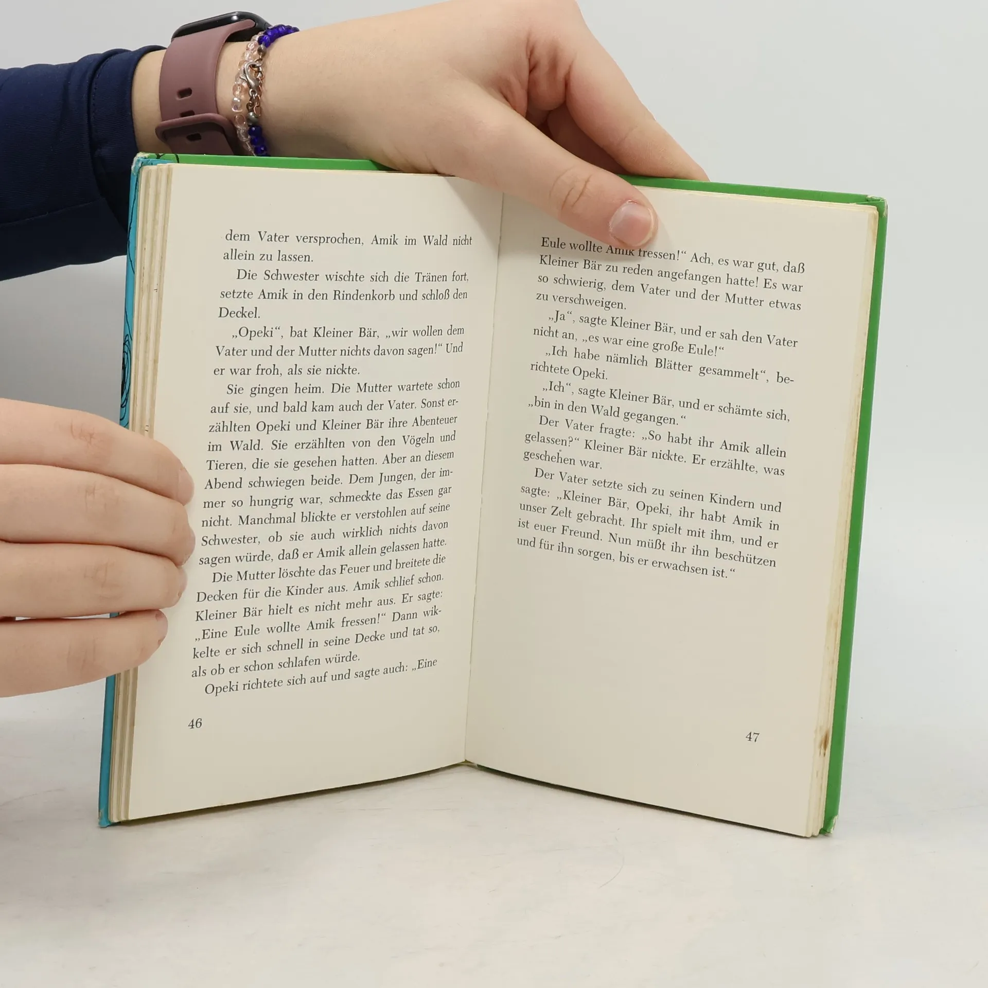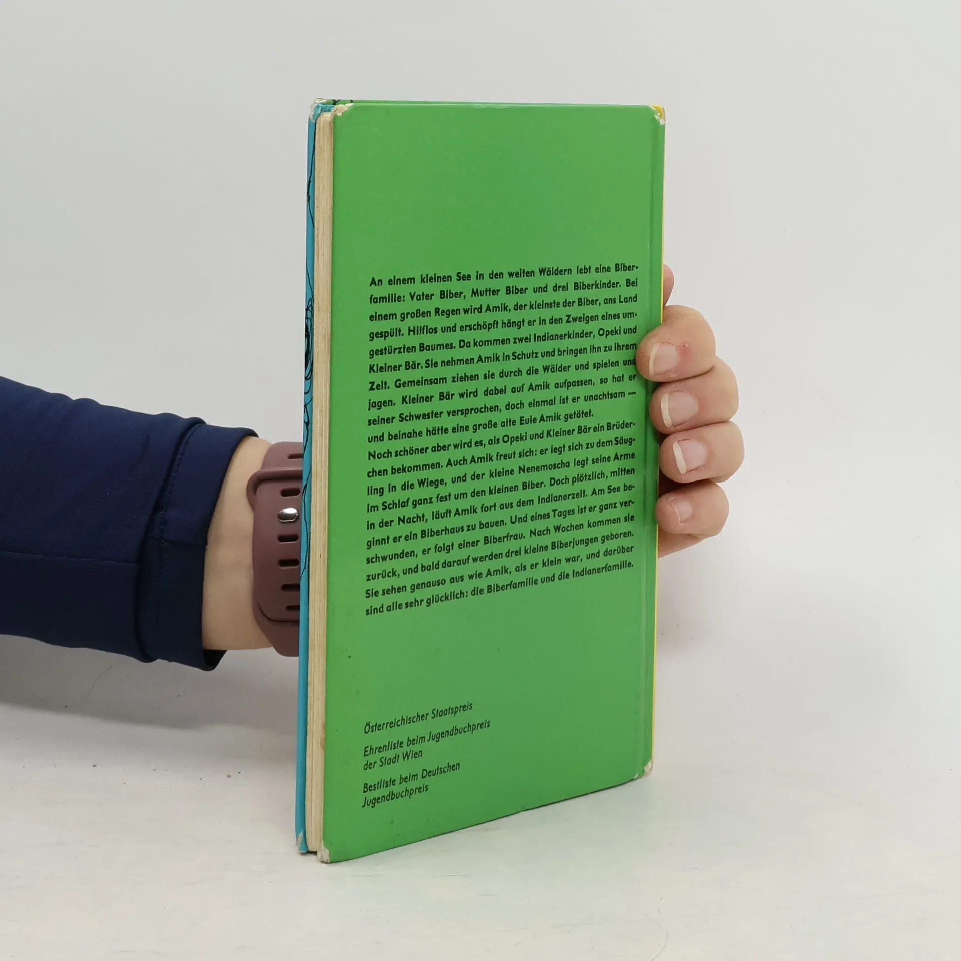 Bei einem großen Regen wird der kleine Biber Amik weitab von den Eltern und Geschwistern an Land gespült. Die Indianerkinder Opek und Kleiner Bär retten Amik. Das ist der Beginn einer unzertrennlichen Freundschaft. Ein bezaubernder Tierbuch-Klassiker von Käthe Recheis.