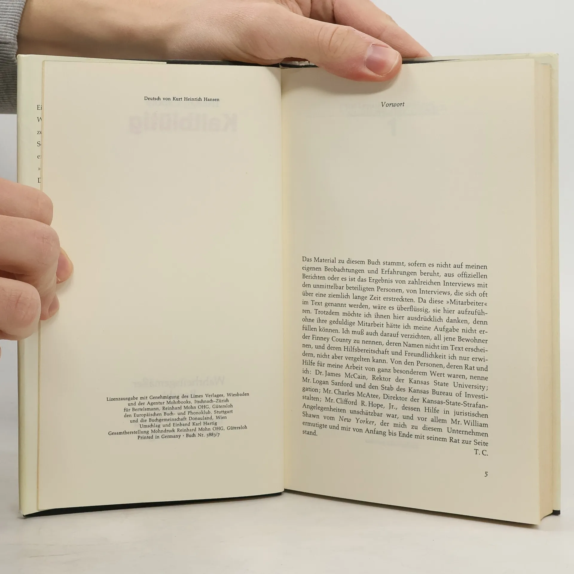In Kansas wird eine von allen geachtete Familie auf ihrer Farm “kaltblütig” ermordet. Panik ergreift die Bürger der nahen Kleinstadt. Die beiden Täter werden schnell gefasst. Der Autor besucht sie im Gefängnis und notiert alles, was sie ihm berichten. Sein aufregender Tatsachenroman ist eine zeitlose Studie über die Psychologie des Verbrechens.