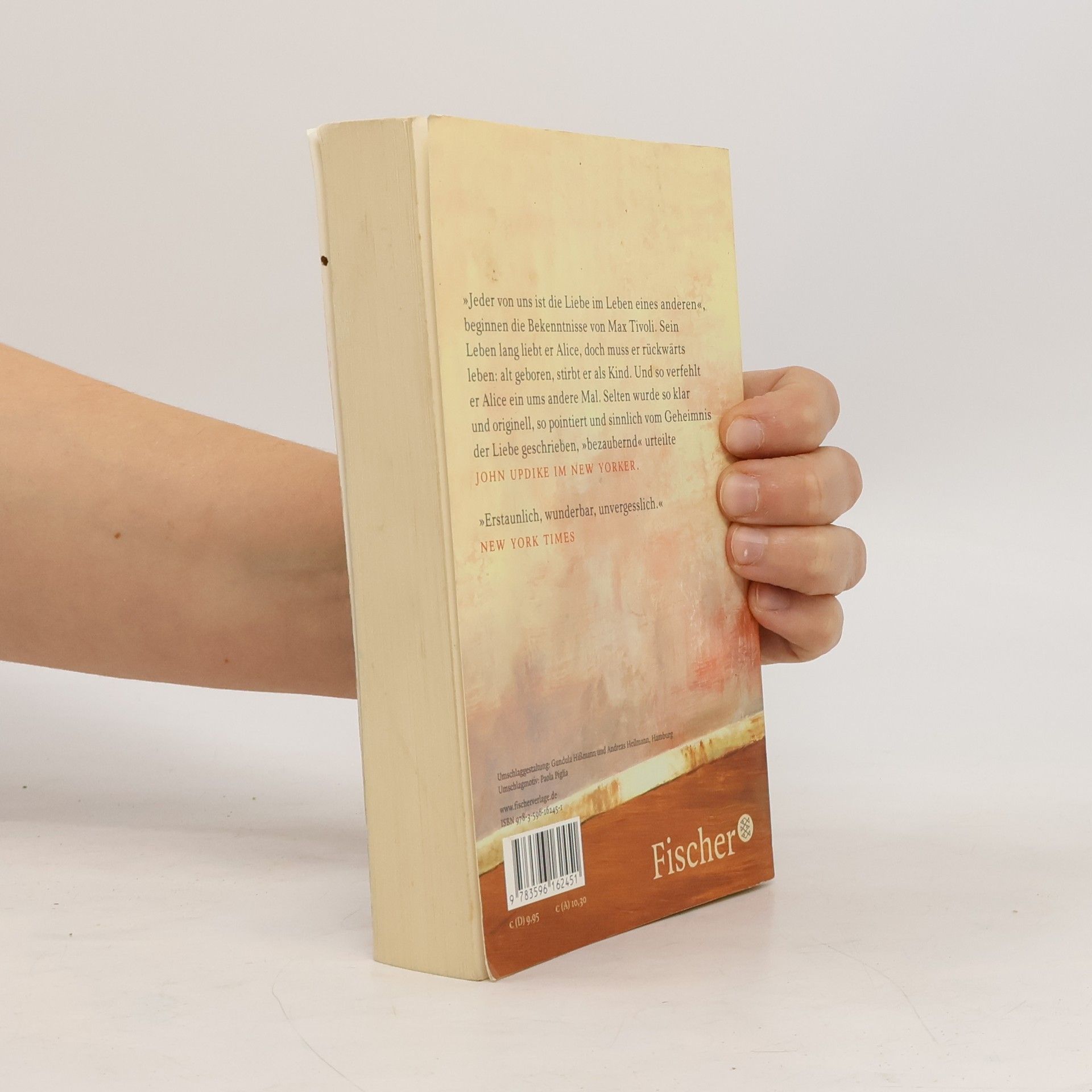 »Jeder von uns ist die Liebe im Leben eines anderen«, beginnt Max Tivoli die unerhörte Geschichte seines Lebens, das sich in einem Detail von allem unterscheidet. Und dieses Detail hütet er wie ein Geheimnis: Alt geboren, wird er seinem Ende entgegen zum Kind. Als das Erdbeben San Francisco erschüttert, ist er Mitte dreißig, und gegen Ende seines Lebens werden die ersten Radios in die Autos eingebaut. Die Achse, um die sich sein Leben dreht, heißt Alice. Max liebt sie sein Leben lang, doch als sie jung ist, wirkt er alt. Erst viel später schlagen die Uhren der beiden für kurze Zeit im gleichen Takt und ihre Liebe erhält eine zweite Chance. Doch auch sie bleibt nicht von Dauer. Selten wurde die Tragik und das Glück einer sich verfehlenden Liebe so packend inszeniert wie hier. Andrew Sean Greer evoziert in seinem Roman ein Leben voll Sehnsucht und Einsamkeit. Mit Staunen und Verwunderung feierte die amerikanische Kritik die Wahrheiten einer rückwärts gelebten Biographie. „Nur sehr selten macht eine wirklich originelle neue Stimme auf sich aufmerksam und erzählt eine noch nie gehörte Geschichte. Andrew Sean Greer ist ein phantastischer Schriftsteller und Max Tivoli markiert den Beginn eines bemerkenswerten Werkes, das bleiben wird.“Michael Cunningham