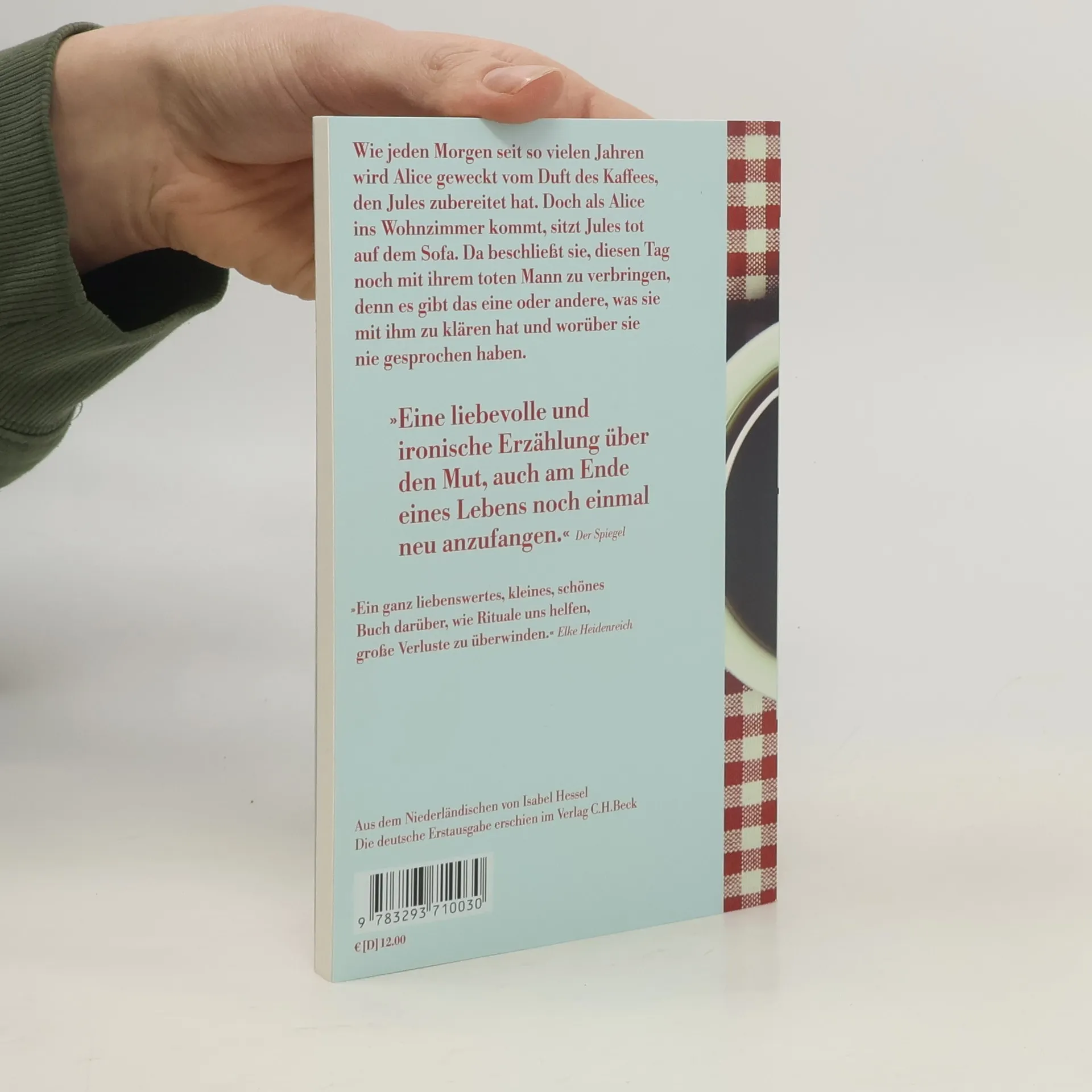 Alice und Jules, ein altes Ehepaar, haben ein morgendliches Ritual: Alice wird geweckt vom Duft des Kaffees, den Jules schon zubereitet hat. So auch an diesem Wintermorgen. Ein ruhiger Tag wartet auf Alice. Um zehn soll wie immer der autistische Nachbarsjunge David kommen, für seine übliche Partie Schach mit Jules. Doch als Alice ins Wohnzimmer kommt, sitzt Jules tot auf dem Sofa. Da beschließt sie, diesen Tag noch mit ihrem toten Mann zu verbringen. Denn es gibt das eine oder andere, was sie mit ihm zu klären hat und worüber sie nie gesprochen haben. Diane Broeckhovens Novelle über Alice und Jules und über David und Alice ist eine dichte, ergreifende, wunderbar feine Geschichte über Rituale, Liebe, Verrat und Verlust, ein Verlust, der am Ende auf wunderliche Weise ausgeglichen wird.