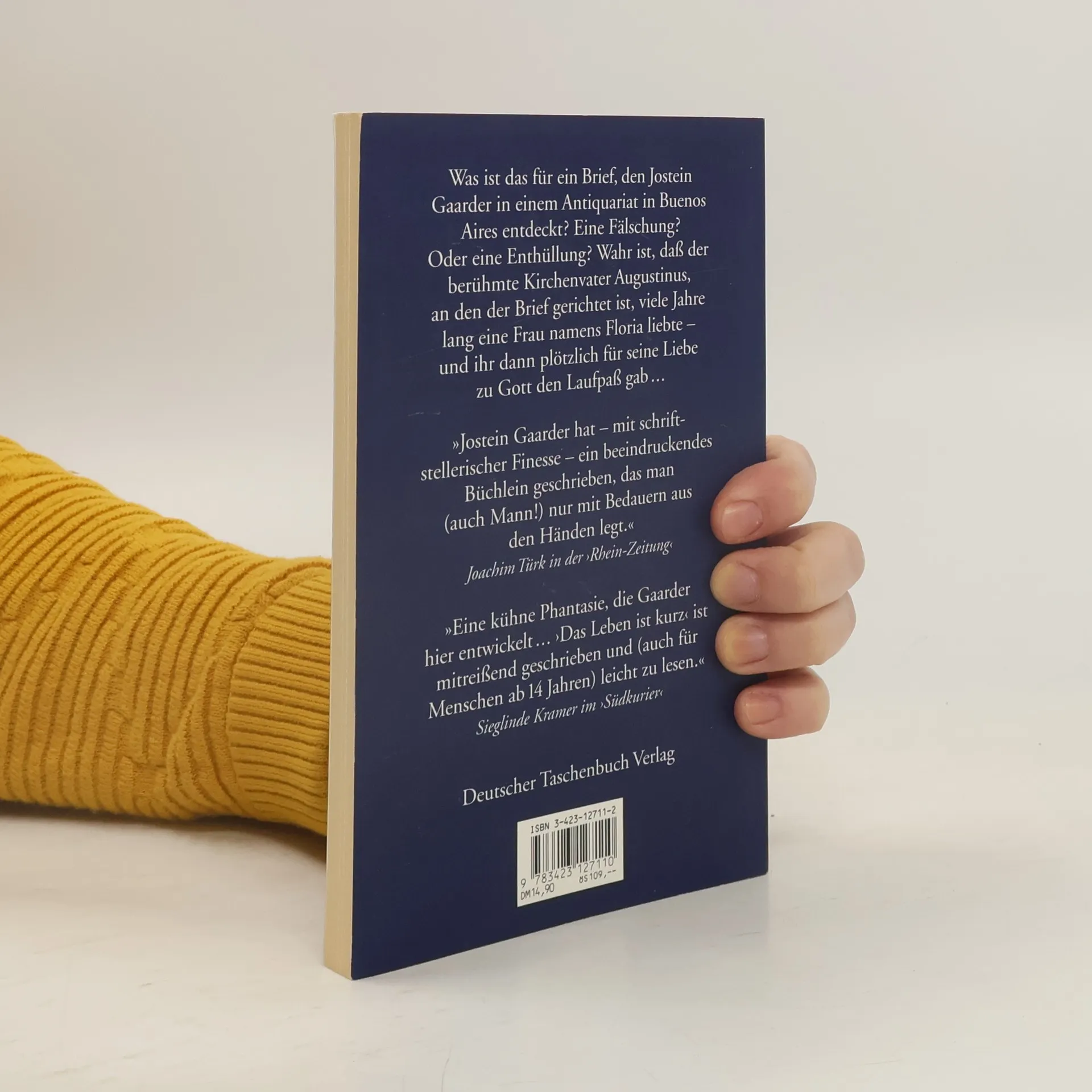 Provokante Argumentationen gegen die kirchliche Moral Was ist das für ein Brief, den Jostein Gaarder in einem Antiquariat in Buenos Aires entdeckt? Eine Fälschung? Oder eine Enthüllung? Wahr ist, daß der berühmte Kirchenvater Augustinus, an den der Brief gerichtet ist, viele Jahre lang eine Frau namens Floria liebte, einen Sohn mit ihr hatte und ihr dann plötzlich für seine Liebe zu Gott den Laufpaß gab. Wie mußte sich Floria da fühlen? Das erzählt der aufgefundene Brief, der ihren Namen als Absender trägt. Floria fragt Augustinus: Warum ist alles, was zwischen uns war, plötzlich Sünde in deinen Augen? Warum ist die Frau diejenige, die verführt, und der Mann der Verführte? Warum schließt deine Liebe zu Gott jede Leidenschaft für eine Frau aus? In ihrer provokanten Argumentation rüttelt Floria an einer Moral, mit der sich die Männer bis heute – nicht nur in der Kirche – über die Frauen erheben.