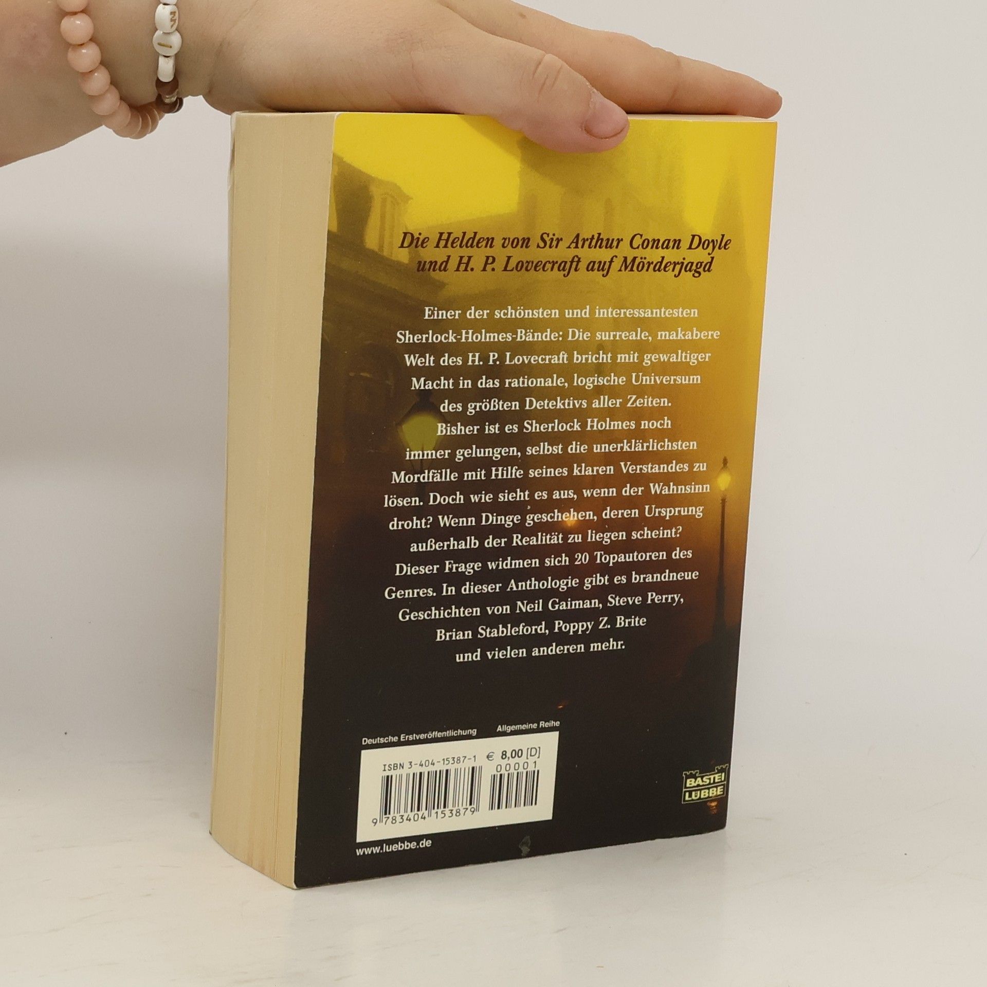 Die Helden von Sir Arthur Conan Doyle und H.P. Lovecraft auf Mörderjagd§Einer der schönsten und interessantesten Sherlock-Holmes-Bände: Die surreale, makabere Welt des H.P. Lovecraft bricht mit gewaltiger Macht in das rationale, logische Universum des größten Detektivs aller Zeiten. Bisher ist es Sherlock Holmes noch immer gelungen, selbst die unerklärlichsten Mordfälle mit Hilfe seines klaren Verstandes zu lösen. Doch wie sieht es aus, wenn der Wahnsinn droht? Wenn Dinge geschehen, deren Urspung außerhalb der Realität zu liegen scheint? Dieser Frage widmen sich 20 der Topautoren des Genres. In dieser Anthologie gibt es brandneue Geschichten von Neil Gaiman, Steve Perry, Brian Stableford, Poppy Z. Brite und vielen anderen mehr.