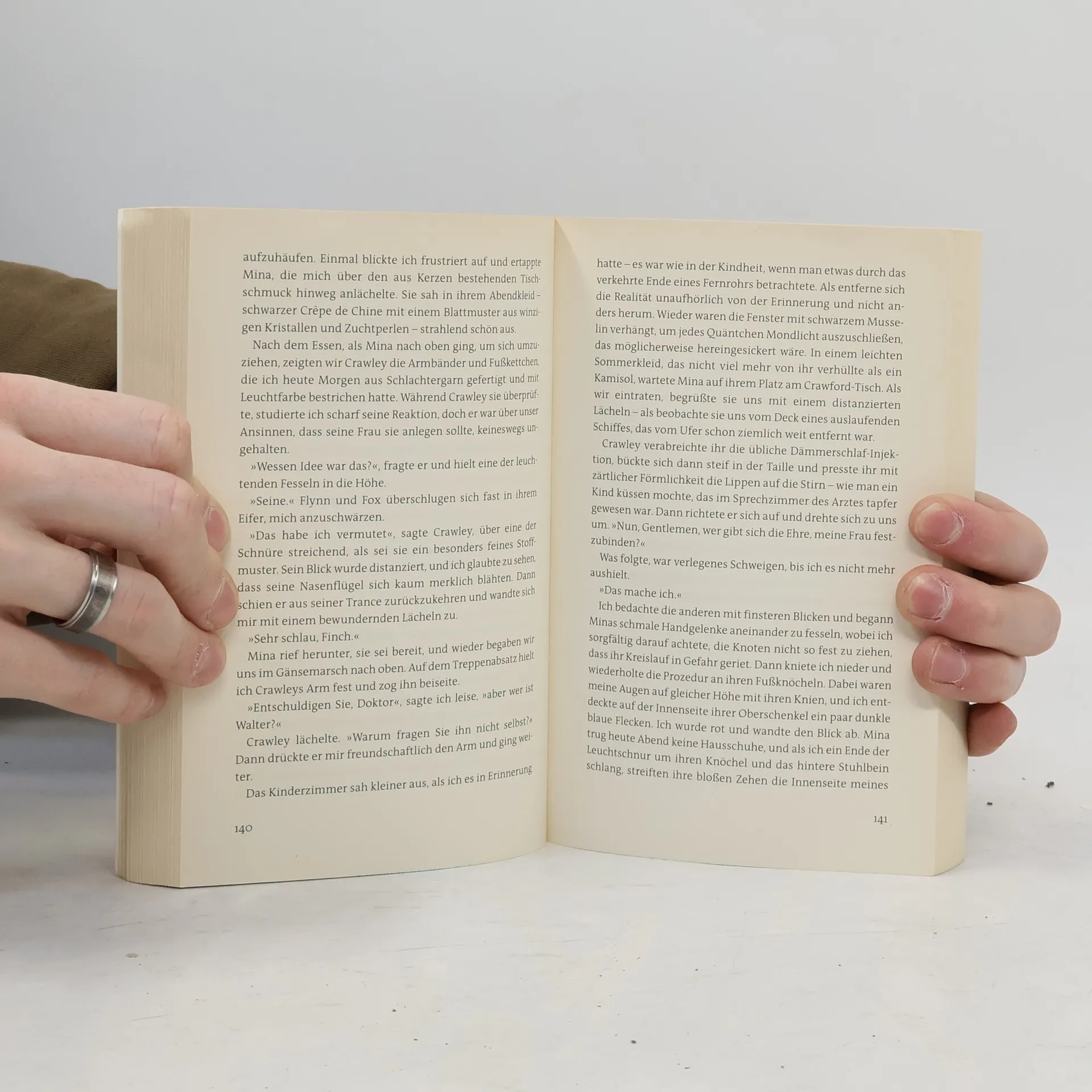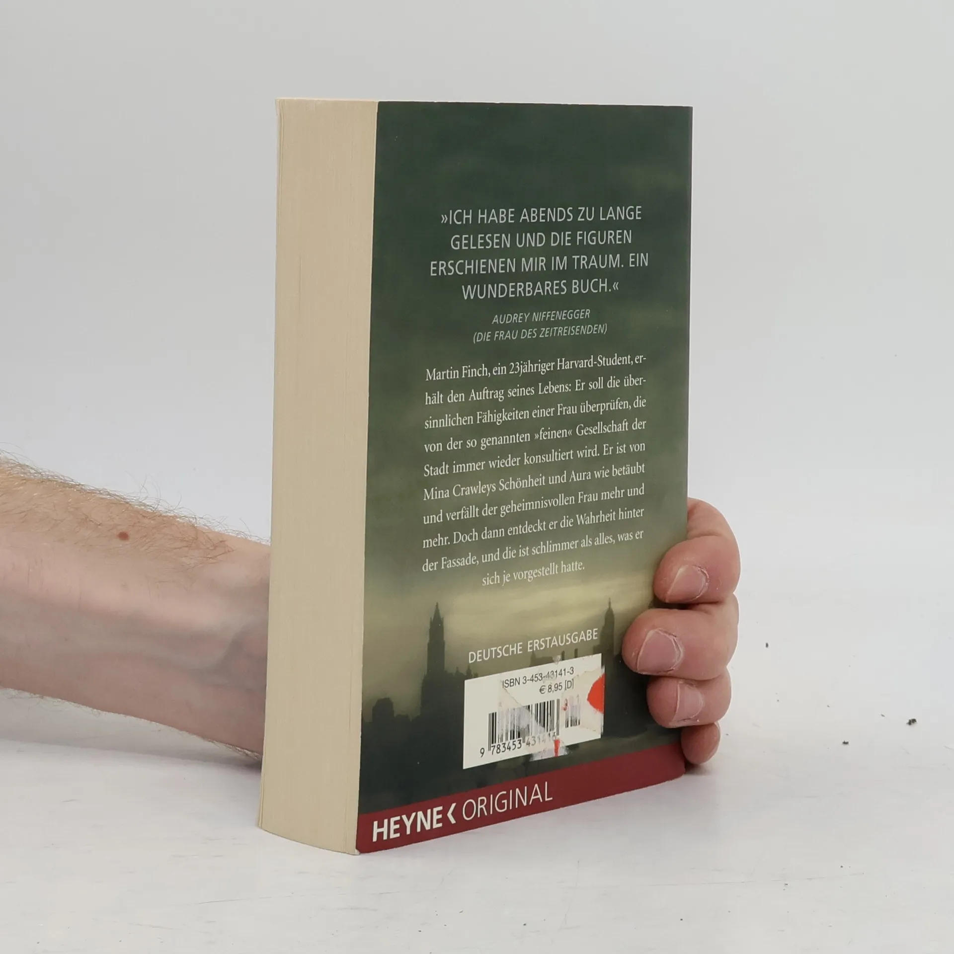 Martin Finch, ein dreiundzwanzigjähriger Harvard-Student, erhält den Auftrag seines Lebens: Er soll die übersinnlichen Fähigkeiten einer Frau überprüfen, die von der so genannten „feinen“ Gesellschaft der Stadt immer wieder konsultiert wird. Er ist von Mina Crawleys Schönheit und Aura wie betäubt und verfällt der geheimnisvollen Frau mehr und mehr. Doch dann entdeckt er die Wahrheit hinter der Fassade, und die ist schlimmer als alles, was er sich je vorgestellt hatte. „Ich würde gern von mir behaupten, dass niemand mich hynotisieren könnte. Aber dieses Buch hat es geschafft.“ Matthew Pearl „Ich habe abends zu lange gelesen und die Figuren erschienen mir im Traum. Ein wunderbares Buch.“ Audrey Niffenegger (Die Frau des Zeitreisenden) „Steht auf einer Stufe mit Caleb Carrs “Die Einkreisung„.“ Steven Katz