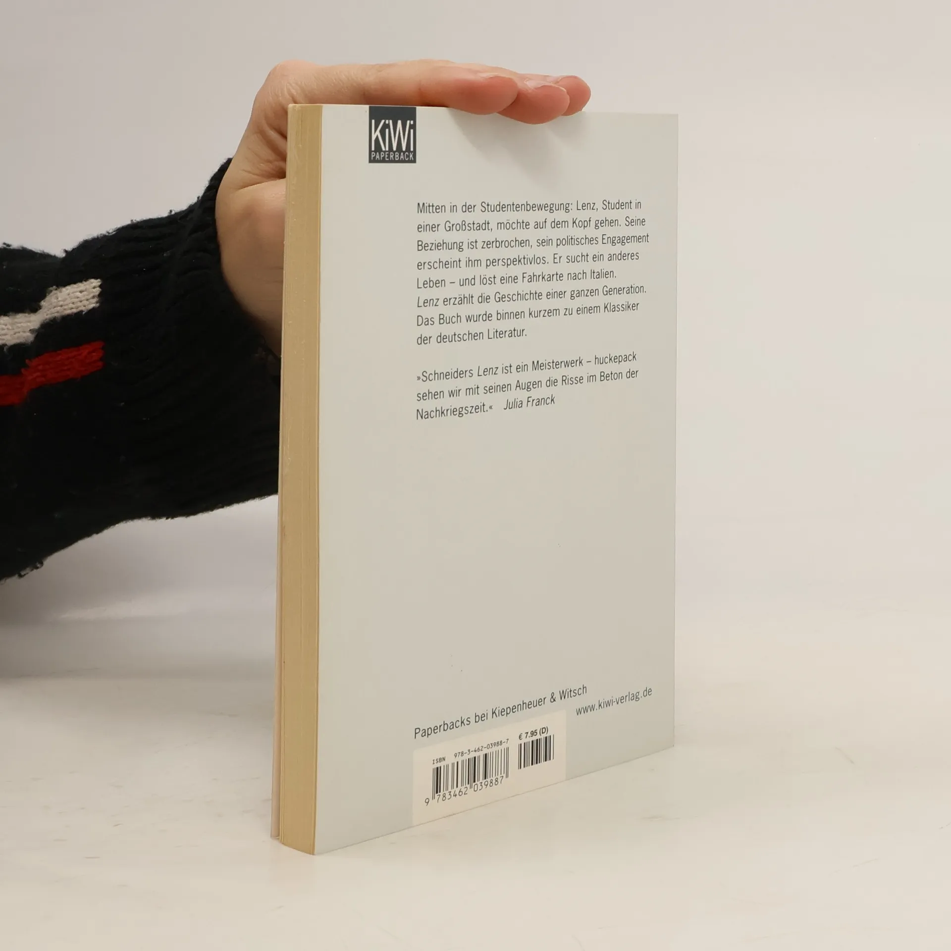 »Schneiders Lenz ist ein Meisterwerk – huckepack sehen wir mit seinen Augen die Risse im Beton der Nachkriegszeit.« Julia Franck Fünf Jahre nach Ausbruch der Studentenrevolte macht ein schmaler Band literarisch Furore: Peter Schneiders Neuerzählung von Büchners Novelle avanciert binnen kürzester Zeit zum Kultbuch einer ganzen Generation. Lenz, Student in einer Großstadt, irrt durch sein Leben: Seine Beziehung scheitert, politische Aktivitäten erschöpfen sich in fruchtlosen Diskussionen, der Versuch, sie durch die Arbeit in einer Fabrik endlich lebendig werden zu lassen, bleibt ergebnislos. Um der drückenden Stagnation zu entkommen, löst er eine Fahrkarte nach Italien. In Rom begeistern ihn die Farben, das Miteinander der Menschen, die Lebenskunst. Aber rasch gerät er an die Kulturschickeria, in der das Politisieren längst dem Psychologisieren Platz gemacht hat. Ein Angebot, sich selbst einem Analytiker anzuvertrauen, lehnt er ab; eine Affäre mit einer Italienerin endet schnell. Wieder bricht er auf – diesmal nach Norditalien. In Trento trifft er auf eine Gruppe linker Studenten und Arbeiter, die ihn brüderlich aufnehmen. Dieses andere Italien wird für Lenz zur Befreiung. Peter Schneider erzählt eine beeindruckende Geschichte über den Mut zur Veränderung und die Suche nach einem authentischen Leben. Sie hat bis heute nicht an Kraft und Brisanz verloren. Lenz ist zu einem modernen Klassiker geworden.