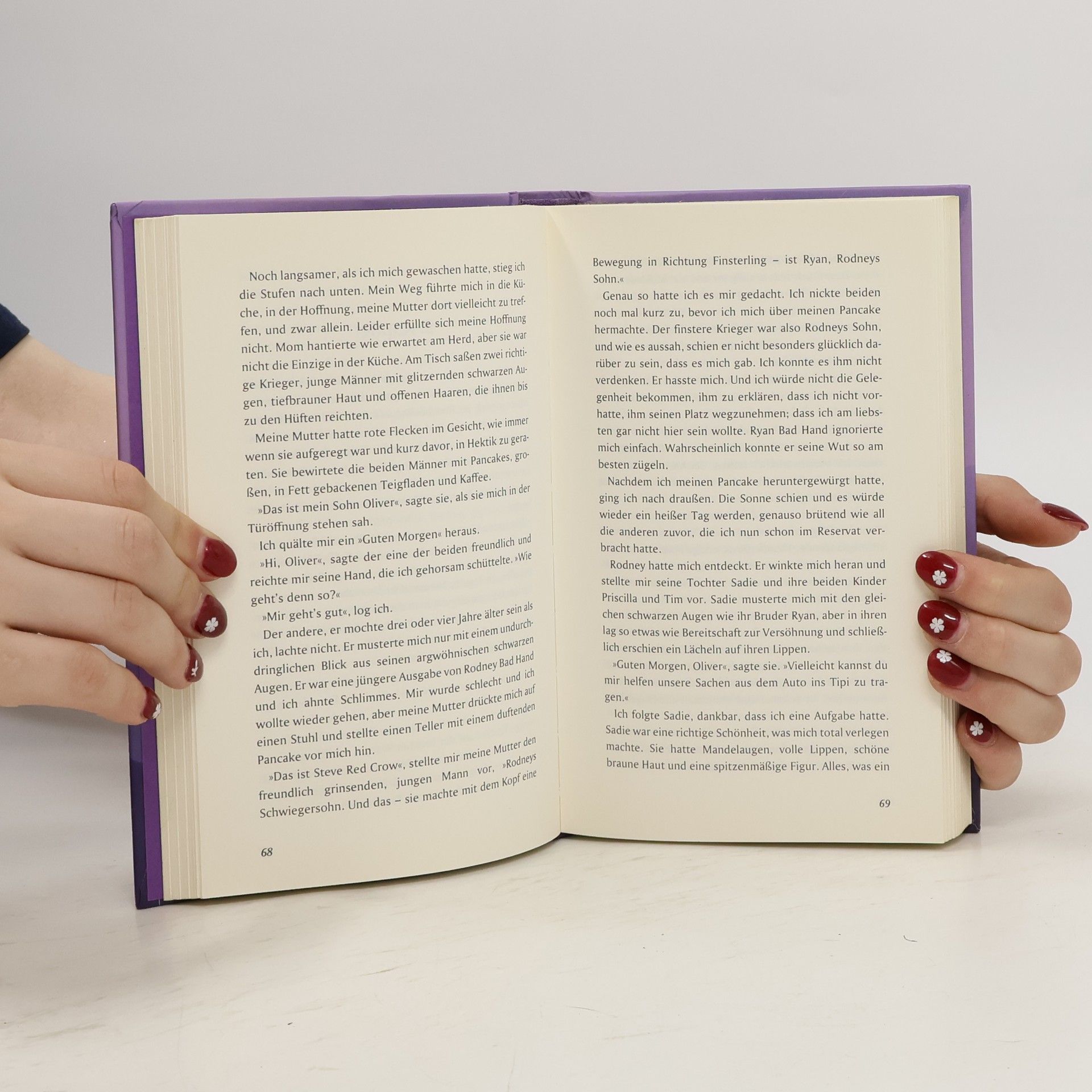 Von der Website des Autors:Oliver ist 15 und schwer verliebt in Nina. Er hält sich nicht für einen tollen Typen, aber – oh Wunder – Nina liebt ihn auch.Doch dann passiert das Unfassbare: Olivers Mutter (die Eltern sind schon seit Jahren geschieden und sein Vater ist ein ewig Weltreisender) hat sich in einen richtigen Indianer verliebt und beschlossen, ihn zu heiraten.Aller Protest nützt nichts. Oliver muss mit seiner Mutter nach Amerika auswandern und zieht mit ihr in das Haus seines Stiefvaters Rodney Bad Hand im Pine Ridge Indianerreservat in South Dakota. Armut, Alkoholismus und raue Naturgesetze prägen das Leben der Menschen im Reservat.Oliver ist zunächst todunglücklich und denkt an nichts anderes als daran, wie er schnellstmöglich wieder nach Deutschland zu seiner Nina kommen kann.Sein neuer indianischer Großvater Joe, seine Cousine Tammy und sein Stiefvater Rodney versuchen ihm zu helfen, in der fremden Umgebung zurechtzukommen. Aber sein Stiefbruder Ryan hasst ihn und macht ihm das Leben schwer.Als die Schule beginnt und er von einem indianischen Mitschüler als „Nazi“ bezeichnet wird, bloß weil er eine weiße Haut hat und aus Deutschland kommt, versteht Oliver die Welt nicht mehr.Da wird eines Tages das Nutzhanffeld seines Stiefvaters, dessen Erlös die Familie über den Winter bringen sollte, vom FBI abgeerntet und Rodney wird verhaftet.Wird Oliver seiner neuen Familie beistehen?