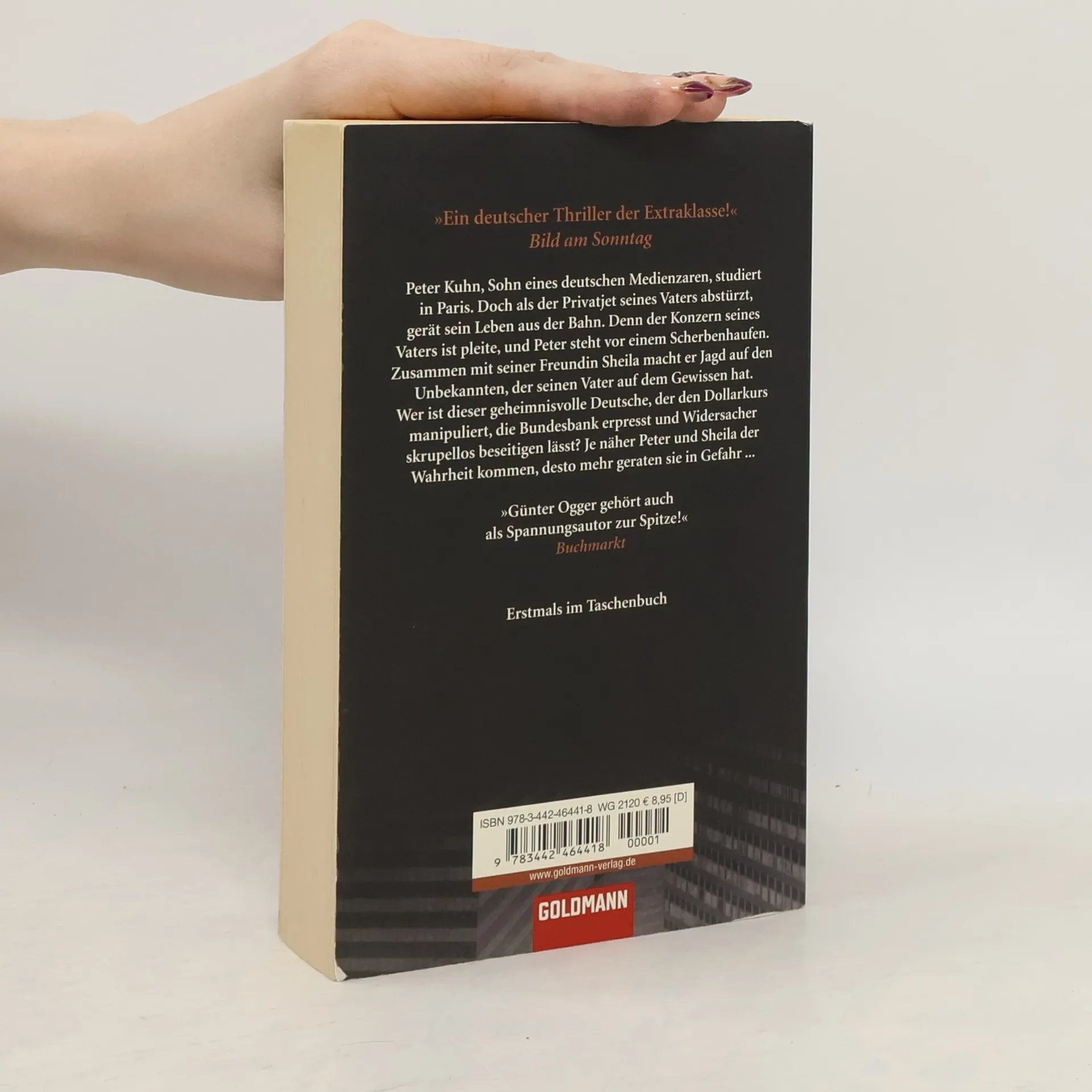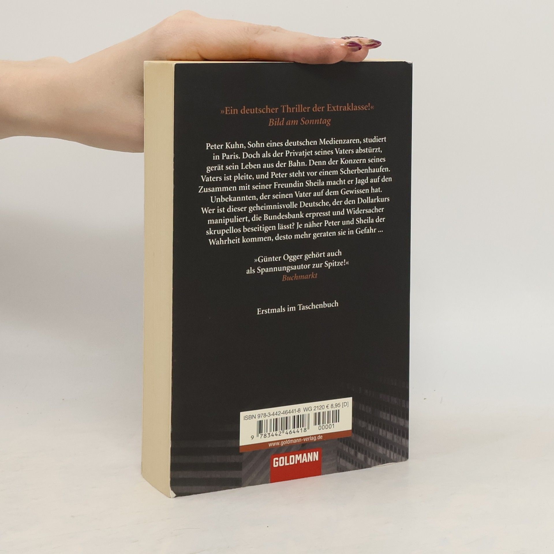 Peter Kuhn, Sohn eines deutschen Medienzaren, studiert in Paris. Doch als der Privatjet seines Vaters abstürzt, gerät sein Leben aus der Bahn. Denn der Konzern seines Vaters ist pleite, und Peter steht vor einem Scherbenhaufen. Zusammen mit seiner Freundin Sheila macht er Jagd auf den Unbekannten, der seinen Vater auf dem Gewissen hat. Wer ist dieser geheimnisvolle Deutsche, der den Dollarkurs manipuliert, die Bundesbank erpresst und Widersacher skrupellos beseitigen lässt? Je näher Peter und Sheila der Wahrheit kommen, desto mehr geraten sie in Gefahr …