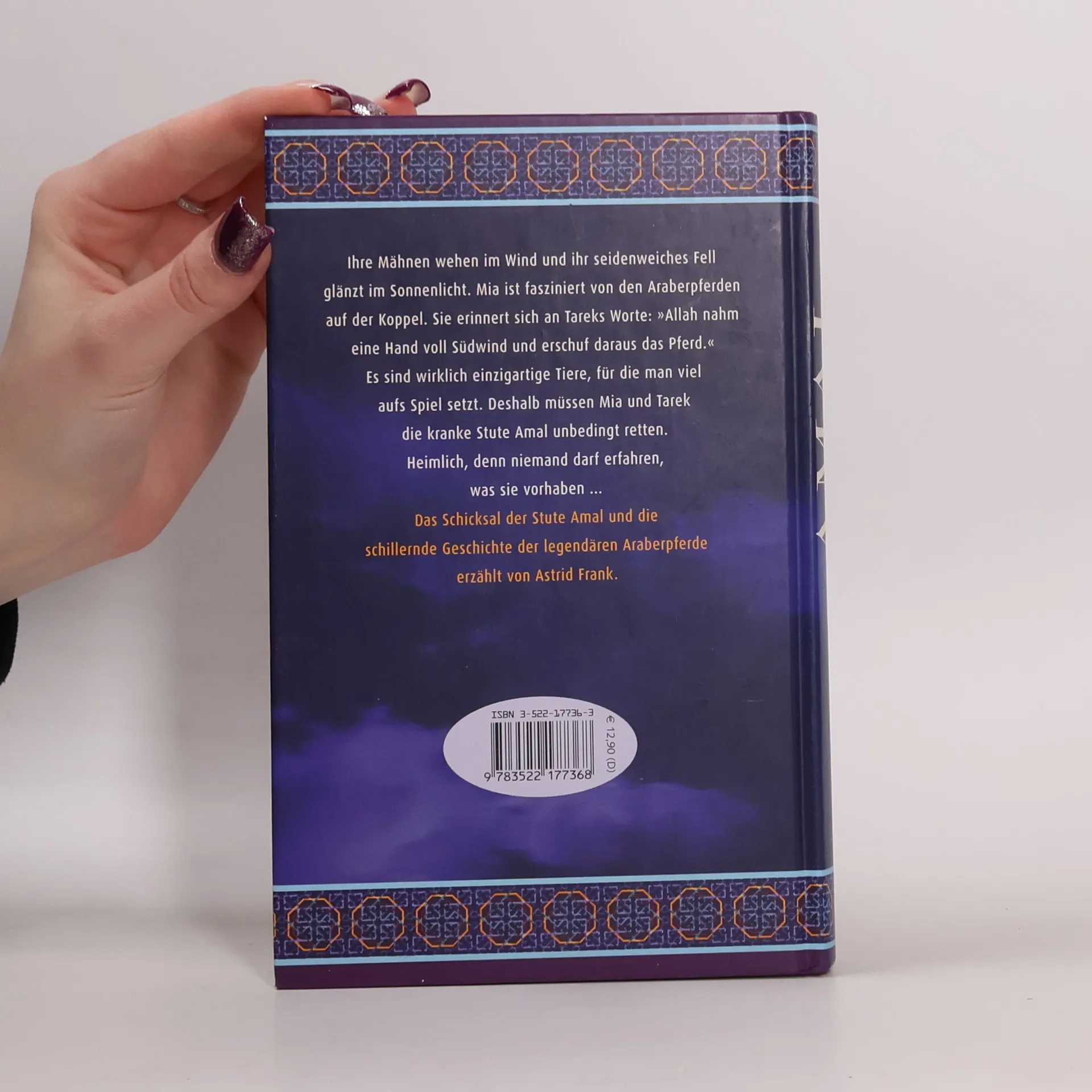 Als sich Mias Augen an das Dämmerlicht in dem Schuppen gewöhnt haben, erkennt sie ein Pferd vor sich im Stroh. Es ist die Araberstute Amal. Sie erwartet ein Fohlen, das sie vielleicht nicht mehr zur Welt bringen kann. Denn Amal ist schwerkrank. Nun blickt Mia zu Tarek. Er hat die Stute gegen den Willen des Stallmeisters heimlich hierher gebracht. Für ihn steht einiges auf dem Spiel. Warum nur bedeutet ihm Amal so viel? Das Schicksal der Stute Amal und die schillernde Geschichte der legendären Araberpferde. Ab 12 Jahren
