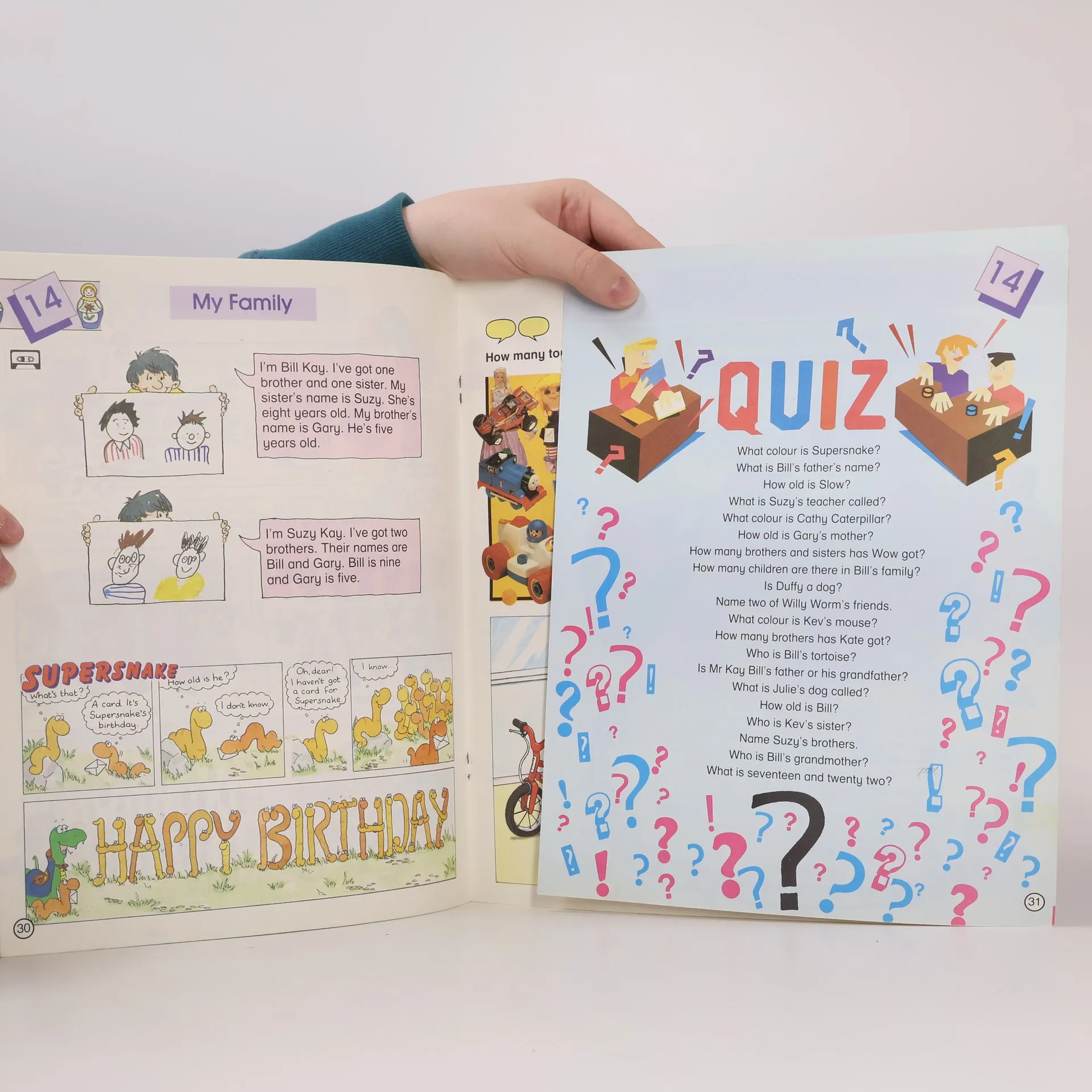 One of a three-level English course for children in primary schools written and designed to emphasize the importance of the children's own experience and development. Each level consists of a coursebook with games pack an activity book with resource file and a set of cassettes.