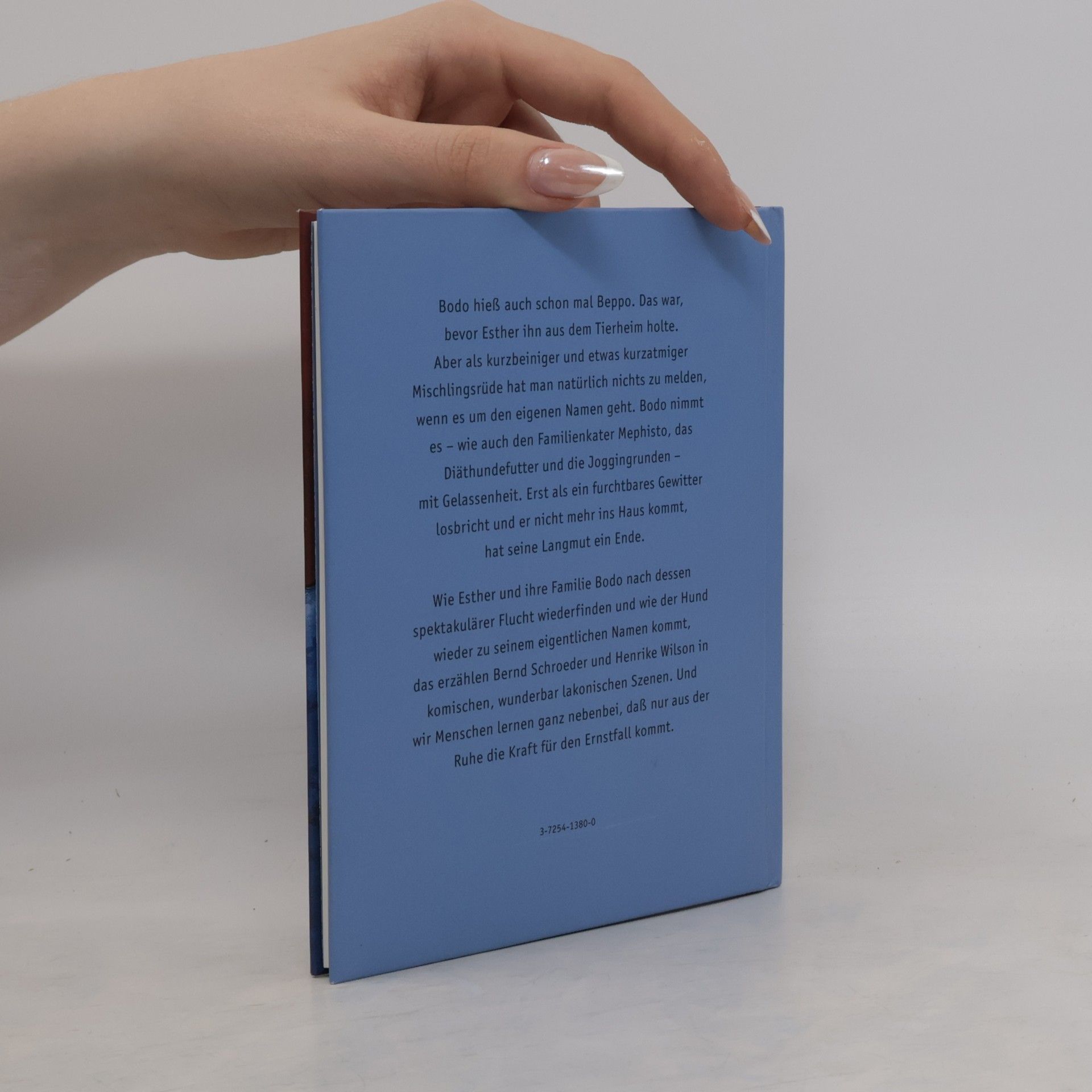 Bodo hieß auch schon mal Beppo. Das war, bevor Esther ihn aus dem Tierheim holte. Aber als kurzbeiniger und etwas kurzatmiger Mischlingsrüde hat man natürlich nichts zu sagen, wenn es um den eigenen Namen geht. Bodos Meinung zählt auch dann nicht, wenn er mit Esthers Vater joggen oder amerikanisches Diäthundefutter fressen soll. Und als dann auch noch ein Gewitter über ihn hereinbricht, ist selbst Bodos Geduld am Ende! Wie Esther und ihre Familie Bodo nach dessen spektakulärer Flucht wiederfinden und wie der Hund wieder zu seinem eigentlichen Namen kommt, das erzählt Bernd Schroeder in komischen, wunderbar lakonischen Szenen.