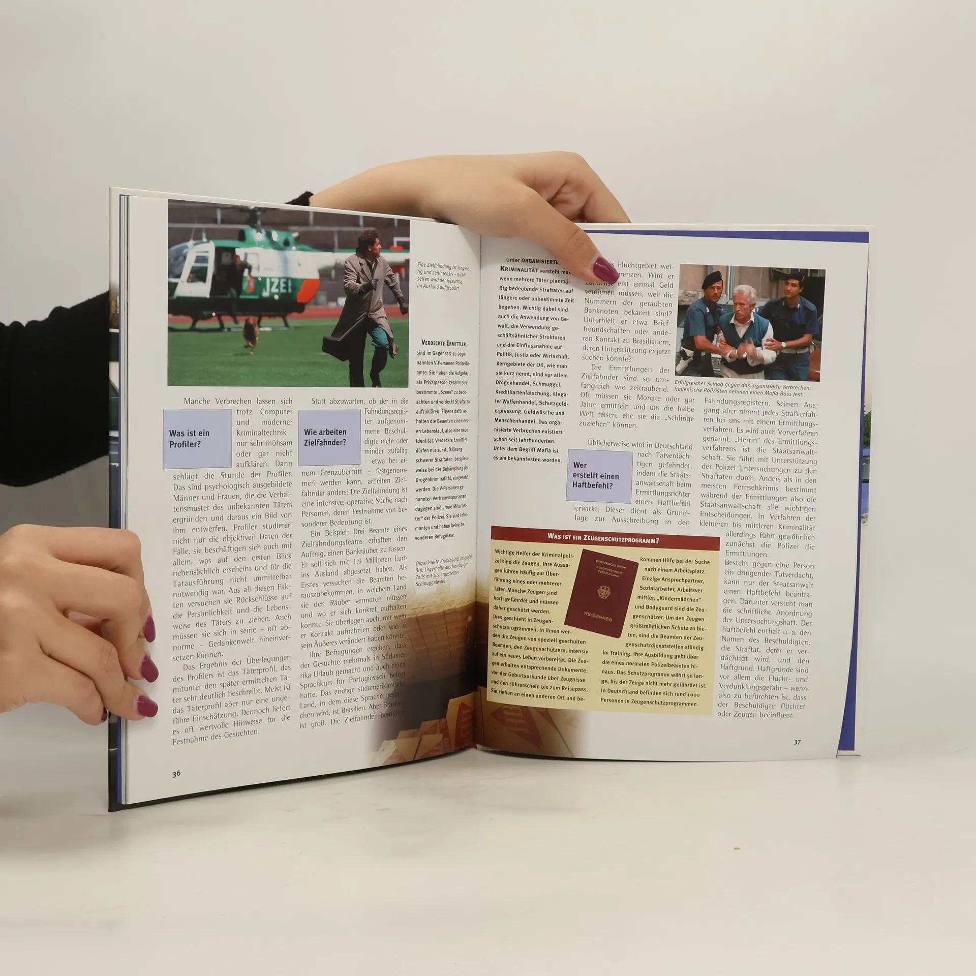 24 Stunden ist die Polizei einsatzbereit, um für Ordnung und Sicherheit zu sorgen. Sie ist gefordert, wenn Leben, Gesundheit, Freiheit und Eigentum der Bürger bedroht sind. Welche Ausrüstung trägt ein Schutzpolizist? Was machen Polizeitaucher? Wie wird ein Tatort ausgewertet? Wie arbeiten europäische Polizeien zusammen?