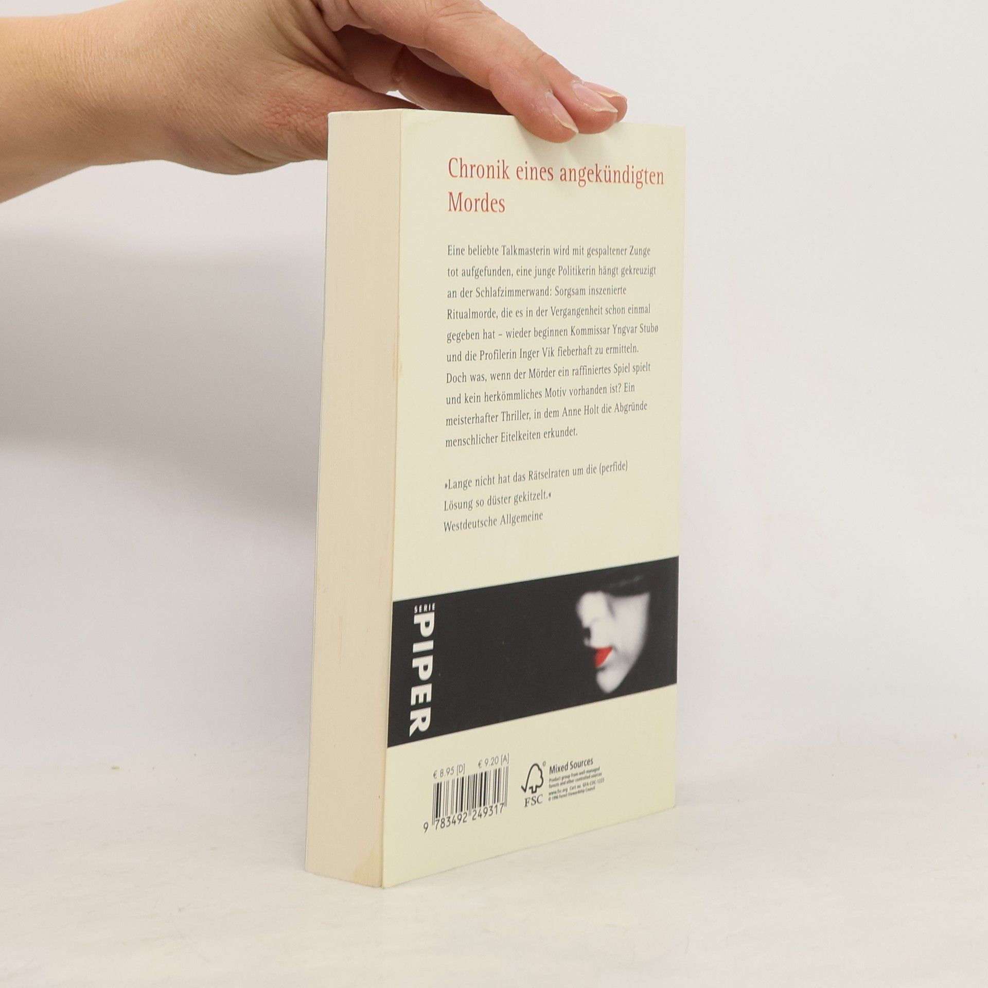 Eine beliebte Talkmasterin wird mit gespaltener Zunge tot aufgefunden, eine junge Politikerin hängt gekreuzigt an der Schlafzimmerwand: Sorgsam inszenierte Ritualmorde, die es in der Vergangenheit schon einmal gegeben hat – wieder beginnen Kommissar Yngvar Stubø und die Profilerin Inger Vik fieberhaft zu ermitteln. Doch was, wenn der Mörder ein raffiniertes Spiel spielt und kein herkömmliches Motiv vorhanden ist? Ein meisterhafter Thriller, in dem Anne Holt die Abgründe menschlicher Eitelkeiten erkundet.