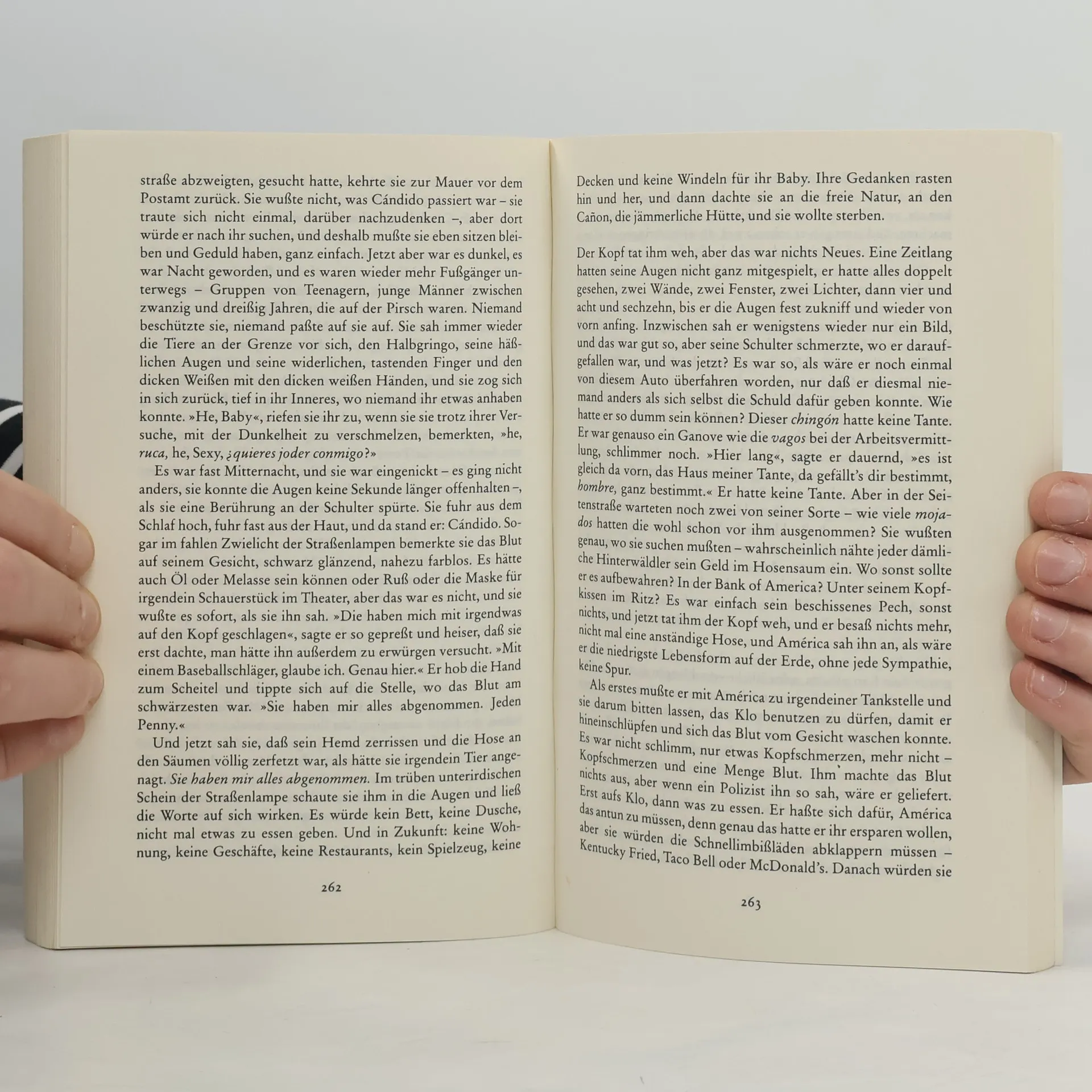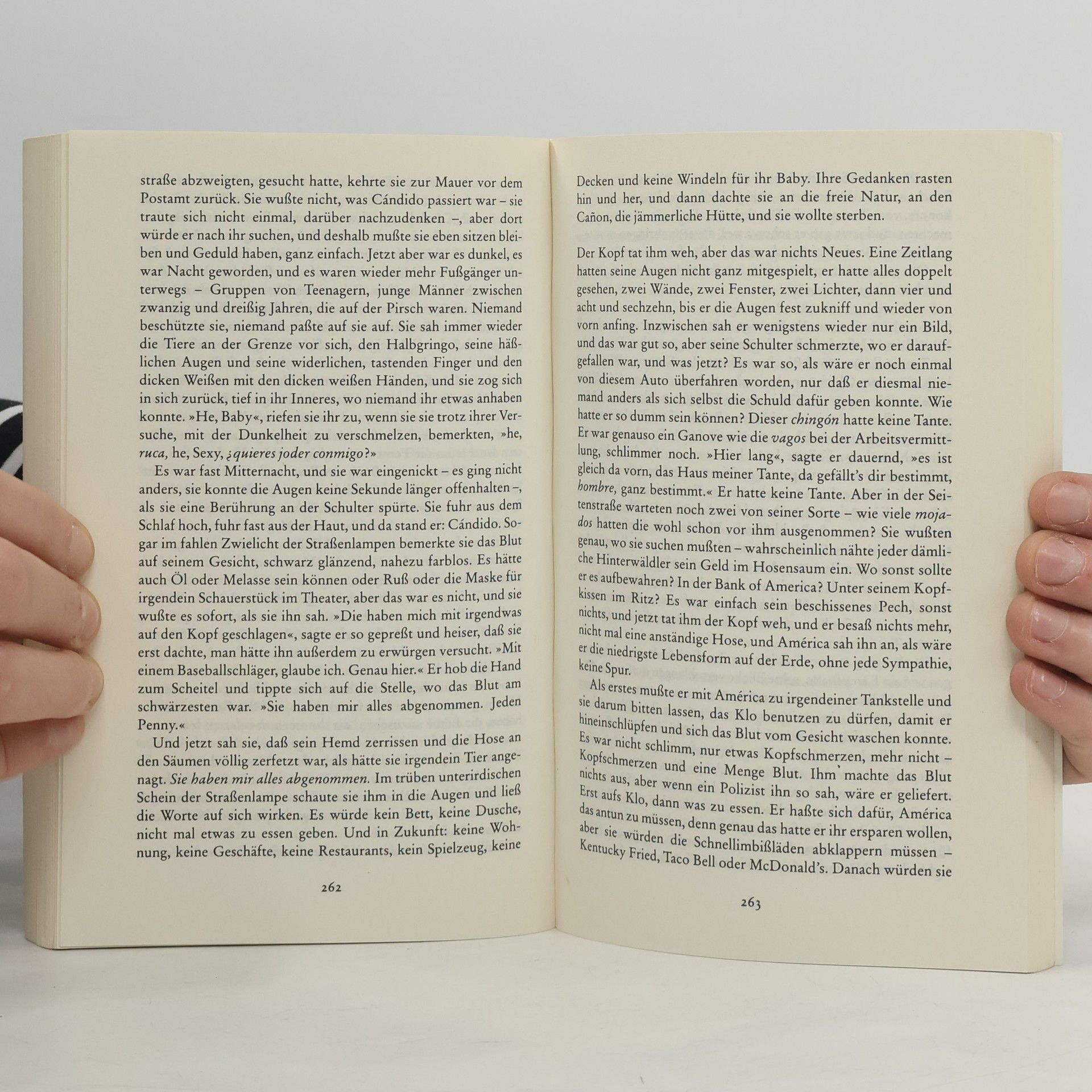 Zwei Welten, die sich fremder nicht sein könnten: hier América und Cándido, illegale Einwanderer aus Mexiko, dort das Ehepaar Mossbacher – liberale, umwelt- und ernährungsbewußte Angloamerikaner in Los Angeles ... Der Zusammenstoß Cándidos mit Delaney Mossbachers wachsgepflegtem Auto ist ein wortwörtlicher: Cándido, auf dem Weg zur Arbeit, rennt Delaney direkt vor die Haube und wird schwer verletzt. Da die Schuldfrage sich nicht klären läßt und der Mexikaner offenbar kein Englisch kann, drückt Delaney ihm eine 20-Dollar-Note in die Hand ... Delaney sieht seine geschützte Welt zunehmend bedroht: Kojoten dringen in das Grundstück ein und töten die kleinen Hunde, dunkelhäutige, verdächtige Gestalten lungern herum, wo er seine Wanderungen macht. Jenseits der eleganten Villensiedlung, tief unten im Topanga Canyon, hausen Cándido und América wie die Tiere. Sie versuchen ihr Glück auf dem illegalen Sklavenmarkt – verfolgt von der Immigrantenpolizei, vom Hunger, von der Verachtung der Weißen, von der Bösartigkeit der eigenen Landsleute.