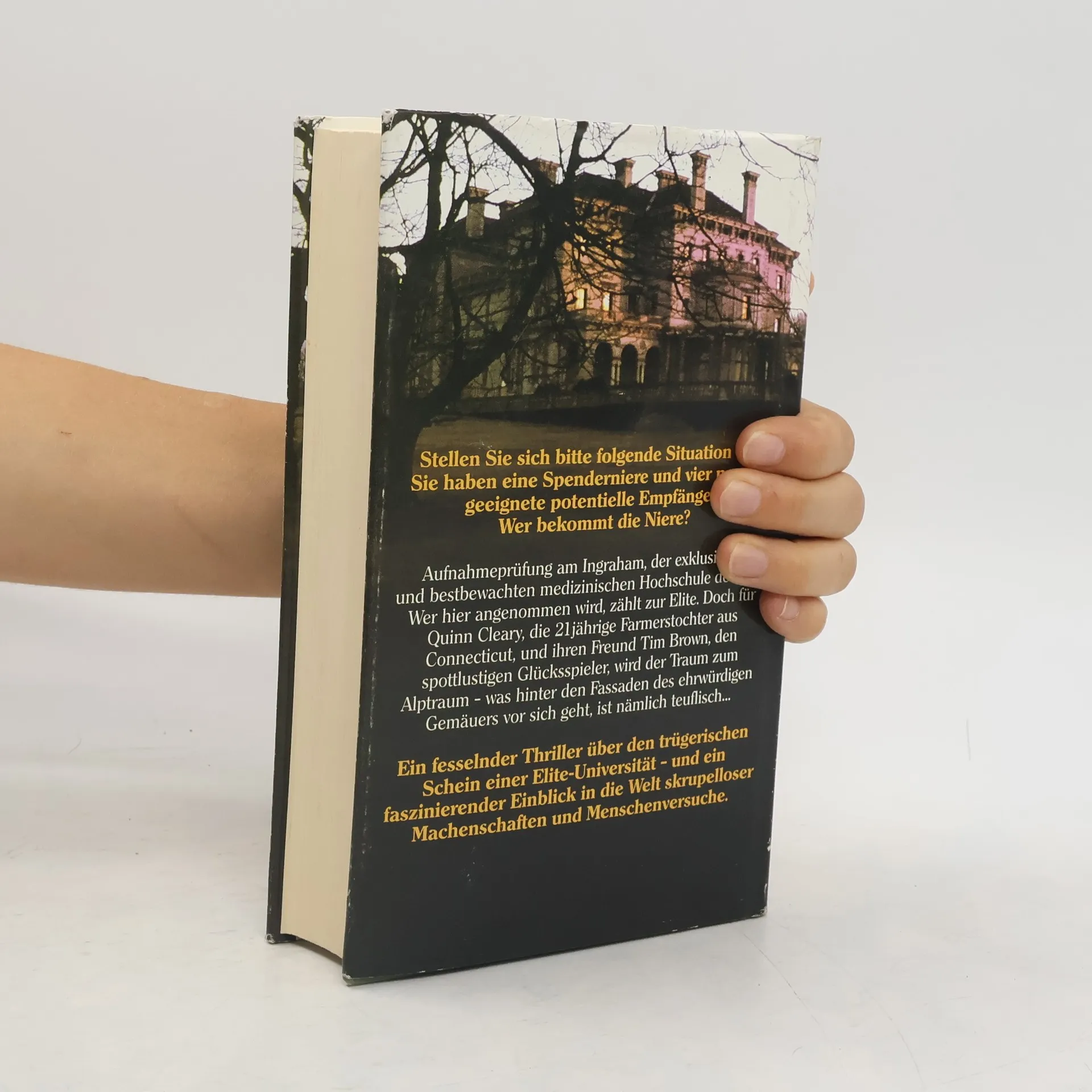 Amerikanischer Autor, geb. 1946. - Seit sie ihr Stipendium am Ingraham, der exklusivsten medizinischen Hochschule Amerikas, hat, kann Quinn Cleary sagen: Sie hat es geschafft. Doch schon bald wird ihr Enthusiasmus von dem Verdacht gedämpft, daß hinter den gutbewachten Mauern des Instituts undurchsichtige Dinge vorgehen. Quinn berichtet ihrem Freund, dem Glücksspieler Tim Brown, von ihren Ängsten, doch dieser glaubt ihr zunächst nicht. Bis er zufällig entdeckt, daß Quinn abgehört wird. Von da an geraten die beiden immer tiefer in einen Alptraum aus Lügen, Intrigen und Machtphantasien - ein Alptraum, aus dem es vielleicht kein Erwachen mehr gibt ...
