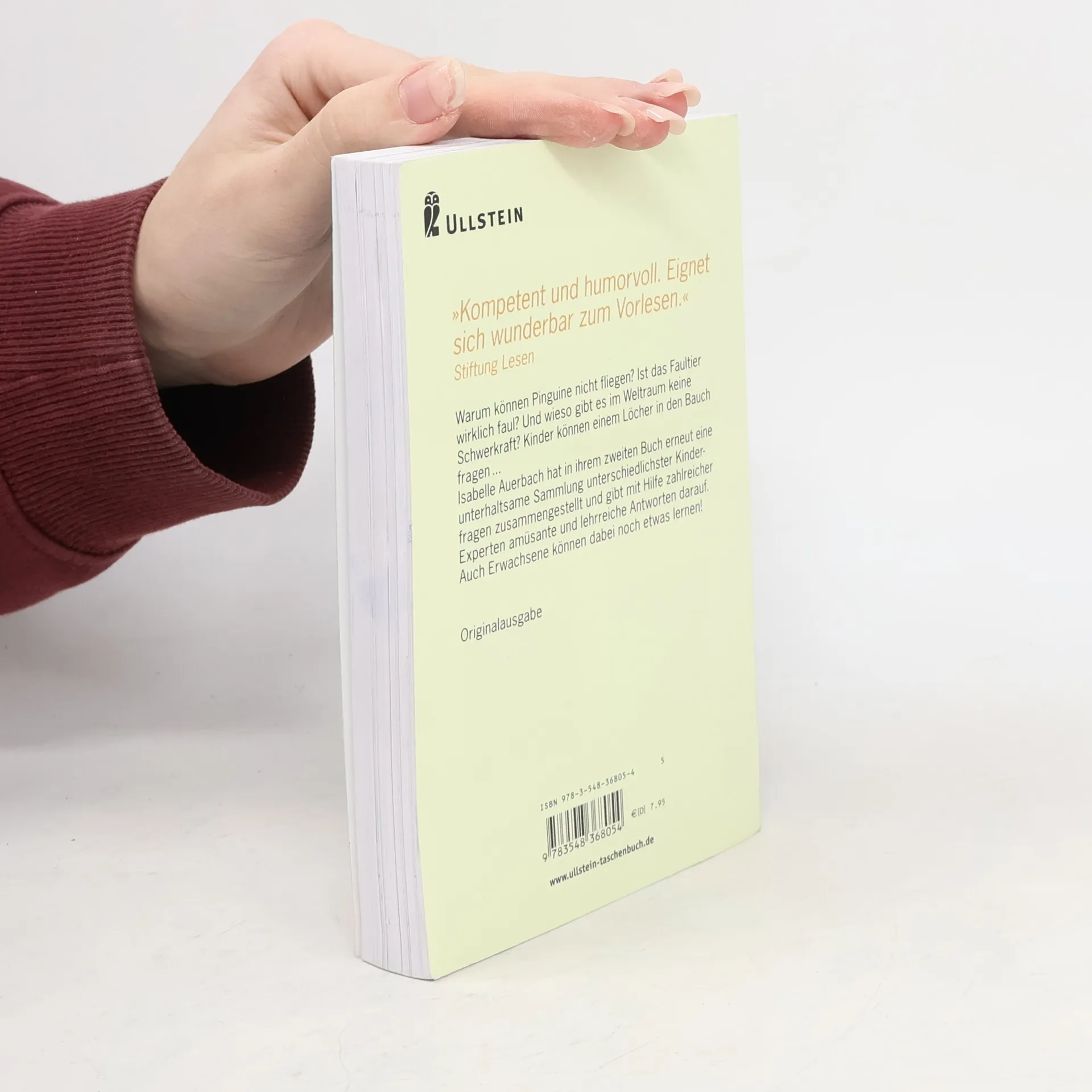 Warum können Pinguine nicht fliegen? Ist das Faultier wirklich faul? Wieso gibt es im Weltraum keine Schwerkraft? Kinder können einem Löcher in den Bauch fragen? Isabelle Auerbach hat in ihrem zweiten Buch erneut eine unterhaltsame Sammlung unterschiedlichster Kinderfragen zusammengestellt und gibt mit Hilfe zahlreicher Experten amüsante und lehrreiche Antworten darauf. Auch Erwachsene können dabei noch etwas lernen!