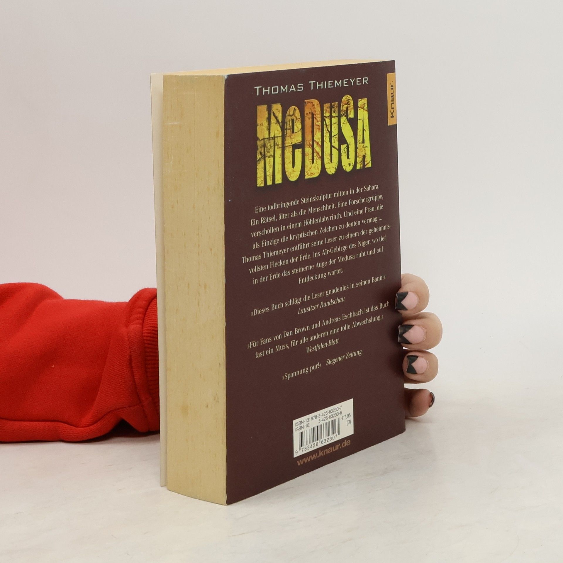 Eine todbringende Steinskulptur mitten in der Sahara. Eine Forschergruppe, verschollen in einem Höhlenlabyrinth. Und eine Frau, die als Einzige die kryptischen Zeichen zu deuten vermag - Thomas Thiemeyers spektakulärer Mystery-Thriller bietet spannende Unterhaltung erster Güte. Tief im Herzen der Sahara, inmitten jahrtausendealter Felsmalereien, macht die erfahrene Archäologin Hannah Peters eine seltsame Entdeckung: Eine Medusen-Skulptur, verziert mit Landkarten und Symbolen, kündet von einem Kultgegenstand von sagenhafter Schönheit und dunkler Kraft. Und das Volk, das ihn schuf, scheint sich selbst ausgelöscht zu haben. Als ein Team der National Geographic Society mit ihr auf Schatzsuche gehen soll, beschleicht Hannah starker Widerwille. Ein Alptraum beginnt: Was das steinerne Auge der Medusa vermag, ist mit menschlichen Sinnen nicht zu greifen. Es ist nicht bestimmt für die Lebenden ...