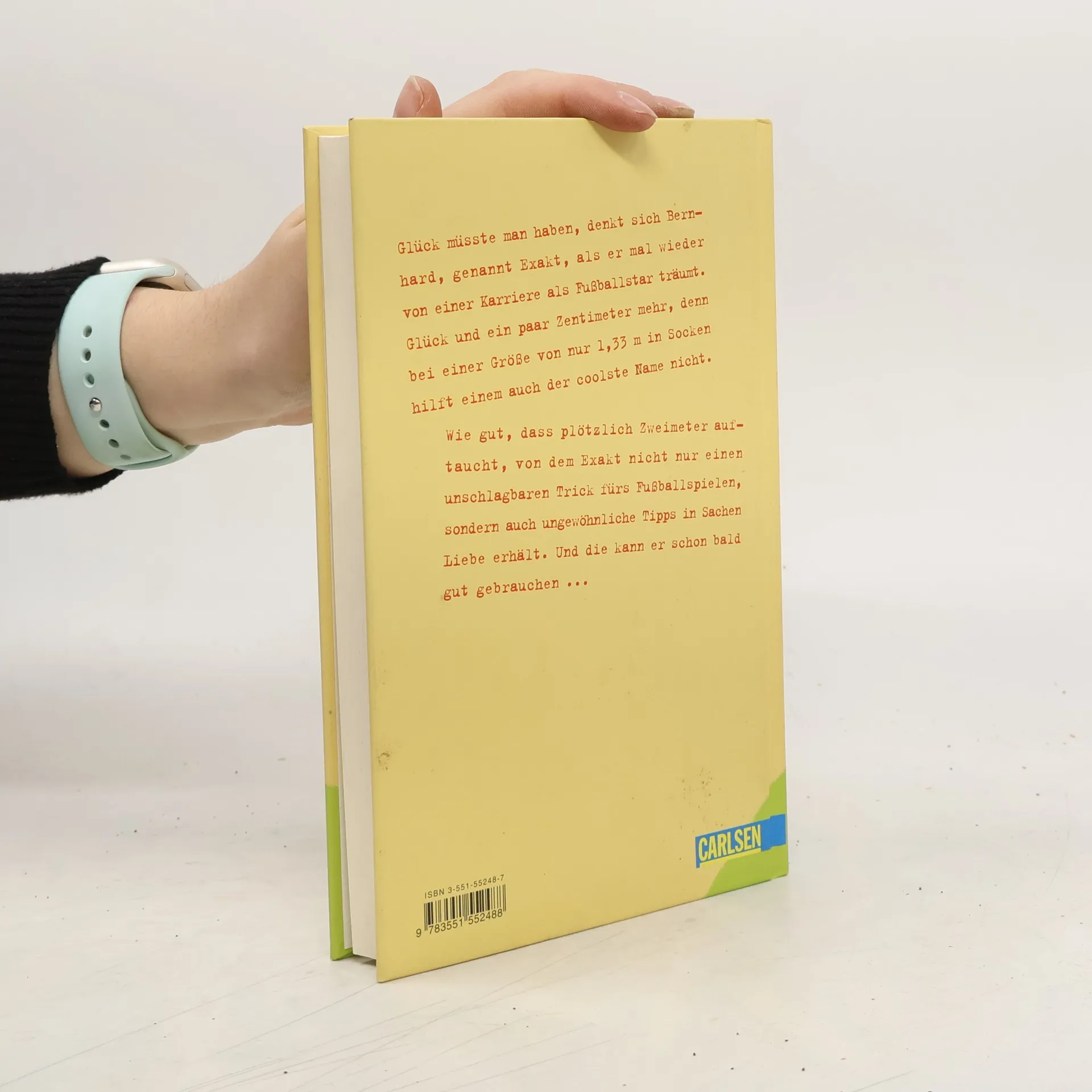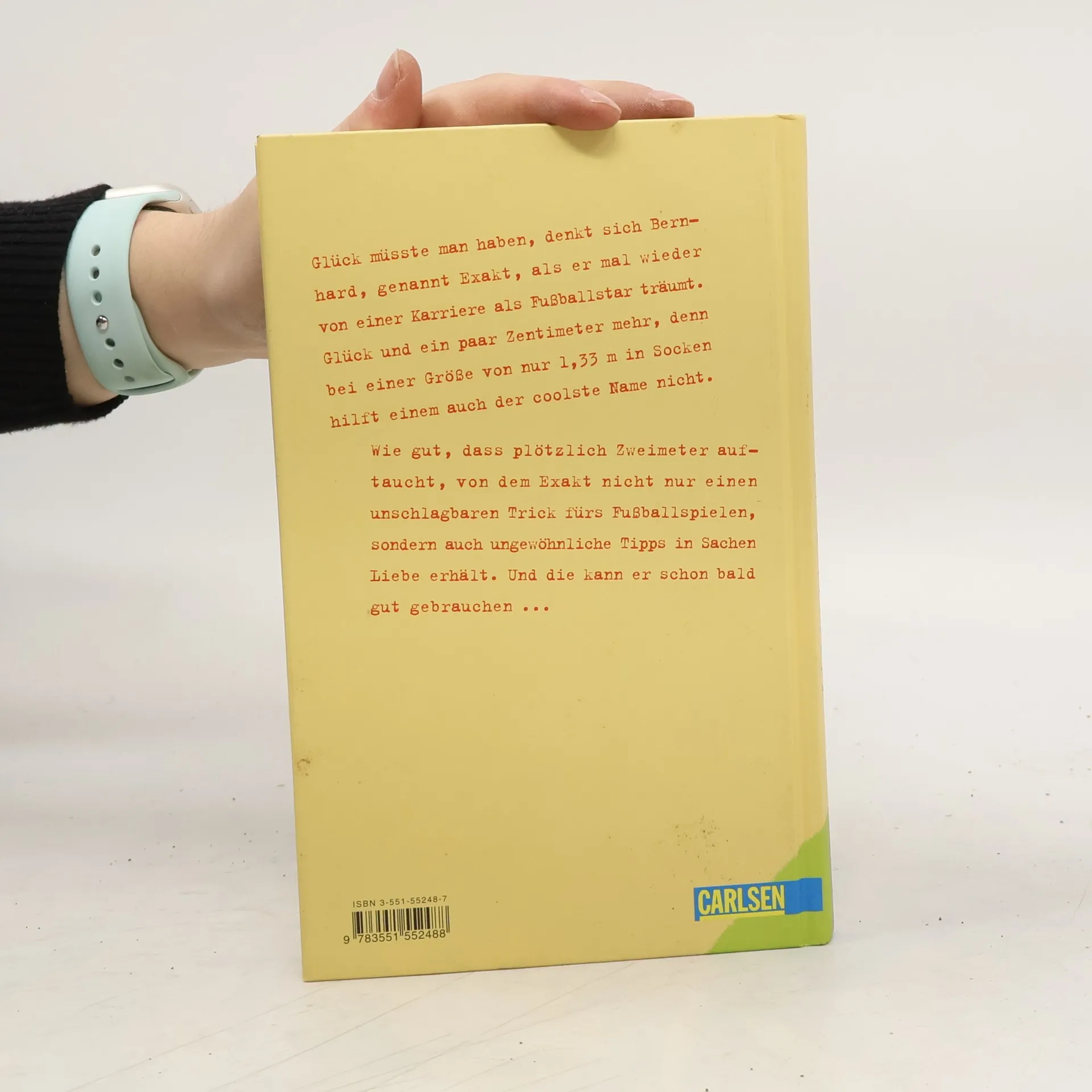 Glück müsste man haben, denkt sich Exakt, als er mal wieder von einer Karriere als Fußballstar träumt. Glück und ein paar Zentimeter mehr, denn bei einer Größe von nur 1,33 m hilft einem auch der coolste Name nichts. Schon gar nicht gegen so einen eingebildeten Typen wie Patrick, der grundsätzlich drei Tore hintereinander schießt. Wie gut, dass plötzlich Zweimeter auftaucht, Student in Geldnöten und das beste Gelegenheits-Kindermädchen, das Exakt sich vorstellen kann, wenn seine Eltern mal wieder auf Reisen sind. Von ihm erfährt er nicht nur einen unschlagbaren Trick fürs Fußballspielen, sondern auch ungewöhnliche Tipps in Sachen Liebe. Und die kann er gut gebrauchen, als aus heiterem Himmel bzw. im ruckelnden Fahrstuhl die schöne Helene vor ihm steht!