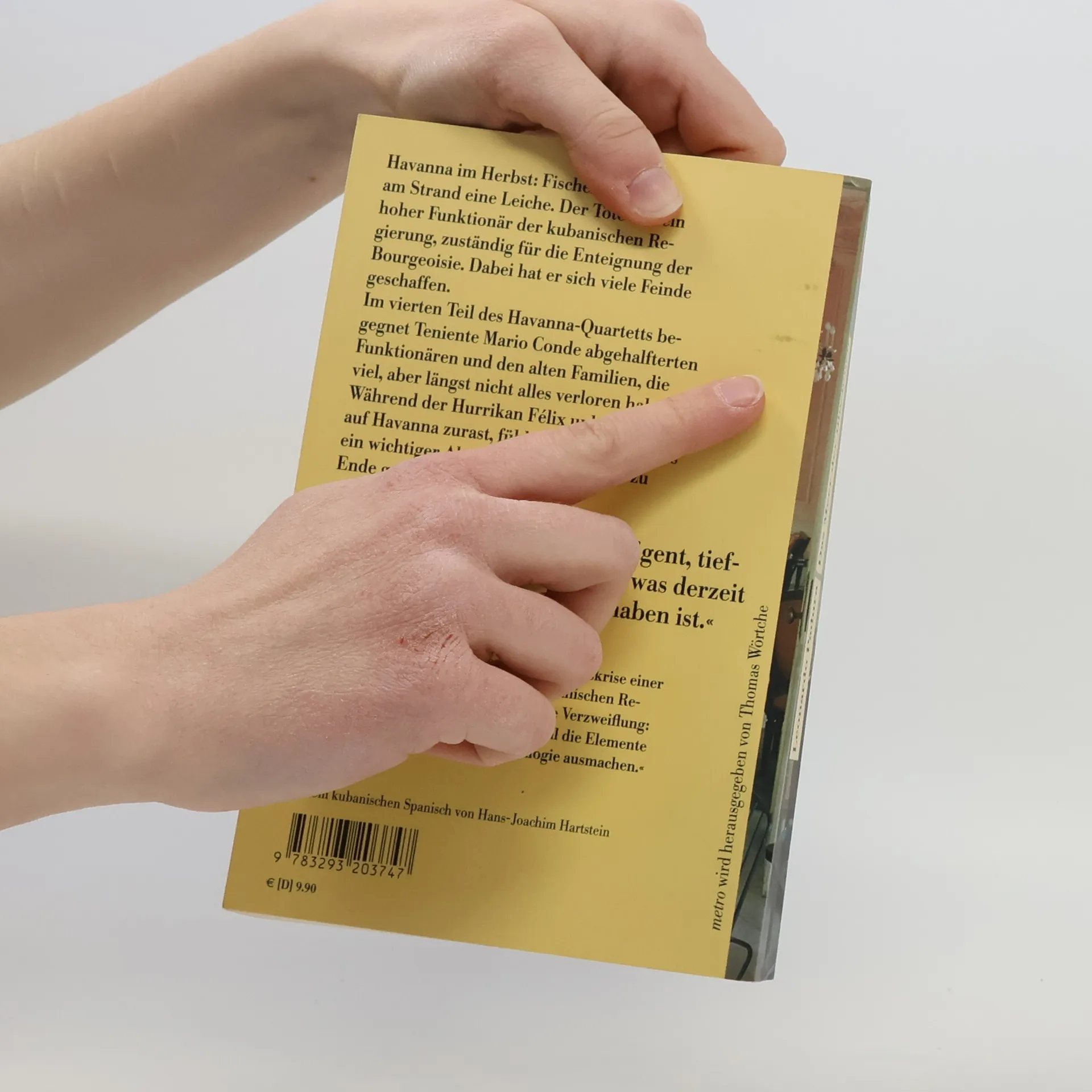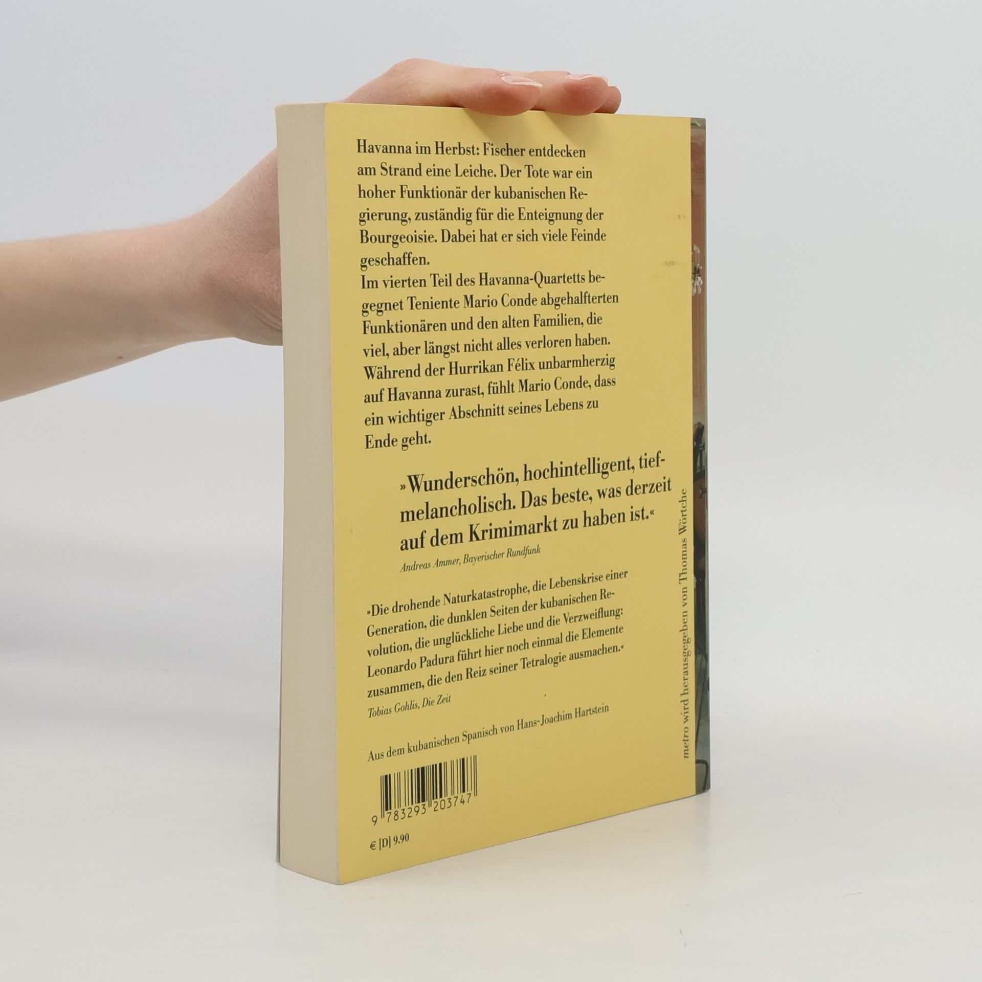 Havanna im Herbst 1989: Fischer entdecken am Strand eine Leiche. Wie sich herausstellt, war der Tote ein hoher Funktionär der kubanischen Regierung, bis er sich vor elf Jahren in die USA absetzte. Damals zuständig für die Enteignung der Bourgeoisie, hatte er sich viele Feinde geschaffen. Warum kehrte er nach Kuba zurück? Wollte er wirklich nur seinen schwer kranken Vater besuchen? Oder gab es einen anderen Grund? Im vierten Teil des Havanna-Quartetts begegnet Teniente Mario Conde abgehalfterten Funktionären und den alten Familien, die viel, aber längst nicht alles verloren haben. Während der Hurrikan Félix unbarmherzig auf Havanna zurast, fühlt Mario Conde, dass ein wichtiger Abschnitt seines Lebens zu Ende geht.