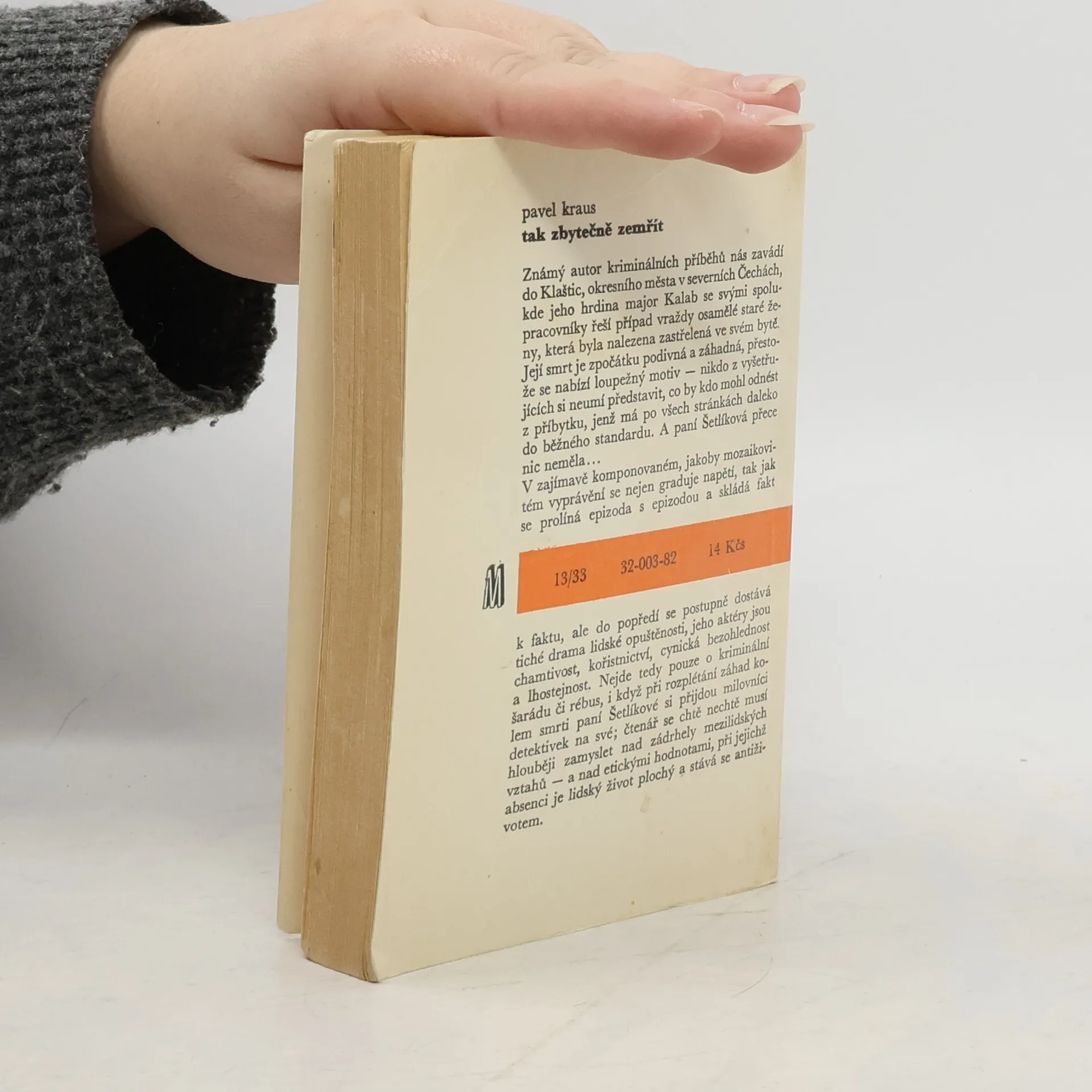 Známý autor kriminálních příběhů nás zavádí do Klaštic, okresního města v severních Čechách, kde jeho hrdina major Kalab se svými spolupracovníky řeší případ vraždy osamělé staré ženy, která byla nalezena zastřelená ve svém bytě. Její smrt je zpočátku podivná a záhadná, přestože se nabízí loupežný motiv - nikdo z vyšetřujících si neumí představit, co by kdo mohl odnést z příbytku, jenž má po všech stránkách daleko do běžného standardu. A paní Šetlíková přece nic neměla... V zajímavě komponovaném, jakoby mozaikovitém vyprávění se nejen graduje napětí, tak jak se prolíná epizoda s epizodou a skládá fakt k faktu, ale do popředí se postupně dostává tiché drama lidské opuštěnosti, jeho aktéry jsou chamtivost, kořistnictví, cynická bezohlednost a lhostejnost. Nejde tedy pouze o kriminální šarádu či rébus, i když při rozplétání záhad kolem smrti paní Šetlíkové si přijdou milovníci detektivek na své; čtenář se chtě nechtě musí hlouběji zamyslet nad zádrhely mezilidských vztahů - a nad etickými hodnotami, při jejichž absenci je lidský život plochý a stává se antiživotem.