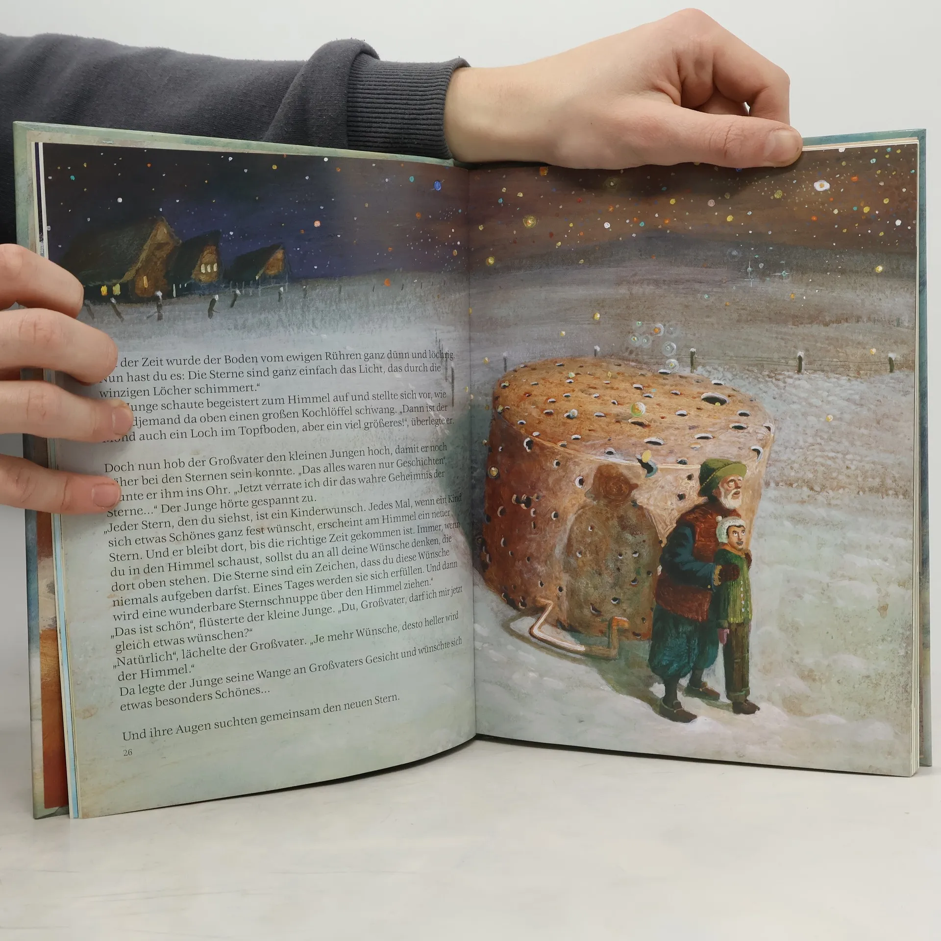 Das Geschenk der Geschenke: Als der alte Hase über die gefrorene Erde der Wiese hoppelt, purzelt vor seiner Nase ein zerzauster Engel mit einer Bommelmütze ins Gras. Er ist auf der Suche nach dem Geschenk der Geschenke. Daraus entwickelt sich nun eine Geschichte nach der anderen. Der Engel glaubt nach dem Zyklus der 24 Geschichten noch immer ohne Geschenk zu sein, bis der alte Hase ihm die Augen öffnet und er den Reichtum von Geschichten erkennt. So entsteht ein Buch mit tollen Farbbildern, eine wunderbare Sammlung von ausgewählten Bilderbüchern der Jahre 1985 bis 2002 zum Thema Weihnachten. Die Geschichten können während der Adventszeit wie ein Kalender gelesen oder erzählt werden und sind ein Geschenk an Zuwendung und Zeit für Kinder. Ab 5 Jahren, gut, Denise Racine.