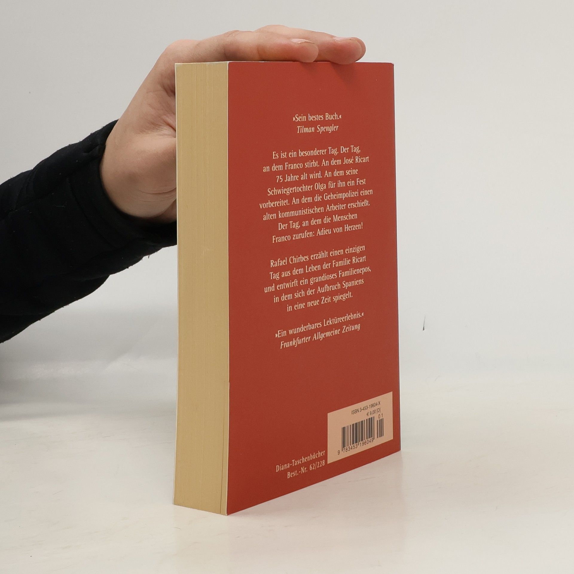 Es ist ein besonderer Tag. Der Tag, an dem Franco stirbt. An dem José Ricart 75 Jahre alt wird. An dem seine Schwiegertochter Olga für ihn ein Fest vorbereitet. Rafael Chirbes erzählt einen einzigen Tag aus dem Leben der Familie Ricart und entwirft ein grandioses Familienepos, in dem sich der Aufbruch Spaniens in eine neue Zeit spiegelt. „Sein bestes Buch.“ Tilman Spengler im Literarischen Quartett