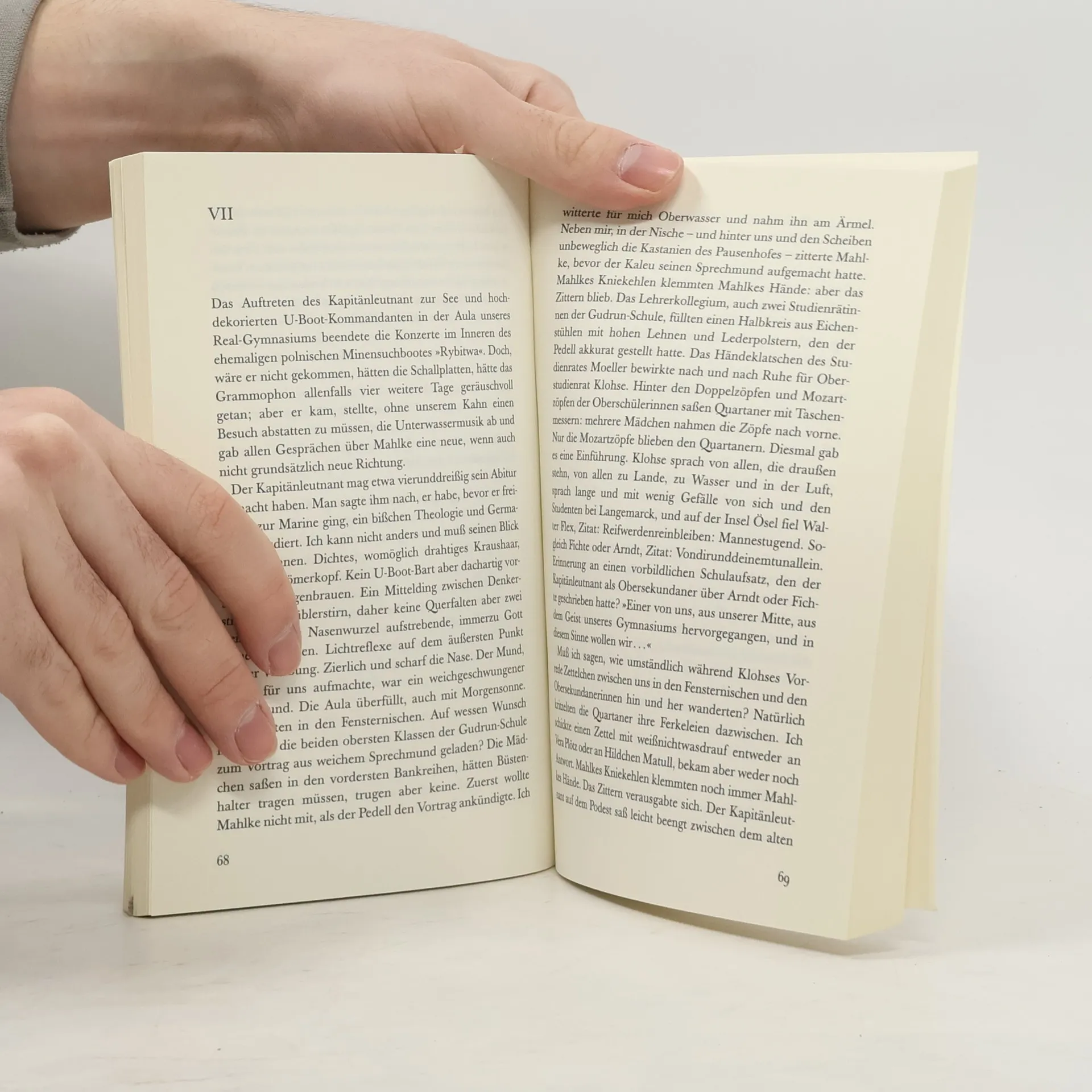 Der verzweifelte Kampf um Integration Aus der Rückschau des Jahres 1959 erzählt Pilenz vom bewunderten und verachteten Klassenkameraden Mahlke im Danzig der Kriegszeit, den sein übergroßer Adamsapfel zum Außenseiter macht. Mahlke führt einen verzweifelten Kampf um seine Integration, um die Schließung des existentiellen Risses zwischen »Katz« und »Maus«, und wird doch im Sieg endgültig scheitern. Auch das Ritterkreuz, von dem er sich − Perversion der Zeit gemäß − Erlösung durch Bedeckung seiner Blöße erhofft, verhilft ihm nicht zum Frieden mit der Welt. »Die große Danzig-Saga, als deren zweites, aber gewiß nicht letztes Stück ›Katz und Maus‹ sich darstellt, ist eine Suche nach dem verlorenen Raum. Unerreichbar und unerschöpflich, doch deutlich wie Vineta in der Flut, liegt Danzig auf dem Grund dieser Prosa da.« Hans Magnus Enzensberger