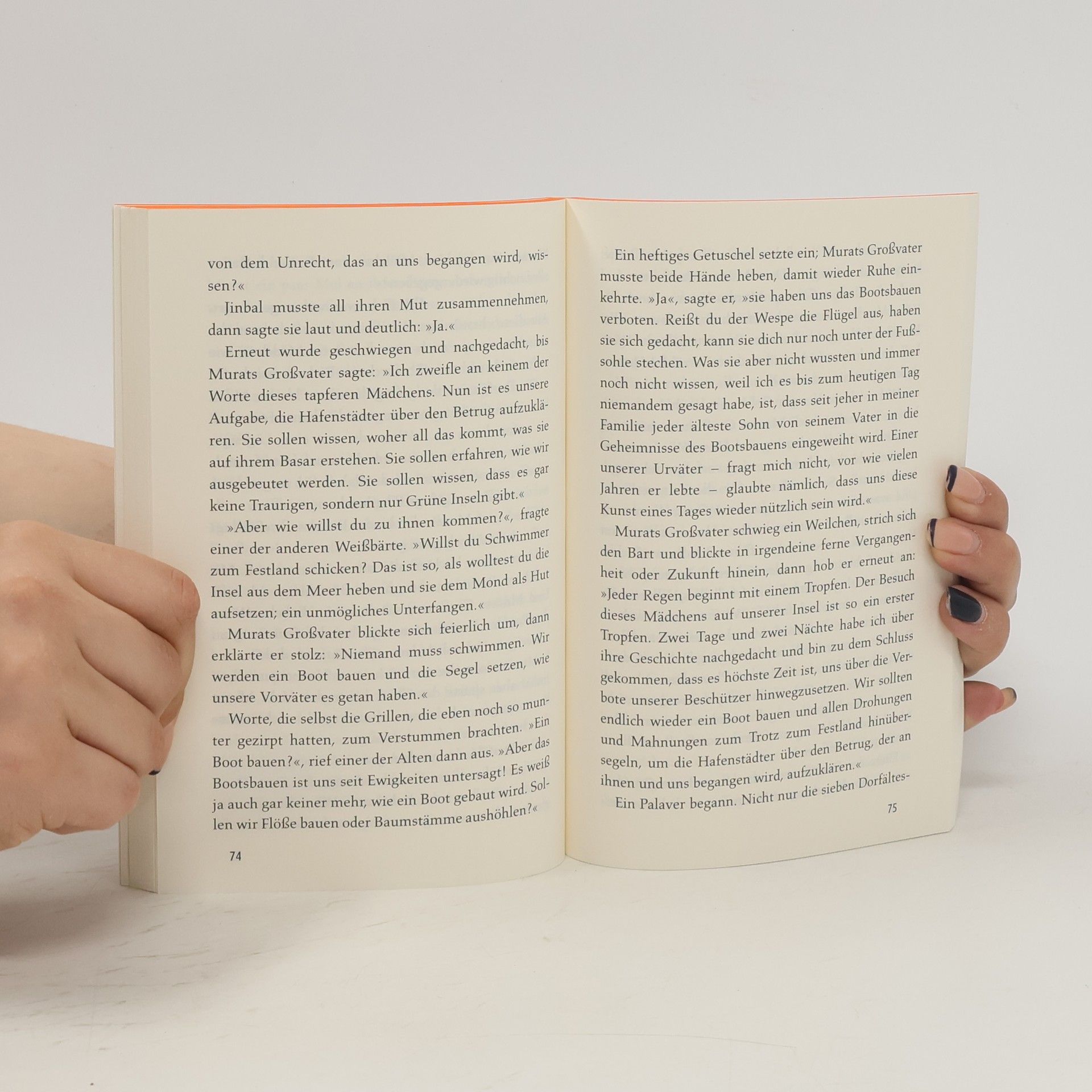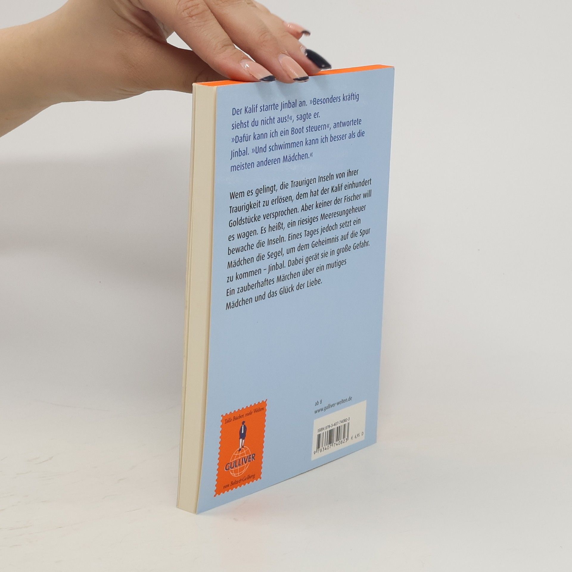 „Klaus Kordon zeigt auch in diesem Buch, wie hoch er den Wert von Freiheit und Gerechtigkeit schätzt.“ Berliner Zeitung Wem es gelingt, die traurigen Inseln von ihrer Traurigkeit zu erlösen, dem hat der Kalif einhundert Goldstücke versprochen. Aber keiner der Fischer in der Hafenstadt will es wagen. Es heißt, ein riesiges Meerungeheuer bewache die Insel. Eines Tages jedoch setzt ein Mädchen die Segel, um dem Geheimnis auf die Spur zu kommen – Jinbal, die von allen nur verspottet wird. Nach stürmischer Überfahrt erreicht sie eine der Inseln, wo sie erfährt, dass das Ungeheuer eine Erfindung des Kalifen ist, der die Inselbewohner gnadenlos ausbeutet. Ihr Wissen bringt Jinbal in große Gefahr, doch Murat, den sie von ganzem Herzen liebt, bewahrt sie vor dem Tod.