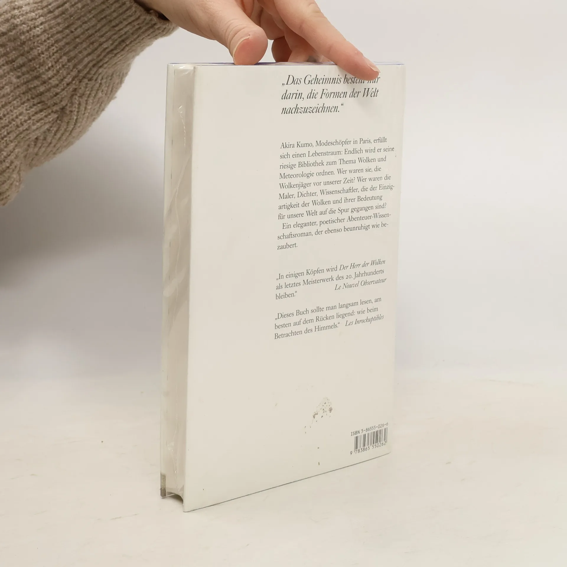 Ein Modeschöpfer aus Paris ordnet seine Bibliothek zum Thema Wolken. Ein eleganter, poetischer Abenteuer-Wissenschaftsroman.