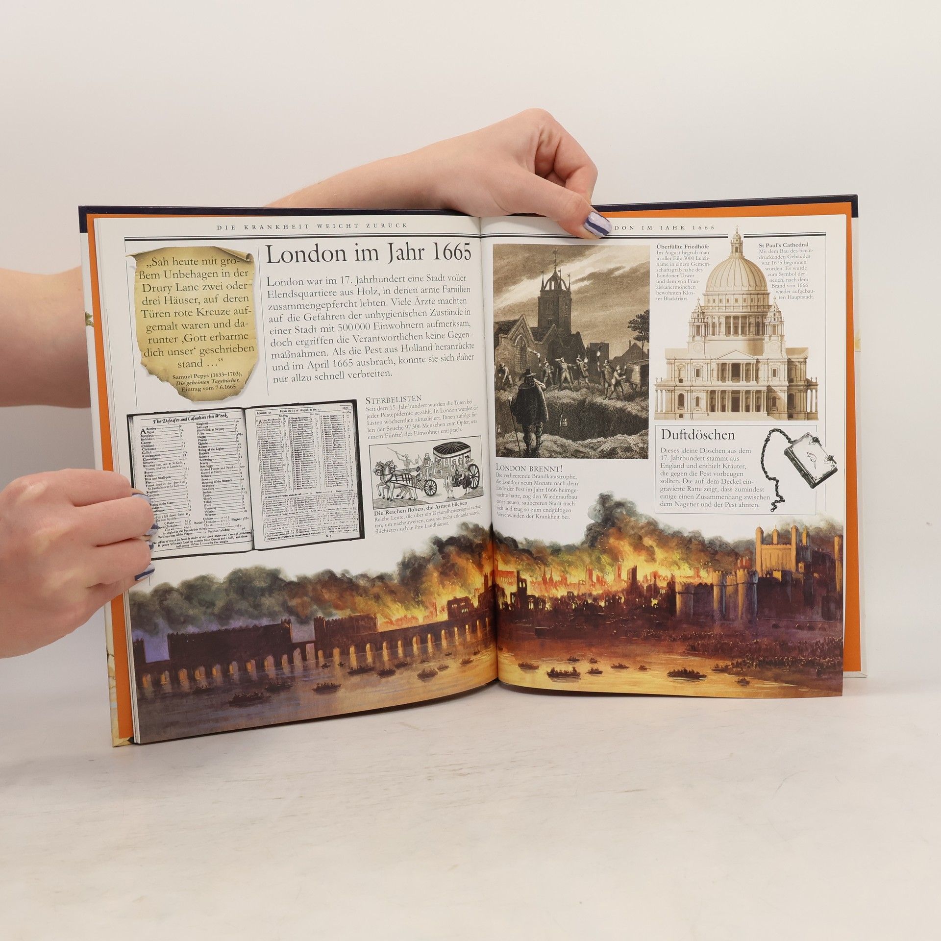Die Pest und ihre Auswirkungen: Mit der gefürchteten Seuche, der Pest, befasst sich das vorliegende Buch aus der bekannten Reihe "Geschichte erleben". Darin wird berichtet, wann die Pest erstmals auftrat, wie der Verlauf der Krankheit war, wie sie übertragen wurde und wie die Menschen versuchten sich dagegen zu schützen und sie zu bekämpfen. Ebenso beschreibt es, wer den Pestbazillus entdeckte und den Impfstoff gegen die Krankheit erfand, wie sich die Kirche zu dieser Zeit verhielt oder was für gefürchtete Krankheiten es gab. Vermittelt wird dieses Wissen in zahlreichen grösseren und kleinen Texten, welche durch viel herrliches Bildmaterial veranschaulicht wurde. Dass solche Bücher niemals in die Tiefe gehen können, aber durchaus einen guten Überblick über das Thema bieten und sehr interessant und lehrreich sind, dürfte an der sehr anschaulichen Art der Gestaltung liegen. Ab 10 Jahren, gut, Beatrice Balint.