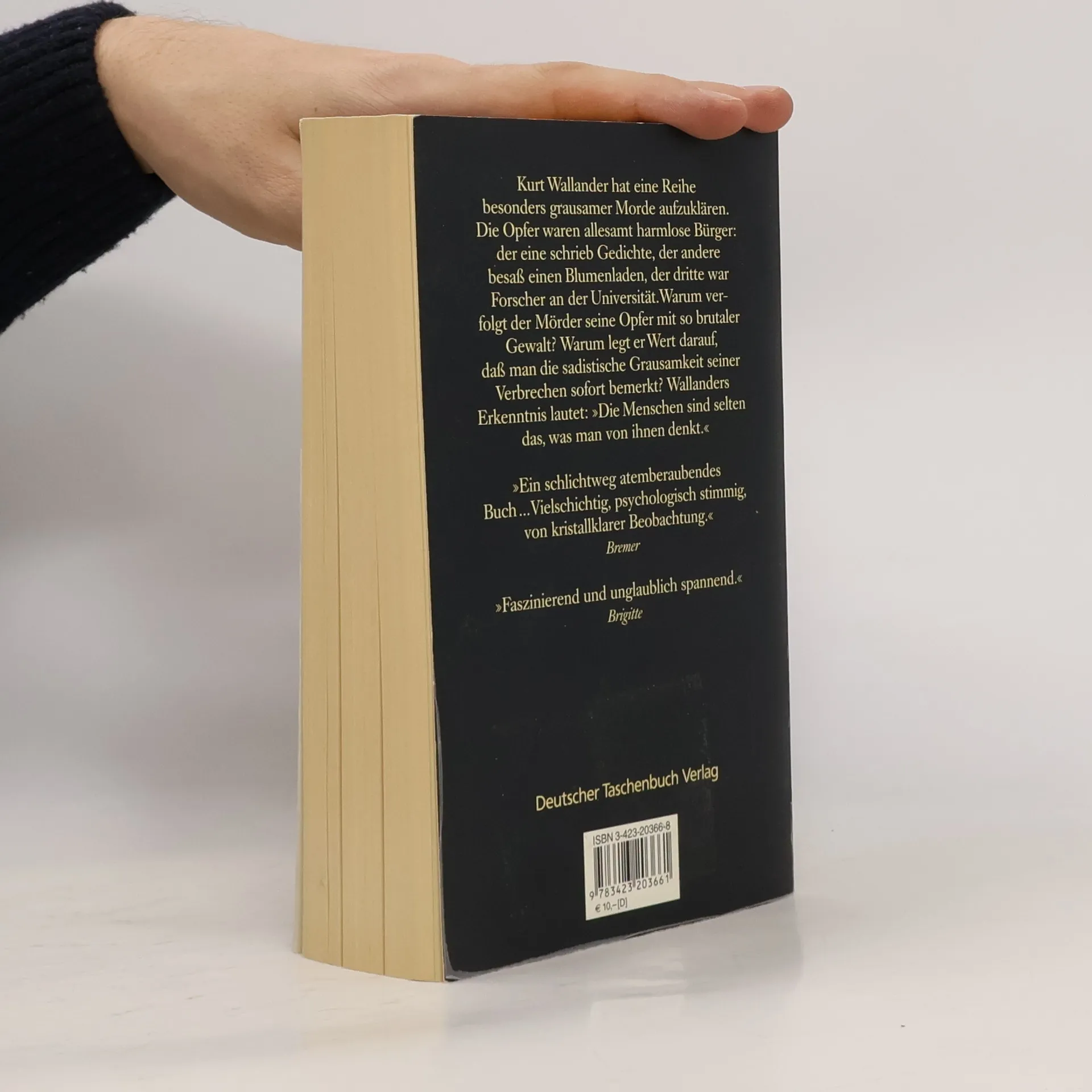 Wallander soll die brutalen Morde an fünf Männern – alles scheinbar achtbare Bürger – aufklären. Wallanders sechster Fall. Bei der Mordserie, die Kurt Wallander gerade aufzuklären hat, kann es selbst erfahrenen Polizisten kalt den Rücken hinunterlaufen: Einen alten Mann findet man in einer Pfahlgrube aufgespießt, einen anderen halbverhungert, beinahe nackt an einen Baum gebunden und erwürgt. Ein dritter wurde in einem mit Steinen beschwerten Sack in einem See ertränkt. Die Opfer scheinen auf den ersten Blick achtbare Bürger gewesen zu sein, doch stellt sich bei genaueren Nachforschungen sehr bald heraus, daß auch sie Frauen grausam mißhandelt haben. Wenn nun aber der Mord die Rache eines Opfers an Mördern und Vergewaltigern ist, muß Wallander sich beeilen, bevor das nächste, noch grausamere Verbrechen geschieht ...