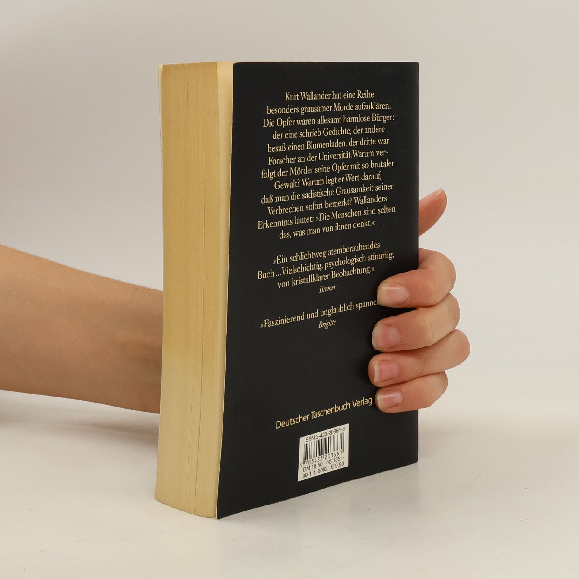Wallander soll die brutalen Morde an fünf Männern – alles scheinbar achtbare Bürger – aufklären. Wallanders sechster Fall. Bei der Mordserie, die Kurt Wallander gerade aufzuklären hat, kann es selbst erfahrenen Polizisten kalt den Rücken hinunterlaufen: Einen alten Mann findet man in einer Pfahlgrube aufgespießt, einen anderen halbverhungert, beinahe nackt an einen Baum gebunden und erwürgt. Ein dritter wurde in einem mit Steinen beschwerten Sack in einem See ertränkt. Die Opfer scheinen auf den ersten Blick achtbare Bürger gewesen zu sein, doch stellt sich bei genaueren Nachforschungen sehr bald heraus, daß auch sie Frauen grausam mißhandelt haben. Wenn nun aber der Mord die Rache eines Opfers an Mördern und Vergewaltigern ist, muß Wallander sich beeilen, bevor das nächste, noch grausamere Verbrechen geschieht ...