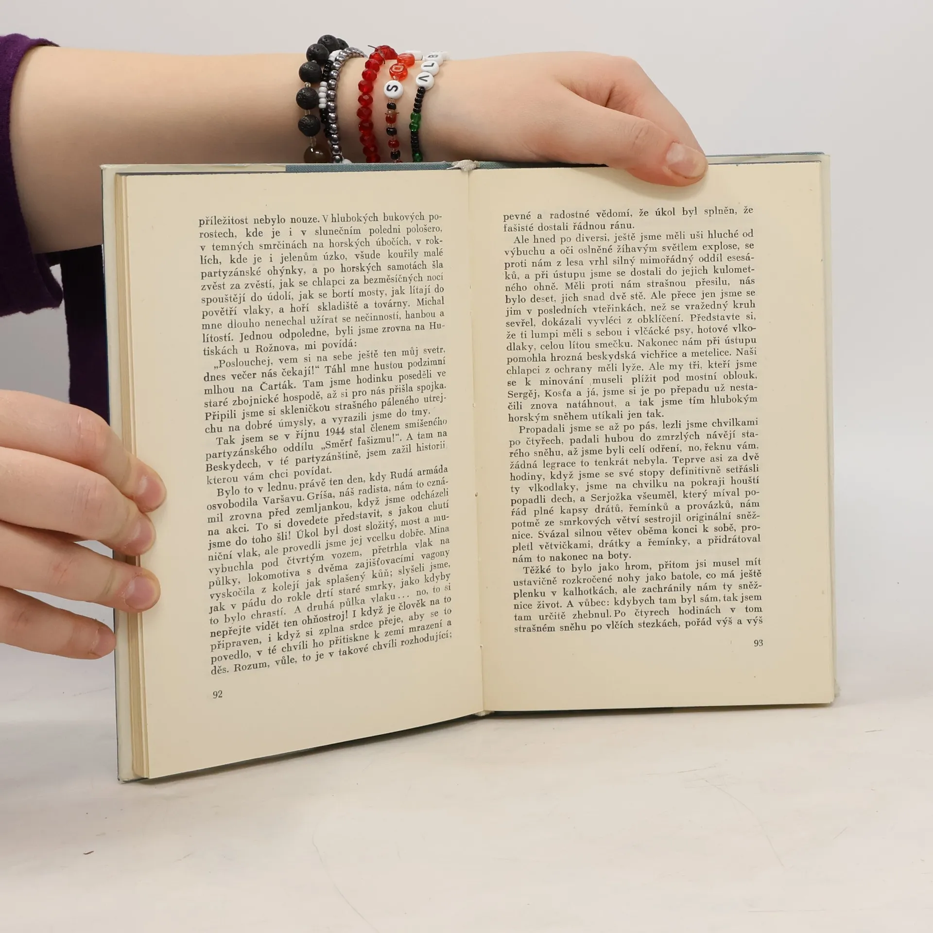 O Krásné Tortize, sovět. kolchozu, nechá autor vyprávět – jako vůbec často v této knize – hrdinu povídky, českého zemědělce, který se už v květnu 1945 prostřednictvím rudoarmějce-kolchozníka seznámil s prací sovět. soudruhů a podle jejich vzoru (zejména po návštěvě SSSR) pomáhábudovat vzorné JZD. „Radostné setkání“ navazuja na pov. „Vyšší princip“, známou z Němé barikády (a uveřejněnou i v této knize). Vypráví, jak na profesora nazývaného Vyšší princip, zapůsobilo zatčení jeho žáků nacist. okupanty i později styk se sovět. partyzány. Dříve isolovaný profesor se soudružsky sbližuje s lidem a jako přesvědčený marxista se stává po válce členem KSČ. „Hrdinou“ pov. „Politik“ je předůnorový ministr reakcionář, jehož „politiku“ odkryl v únoru pracující lid. V pov. „Polévka matky Krovozové“ ukazuje Drda hrdinství chudých beskydských horalů, kteří se za války zříkali posledního, aby pomohli partyzánům. Rudý prapor, symbol dělnické krve, prolité v bojích s kapitalisty, je vlastním hrdinou povídky „Choura praporečník“. Ilegální činnost bezejmenných hrdinů i jejich politické uvědomování zachytil autor v povídkách „Andělé pana Hromka“ a „Dařbuján a pidimužíci“. O životě naší pohraniční stráže, bránící mír své země proti diversantům zrádcům a špionům vyprávějí dvě posl. pov., „Svědek dějin“ a „Prapor“. 2. vyd.