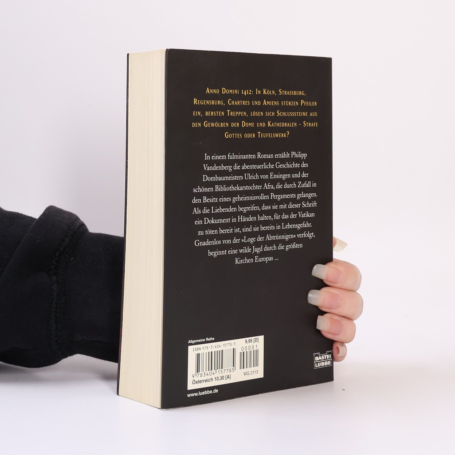Anno Domini 1412: In Köln, Straßburg, Regensburg, Chartres und Amiens stürzen Pfeiler ein, bersten Treppen, lösen sich Schlusssteine aus den Gewölben der Dome und Kathedralen - Strafe Gottes oder Teufelswerk? In einem fulminanten Roman erzählt Philipp Vandenberg die abenteuerliche Geschichte des Dombaumeisters Ulrich von Ensingen und der schönen Bibliothekarstochter Afra, die durch Zufall in den Besitz eines geheimnisvollen Pergaments gelangen. Als die Liebenden begreifen, dass sie mit dieser Schrift ein Dokument in Händen halten, für das der Vatikan zu töten bereit ist, sind sie bereits in Lebensgefahr. Gnadenlos von der „Loge der Abtrünnigen“ verfolgt, beginnt eine wilde Jagd durch die größten Kirchen Europas ...