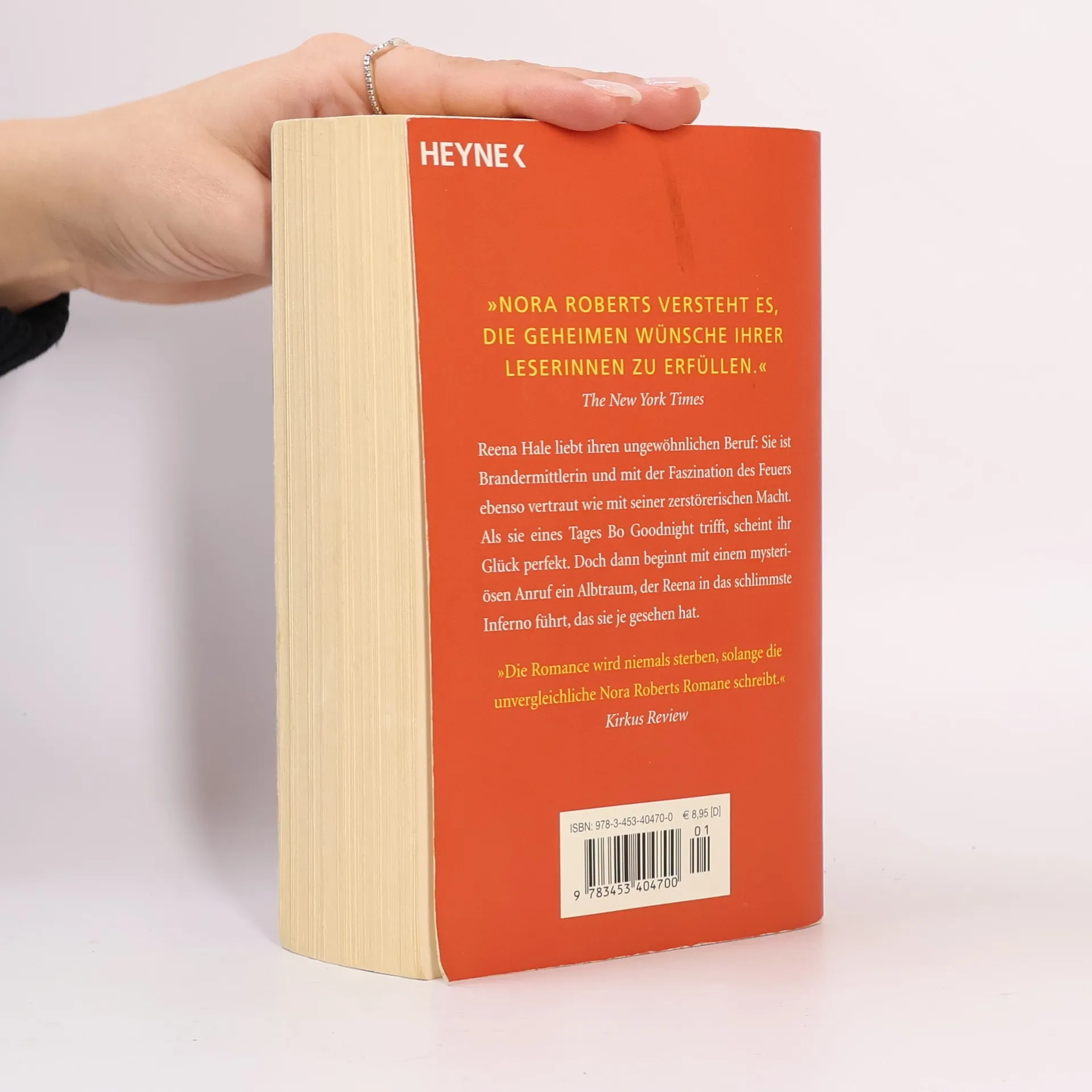 Reena Hale liebt ihren ungewöhnlichen Beruf: Sie ist Brandermittlerin und mit der Faszination des Feuers ebenso vertraut wie mit seiner zerstörerischen Macht. Als sie eines Tages Bo Goodnight trifft, scheint ihr Glück perfekt. Doch dann beginnt mit einem mysteriösen Anruf ein Albtraum, der Reena in das schlimmste Inferno führt, das sie je gesehen hat. Ein schlimmes Erlebnis in Reenas Kindheit hat ihr Leben unauslöschlich geprägt: Die Pizzeria ihrer Familie fiel einer Brandstiftung zum Opfer. Zwar wurde der Brandstifter erhaftet und das Restaurant ließ sich mit Hilfe von Nachbarn und Freunden wieder aufbauen, aber die zerstörerische Macht und die Faszination des Feuers haben sie nie wieder losgelassen. Deshalb wollte sie Brandermittlerin werden. Auch in der Liebe hat Reena schon einige Enttäuschungen erlebt. Da trifft sie eines Tages Bo Goodnight, der anders zu sein scheint als alle anderen Männer. Er hat seit Jahren nach einer Frau wie Reena gesucht und ist wild entschlossen, sie nicht wieder loszulassen. Aber da gibt es noch jemanden, der sich auf ihre Spur gesetzt hat. Jemand, der die Macht des Feuers kennt wie sie und der diese Macht benutzen will, um furchtbare Rache zu üben.