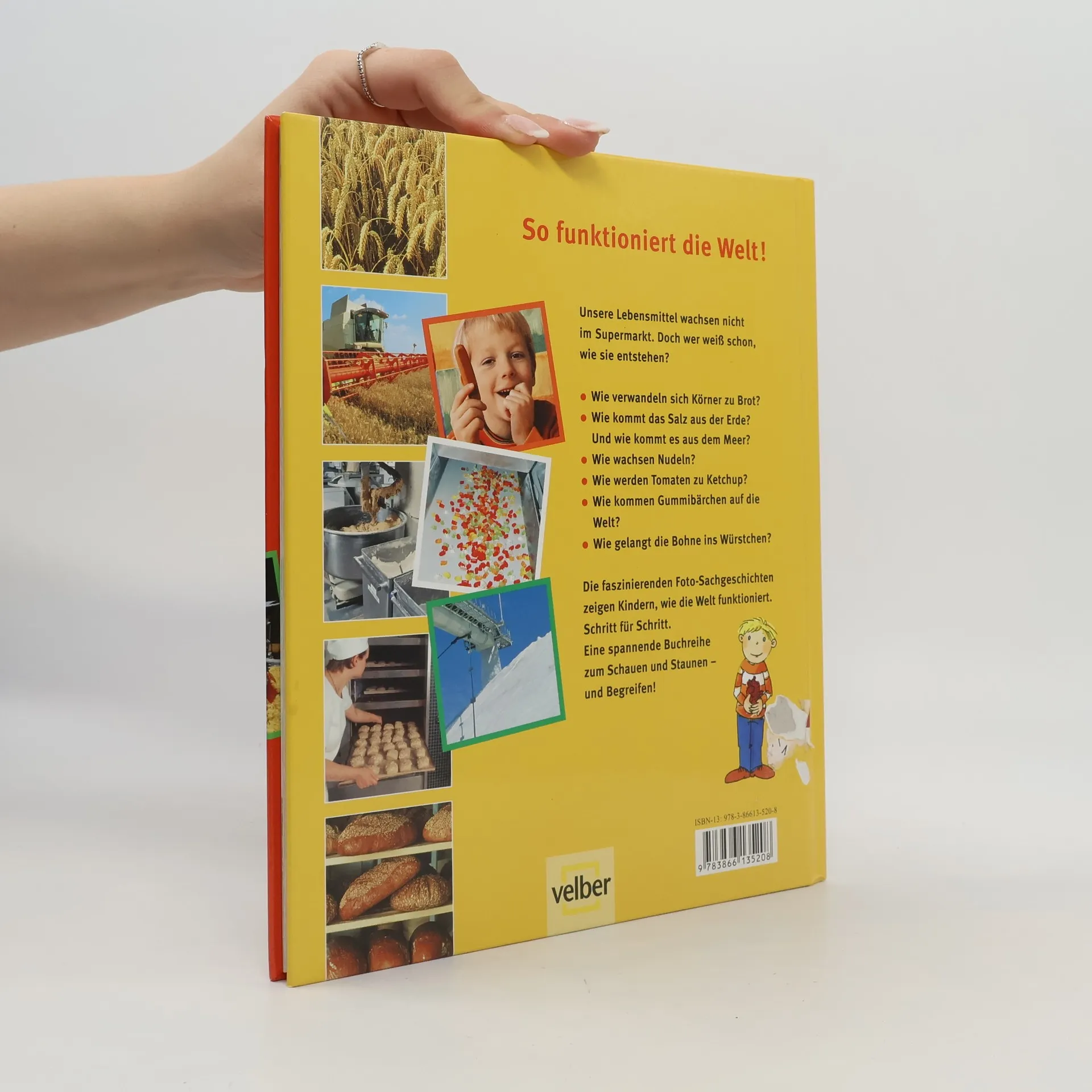 Lebensmittel wachsen nicht im Supermarkt. Doch wer weiss schon, wie sie wirklich entstehen? Die spannenden Foto-Sachgeschichten zeigen es. So werden Tomaten rot und wandern in die Ketchupflasche… So wachsen Kartoffeln und werden zu Pommes… So baut man Getreide an und macht Brot und Nudeln. So entstehen Gummibärchen. So werden Sojabohnen zu Tofuwürstchen und Äpfel zu Saft. Faszinierende Foto-Sachgeschichten zeigen, wie unsere Lebensmittel entstehen. Wer hätte es gewusst?