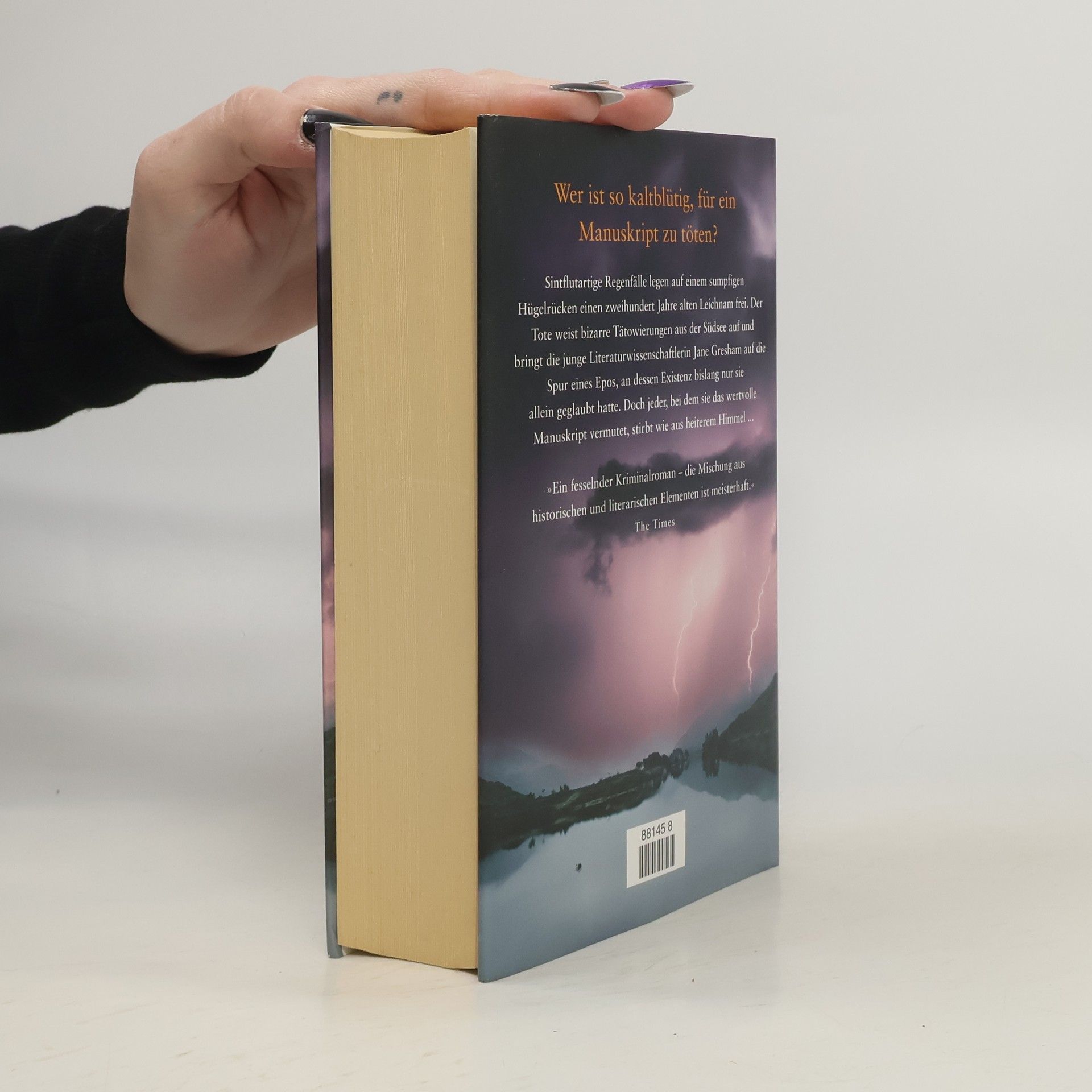 Sintflutartige Regenfälle legen auf einem sumpfigen Hügelrücken einen zweihundert Jahre alten Leichnam frei. Dieser Fund bringt Jane Gresham auf die Spur eines verschollenen Epos, an dessen Existenz bislang nur sie allein geglaubt hatte. Doch jeder, bei dem sie das wertvolle Manuskript vermutet, stirbt … Der geheimnisvolle Leichnam aus dem Moor ist mit bizarren Tätowierungen aus der Südsee bedeckt. Könnte das Fletcher Christian gewesen sein, der legendäre Anführer der Meuterei auf der Bounty? Ist er heimlich zurückgekehrt, und hat er mit seiner abenteuerlichen Geschichte seinem Jugendfreund, dem berühmten Dichter William Wordsworth, den Stoff für ein verschollenes Meisterwerk geliefert? Die junge Literaturwissenschaftlerin Jane Gresham hat es sich in den Kopf gesetzt, der Sache auf den Grund zu gehen. Sie will das Epos finden, von dessen Existenz sie schon lange überzeugt ist. Doch die möglichen Erben des Gedichts sterben, noch bevor sie mit ihnen reden kann – und Jane selbst begibt sich in tödliche Gefahr. Denn dem Manuskript ist noch jemand anders auf der Spur. Er hat den gleichen Plan – und absolut keine Skrupel ...