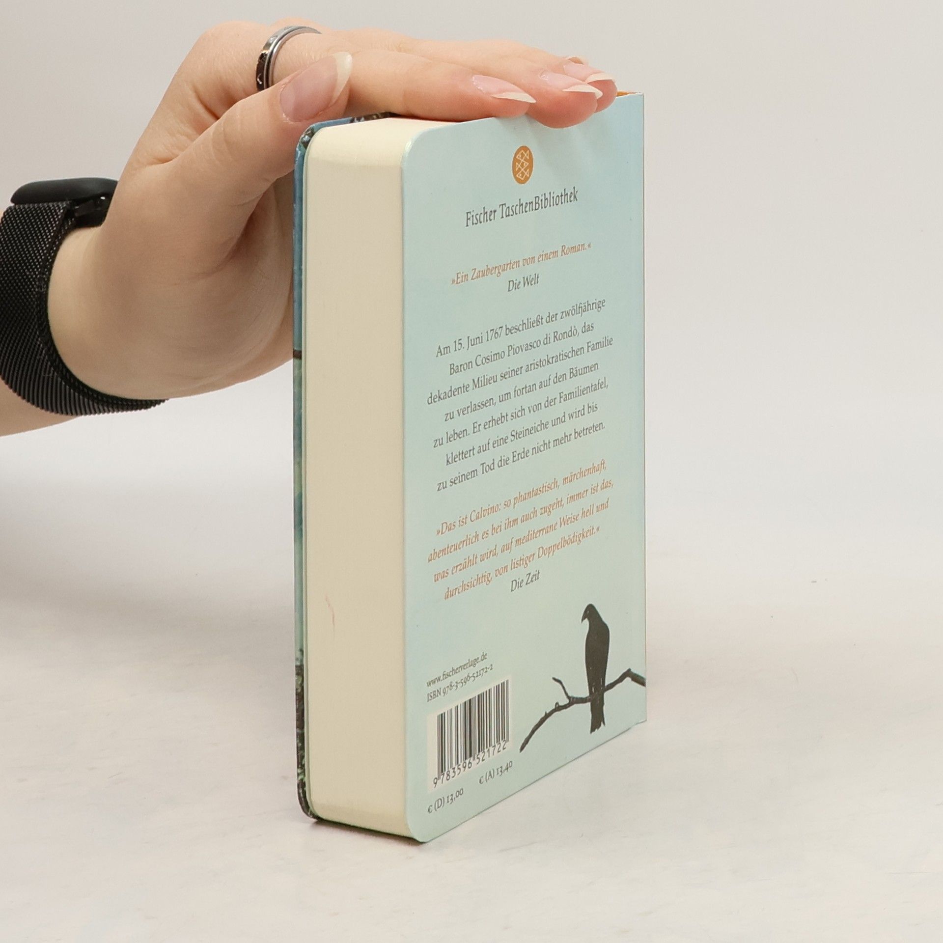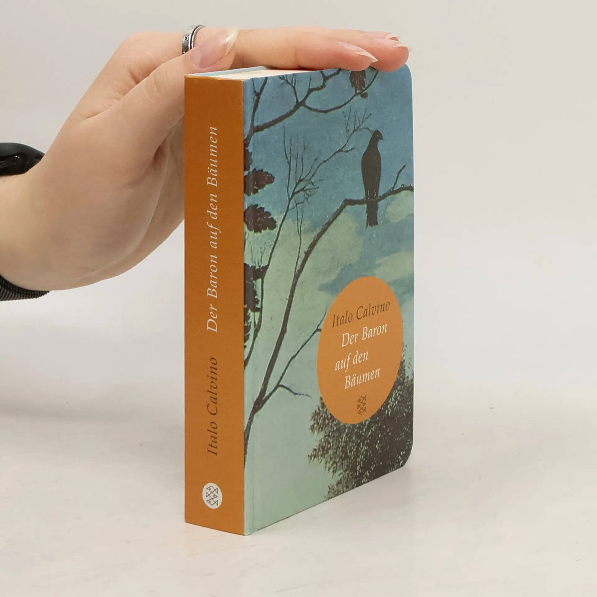 Am 15. Juni 1767 beschließt der zwölfjährige Baron Cosimo Piovasco di Rondò, das dekadente Leben seiner aristokratischen Familie hinter sich zu lassen und fortan auf den Bäumen zu leben. Nach einem misslungenen Mittagessen mit Schneckensuppe klettert er auf eine Steineiche und betritt bis zu seinem Tod die Erde nicht mehr. Diese märchenhafte Erzählung von Italo Calvino, die 1957 entstand, hat auch nach über einem halben Jahrhundert nichts von ihrem magischen Zauber verloren. Cosimo, der rebellische Protagonist, entflieht seiner Familie, die an ihren Privilegien festhält und die Zeichen der Aufklärung ignoriert. Von seiner luftigen Perspektive aus betrachtet er die harten Realitäten der Welt und lässt die Hoffnungen seiner Familie auf eine Rückkehr hinter sich. In einer üppigen Landschaft aus Bäumen und Wäldern bewegt er sich geschwind von Abenteuer zu Abenteuer, während er bis zu seinem 65. Lebensjahr niemals den Boden berührt. Dabei widmet er sich Themen wie Liebe, Philosophie, Politik und Literatur. Mit Witz, Klugheit und Melancholie entfaltet der Roman einen Raum voller Wunder, den nur die Literatur schaffen kann. Mary McCarthy bezeichnet Calvino als einen der letzten großen Zauberer der europäischen Literatur.