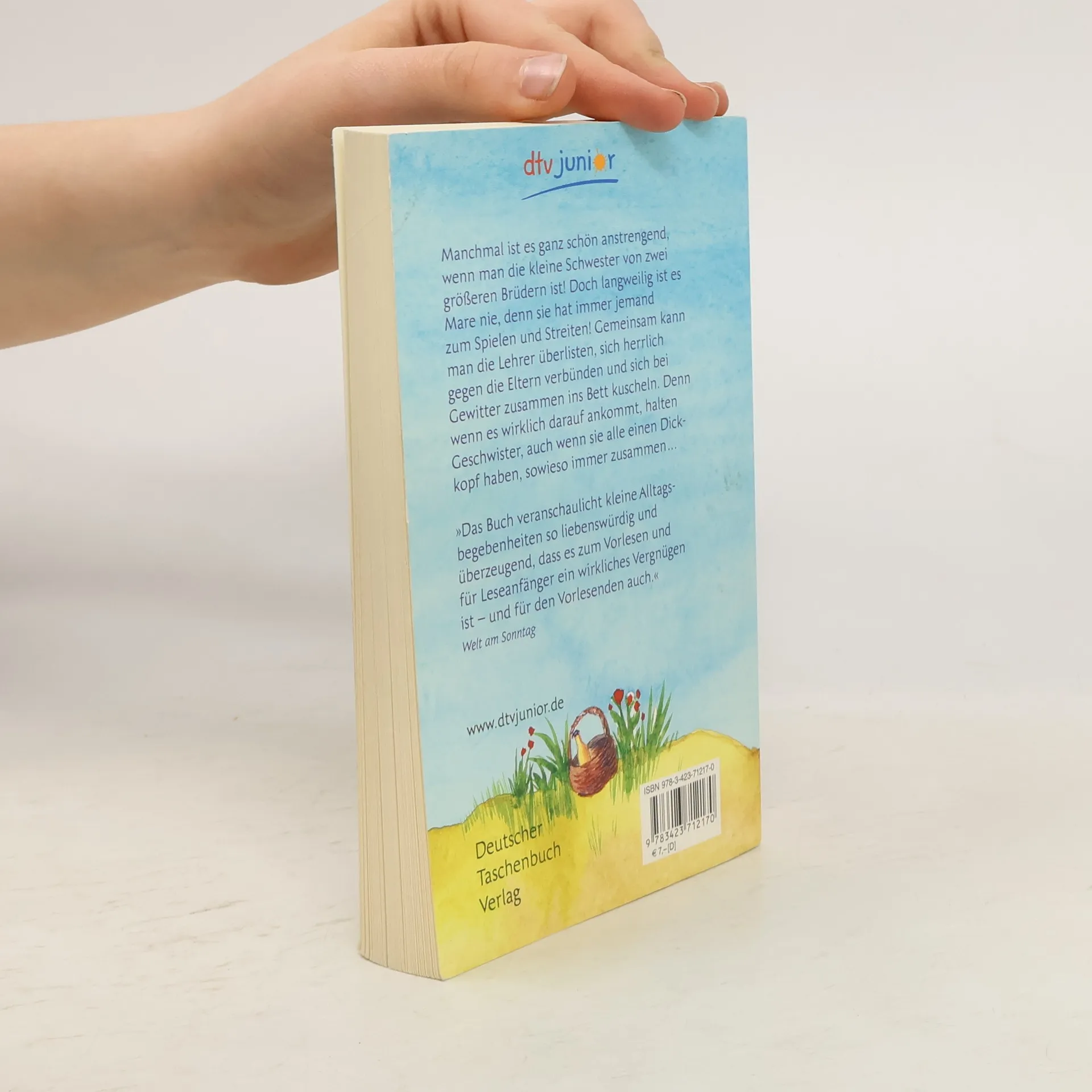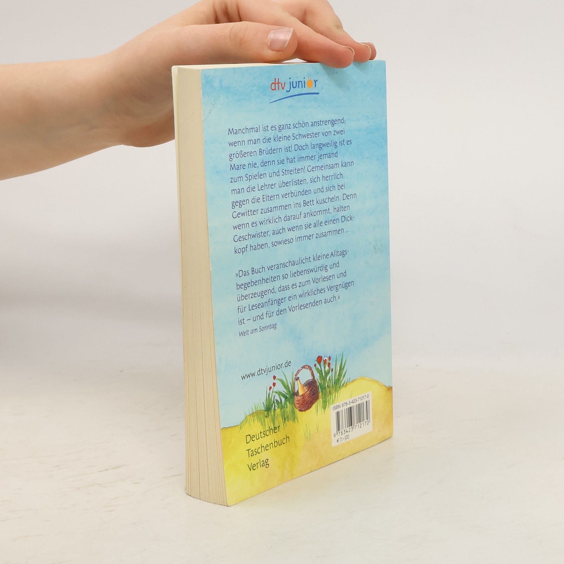 »Ihr lasst meine Murmeln gefälligst in Ruhe!«, schreit Sil. »Und Pfoten weg von meinem Fußball, ja?« Manchmal ist es ganz schön anstrengend, wenn man die kleine Schwester von zwei größeren Brüdern ist! Mare ist fünf und ihr ältester Bruder Sil, zehn Jahre alt, redet gerne wie Papa und versucht sie ständig herumzukommandieren. Gut, dass ihr dann der 9-jährige Gert zur Seite springt. Wenn Sil seine kleine Schwester ärgert, zwinkert ihr Gert zu, damit sie sich nicht einschüchtern lässt. Sil kann aber auch sehr lieb sein. Einmal, als Mare im Kindergarten spucken musste, hat er sie huckepack nach Hause getragen, ihr Tee gekocht, Zwiebeln für Mares verstopfte Nase geschnitten und alle verfügbaren Bettdecken auf sie gelegt. Da hat Mare ihm alle Gemeinheiten vom Vortag verziehen. Langweilig ist es mit Geschwistern jedenfalls nie, man hat immer jemanden zum Spielen und Streiten, kann gemeinsam die Lehrer überlisten, sich herrlich gegen die Eltern verbünden und sich bei Gewitter zusammen ins Bett kuscheln. Denn wenn es wirklich darauf ankommt, halten Geschwister, auch wenn sie alle einen Dickkopf haben, sowieso immer zusammen ...