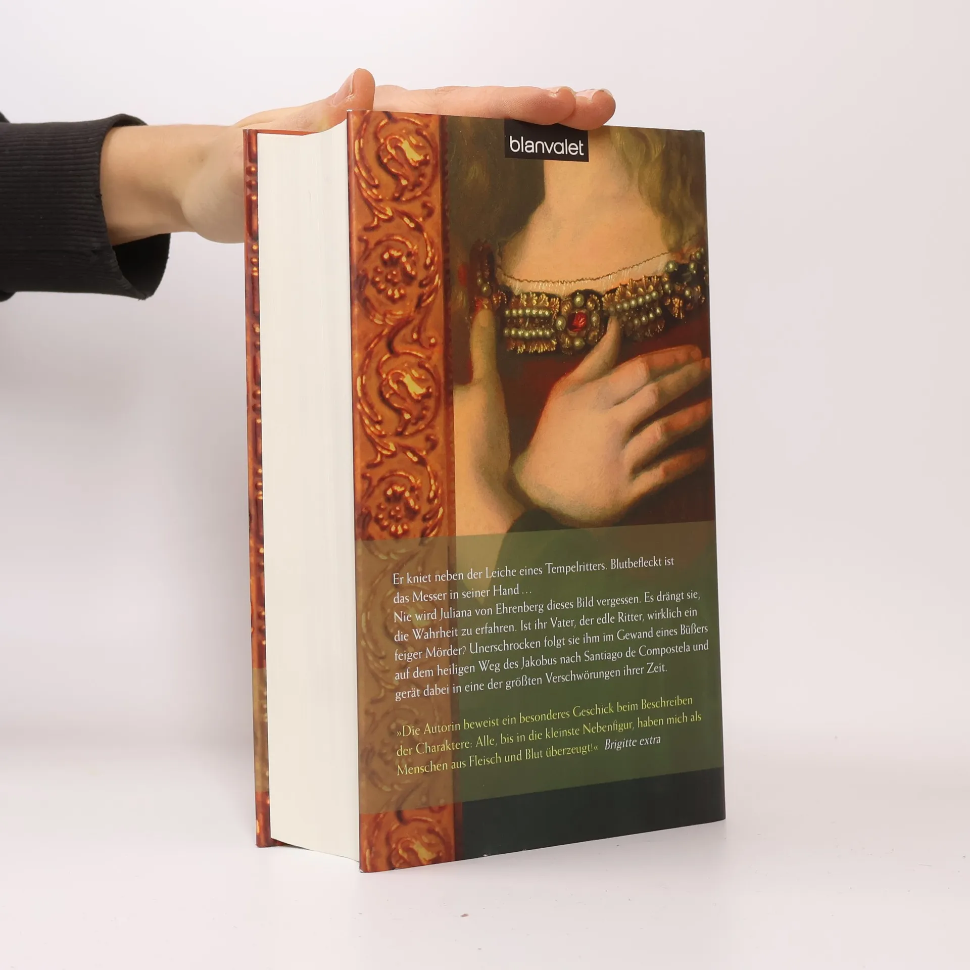 Eine starke Frau, ein mächtiger Orden, ein gefährlicher Weg. Juliana von Ehrenberg kniet neben der Leiche eines Tempelritters, das Blut befleckt ihr Messer. Dieses Bild wird sie nie vergessen und treibt sie zur Wahrheit: War ihr Vater, der edle Ritter, ein feiger Mörder? Auf dem heiligen Jakobsweg nach Santiago de Compostela begibt sie sich auf die Suche nach ihm und der Wahrheit. Der staubige Pilgerweg erstreckt sich über mehr als 800 Kilometer. Wird sie ihren Vater und die Antworten finden? Zunächst verschwindet Wolf von Neipperg, ihr Freund und heimlicher Favorit. Kurz darauf verlässt ihr Vater, Kraft von Ehrenberg, heimlich die Burg. Entschlossen folgt Juliana ihm, während sie sich weigert, einen benachbarten Ritter zu heiraten und die mysteriösen Ereignisse auf der Burg sowie den Mord an dem Tempelritter Swicker aufzuklären. Verkleidet als Knappe, wandert sie mit vier Männern durch Navarra und Kastilien. Doch sind ihre Begleiter wirklich Pilger? Juliana beginnt zu erkennen, dass niemand das ist, was er vorgibt. Zudem ist sie nicht die Einzige, die ihren Vater einholen will. Unwissend über die geheimen Machenschaften innerhalb der Templer und die Mission ihres Vaters, eilt Juliana voran. Doch trotz ihrer Bemühungen kann sie das Rad der Geschichte nicht aufhalten …