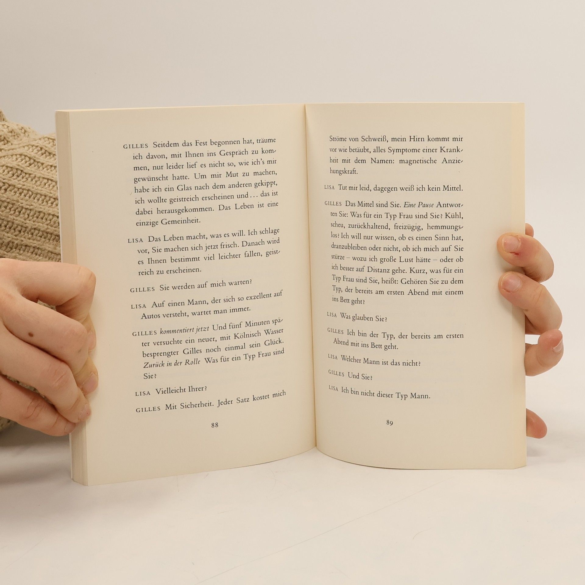 Was, wenn ein Mann durch Gedächtnisverlust seine Frau nicht wiedererkennt? Was, wenn sie etwas weiß, was er nicht wissen darf? Und was, wenn er weiß, daß sie weiß, was er nicht wissen darf? Ein Mann, eine Frau. Fünfzehn Jahre Ehe. Ein Spiel mit Masken und ein Spiel mit der Wahrheit. Schmitt konstruiert die Kleinen Eheverbrechen als intelligent kalkulierten Taumel, stets haarscharf an säuberlich gelegten Fallstricken vorbei. Und doch, so böse das neue und alte Spiel scheinen mag, auch die Liebe hat sich daraus noch nicht verabschiedet. Die Frage ist nur, wer am Schluß gewinnt. Auch als Dramatiker bleibt Schmitt sich selbst treu: der Autor, der süchtig macht!
