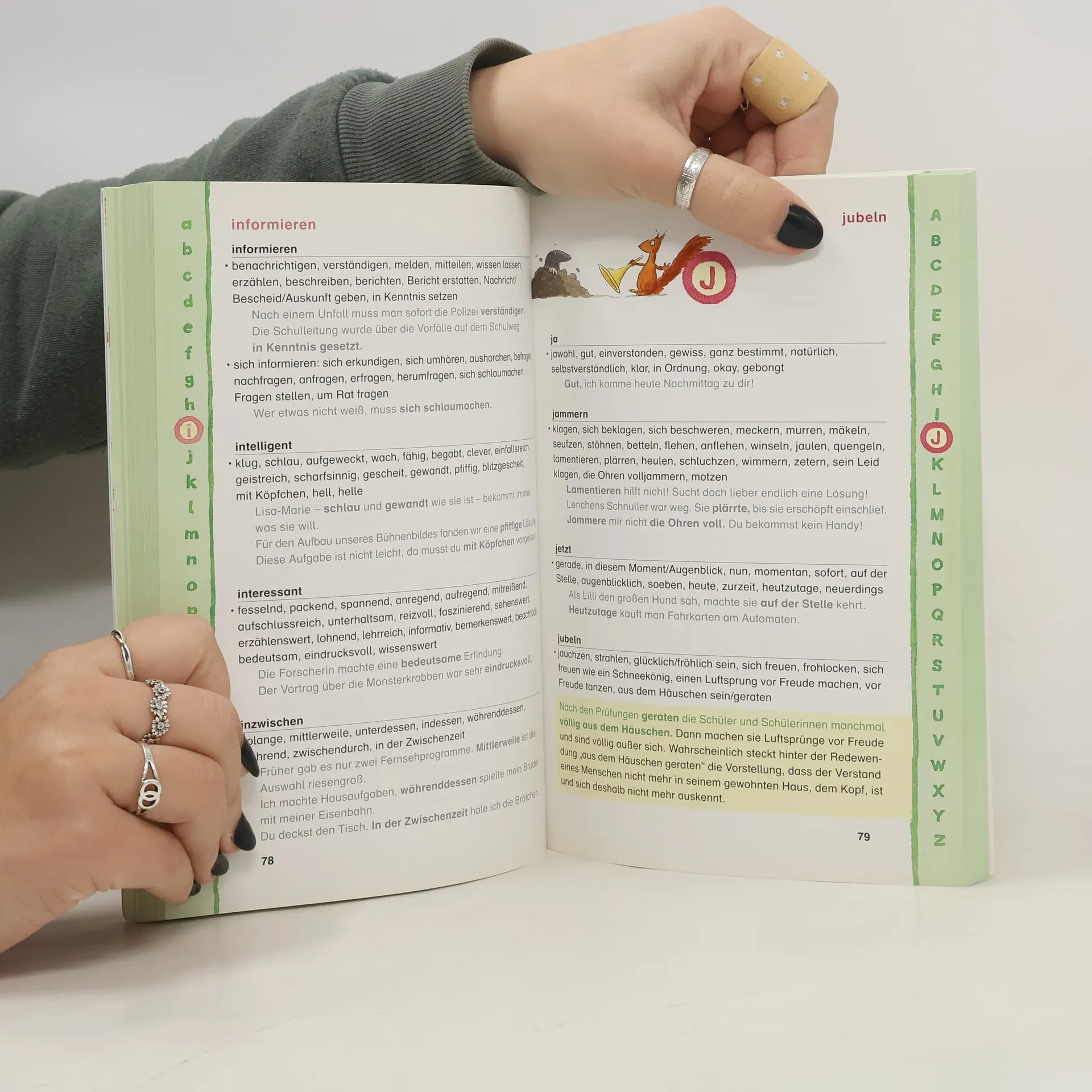Dieses Synonymwörterbuch für die Grundschule unterstützt Kinder dabei, treffende Wörter zu finden und Texte besser zu formulieren. Es enthält über 500 Begriffe aus dem schulischen Grundwortschatz mit den wichtigsten sinnverwandten Wörtern. Zahlreiche Beispiele helfen, die verschiedenen Wortbedeutungen zu verstehen. Geläufige Redewendungen der deutschen Sprache werden leicht verständlich erklärt. So gelingt jeder Aufsatz! Witzig und liebevoll illustriert lädt dieses Wörterbuch zum Schmökern und Stöbern ein. Die alphabetische Griffleiste hilft bei der Benutzung. Hier findet jedes Kind das passende Wort!