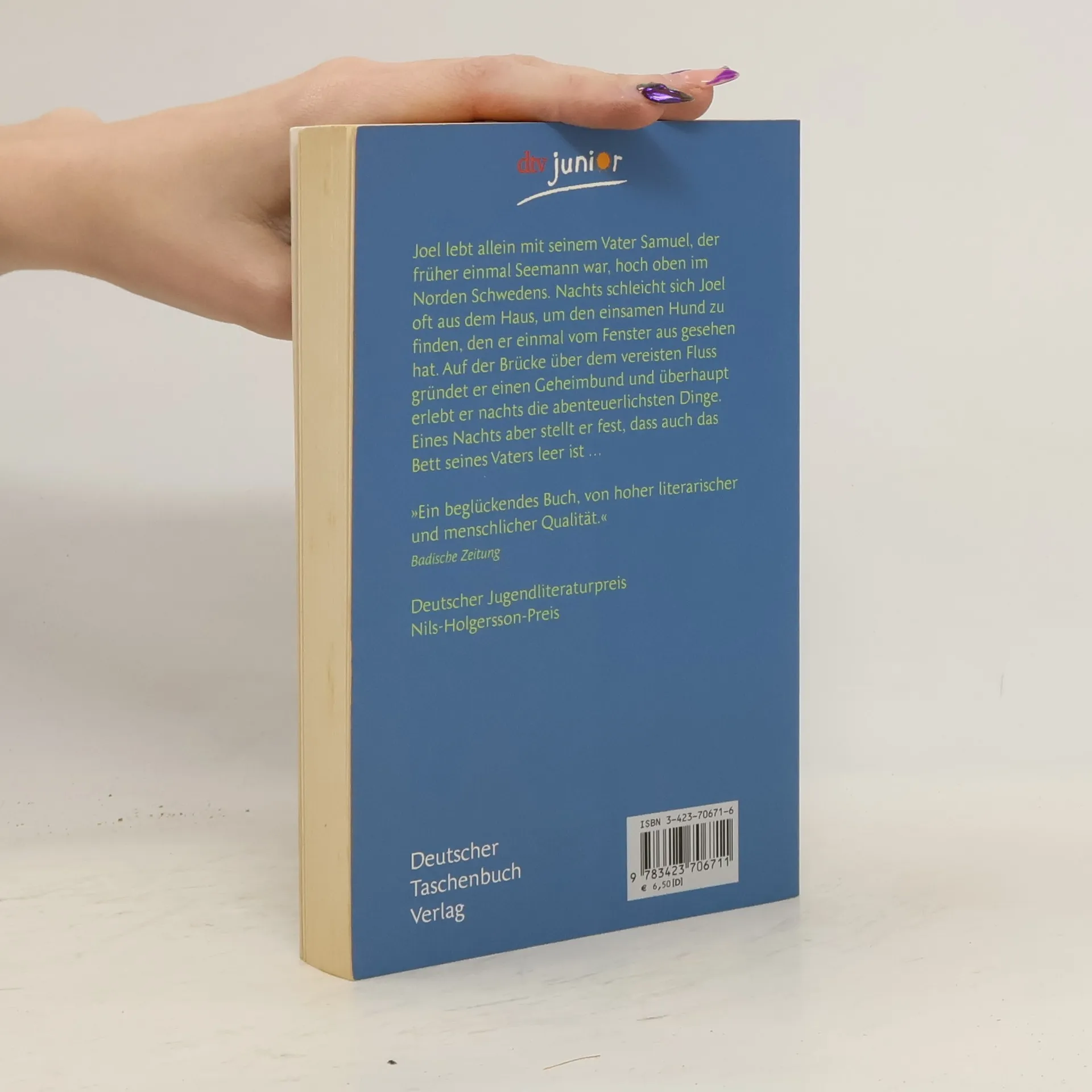 Joel lebt allein mit seinem Vater Samuel, der früher einmal Seemann war, hoch oben im Norden Schwedens. Nachts schleicht sich Joel oft aus dem Haus, um den einsamen Hund zu finden, den er einmal vom Fenster aus gesehen hat. Auf der Brücke über dem vereisten Fluss gründet er einen Geheimbund und überhaupt erlebt er nachts die abenteuerlichsten Dinge. Eines Nachts aber stellt er fest, dass auch das Bett seines Vaters leer ist. Samuel hat sich nämlich in die Kellnerin Sara verliebt. Wird auch er Joel verlassen, genau wie es vor vielen Jahren die Mutter getan hat? Der erste Band der Joel-Reihe von Henning Mankell. Mit dem Deutschen Jugendliteraturpreis ausgezeichnet.