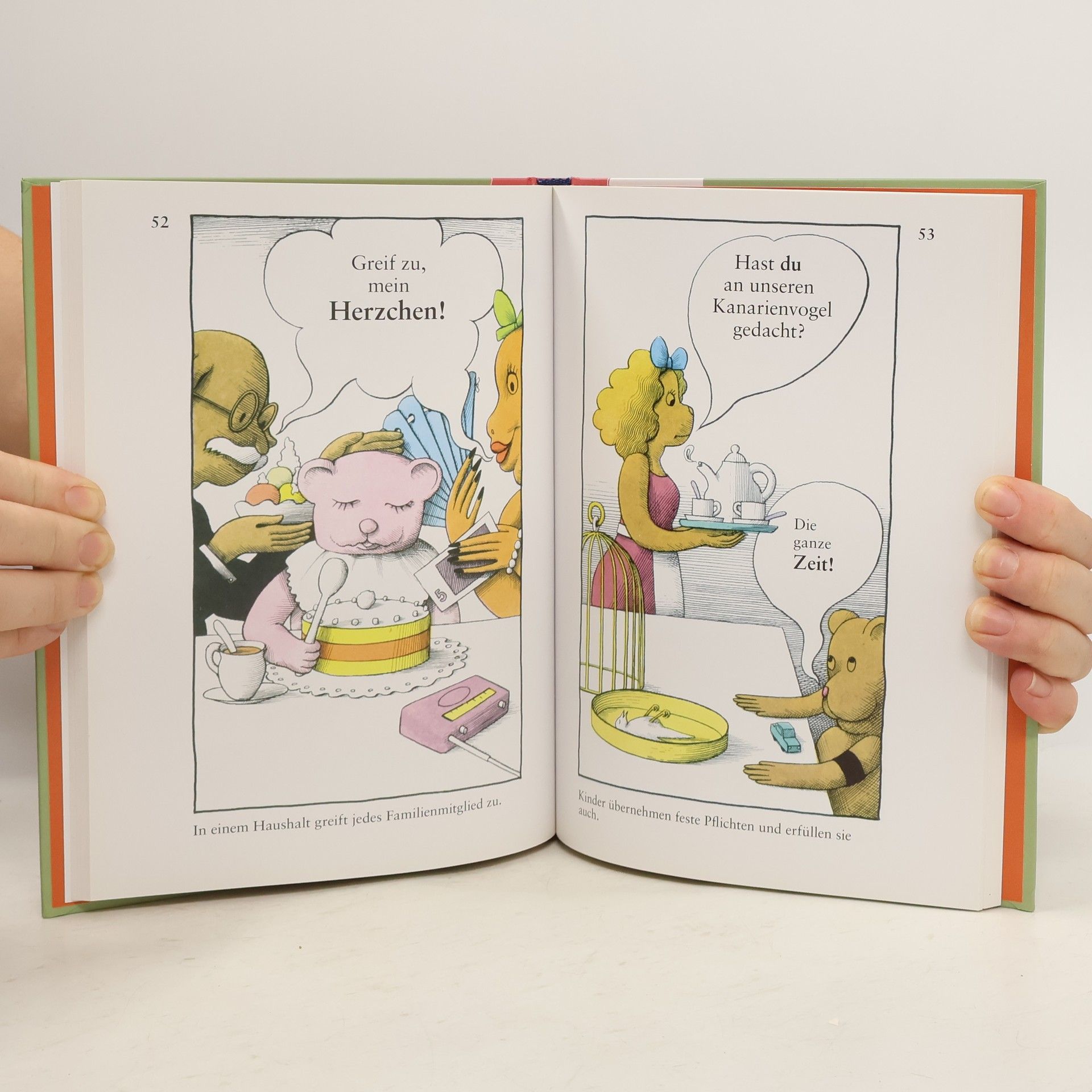 Ein farbiges Bilderbuch für kleine und große Kinder mit lustigen Ratschlägen für jede Lebensart. Für Essen und Trinken, für Reisen in Bus und Bahn, für den Haushalt und die Ferien, für den Umgang mit Tier und Mensch, vor allem mit Geschwistern. Auch für den Umgang mit Zeit und Geld. Und wie spricht man eigentlich miteinander? Ein heiterer Ratgeber, der einem ständig zum Lachen bringt. Egbert Herfurths Illustrationen begleiten liebevoll und zweifelnd die kindlichen Welterfahrungen. Ein bißchen Hochstapelei ist immer dabei.