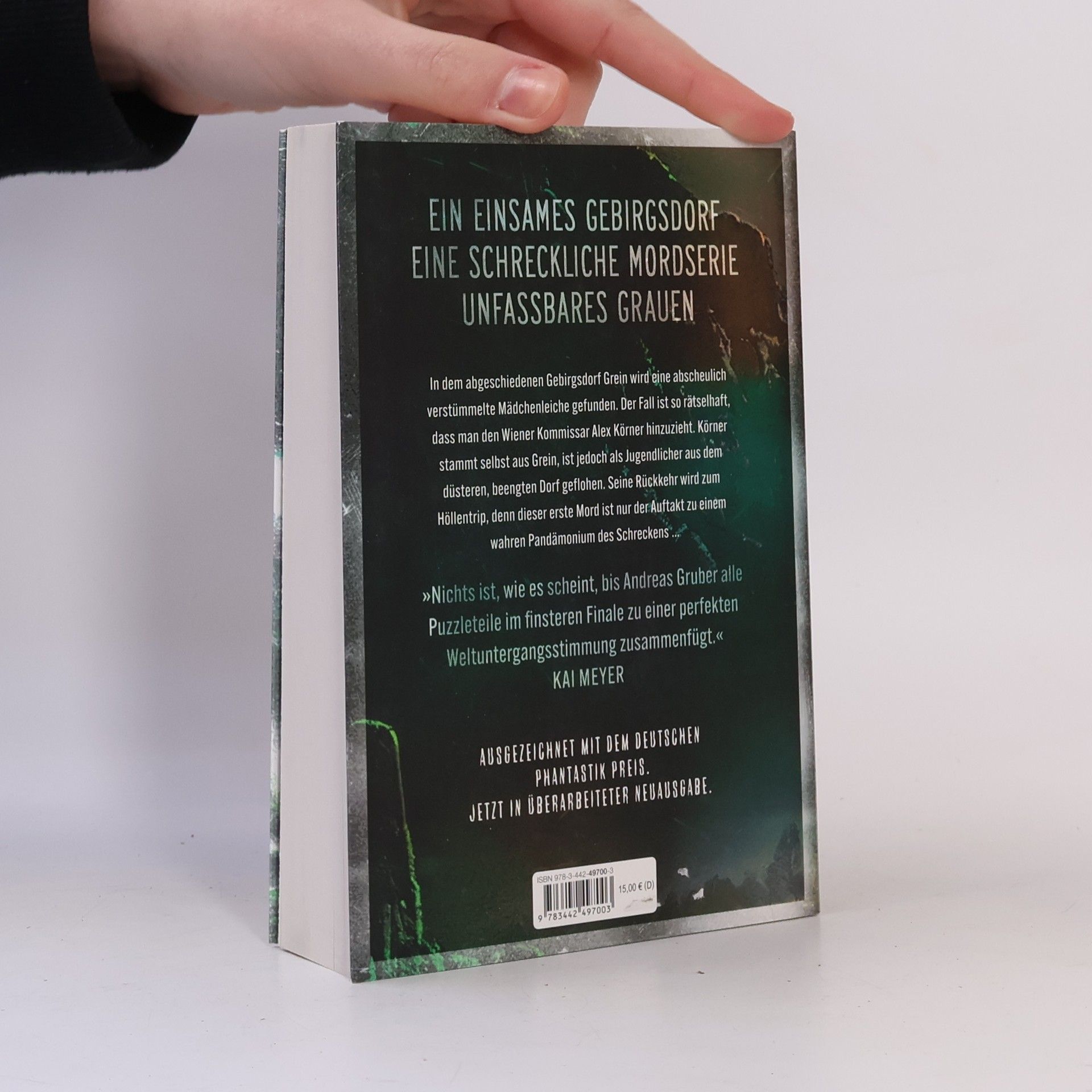 Ein einsames Gebirgsdorf. Eine schreckliche Mordserie. Unfassbares Grauen In dem abgeschiedenen Gebirgsdorf Grein, eingeschlossen zwischen den Bergen und einem reißenden Fluss, wird eine grausam verstümmelte Mädchenleiche gefunden, der fast alle Rückenwirbel fehlen. Der Fall ist so rätselhaft, dass man Kommissar Alex Körner aus Wien hinzuzieht. Körner ist in Grein aufgewachsen, aber als Jugendlicher aus dem düsteren, beengten Dorf geflohen. Seine Rückkehr wird zum Höllentrip, denn das tote Mädchen ist nur Teil einer schrecklichen Mordserie. Und während der vom Dauerregen stark angeschwollene Fluss über die Ufer tritt und Grein von der Außenwelt abgeschnitten wird, kommt eine grauenvolle Wahrheit ans Licht …