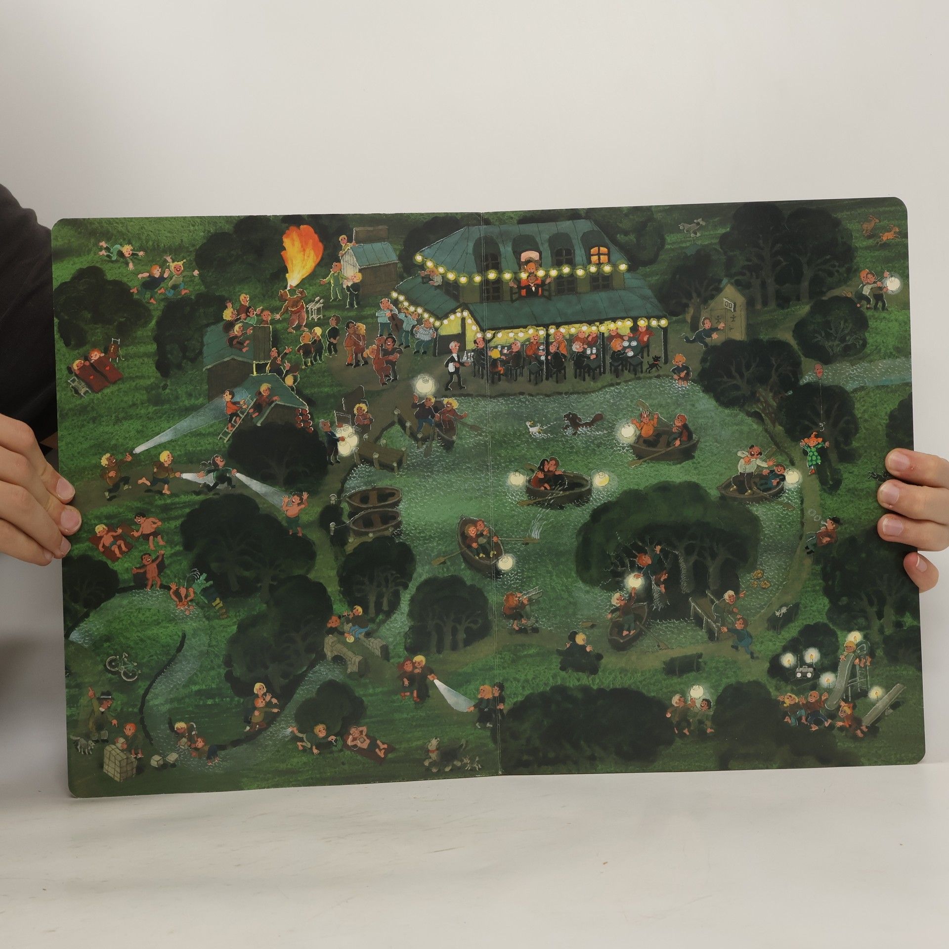 In dem äJahreszeiten-Wimmelbuchä gibt es viel zu entdecken, z.B. das Mädchen mit dem rosa Luftballon und dem kleinen schwarzen Hund, die auf jeder Doppelseite versteckt sind.